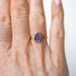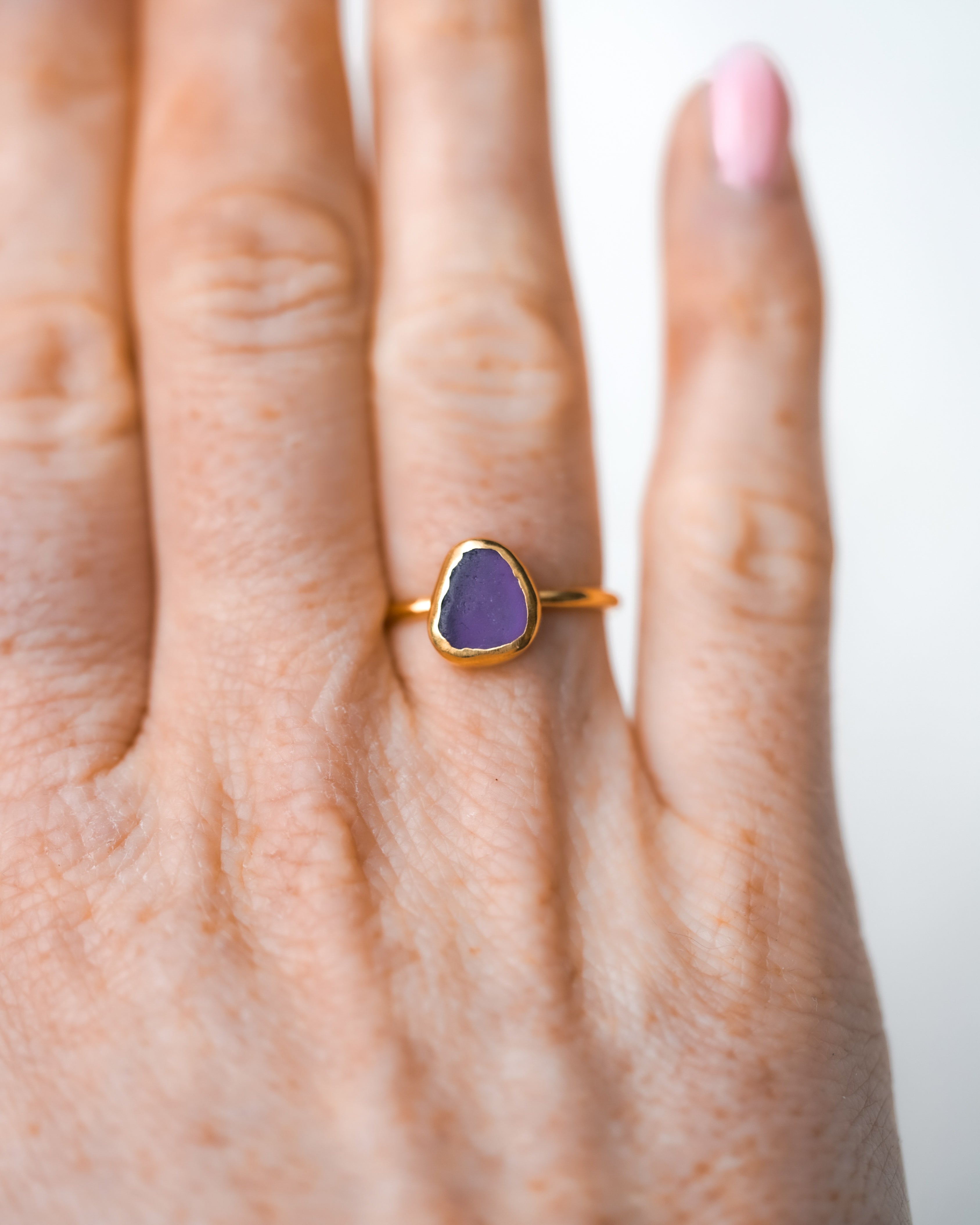 Purple Sea Glass Ring - Handmade from 925 Sterling Silver plated with a 10 micron thick and hard layer of 24K (Gold Vermeil)