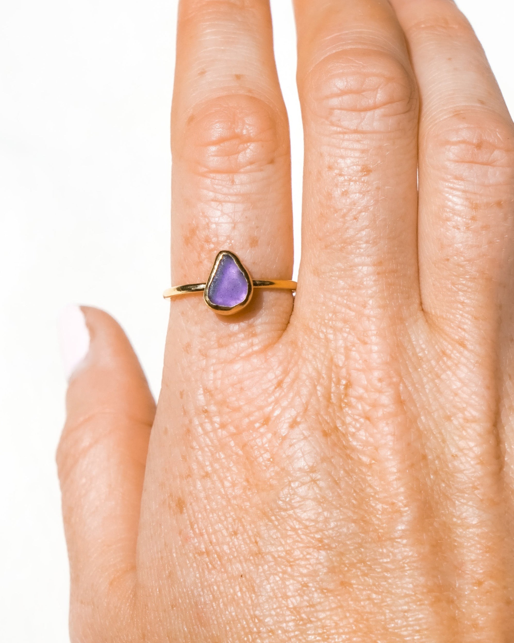 Purple Sea Glass, Gold Vermeil - Size T