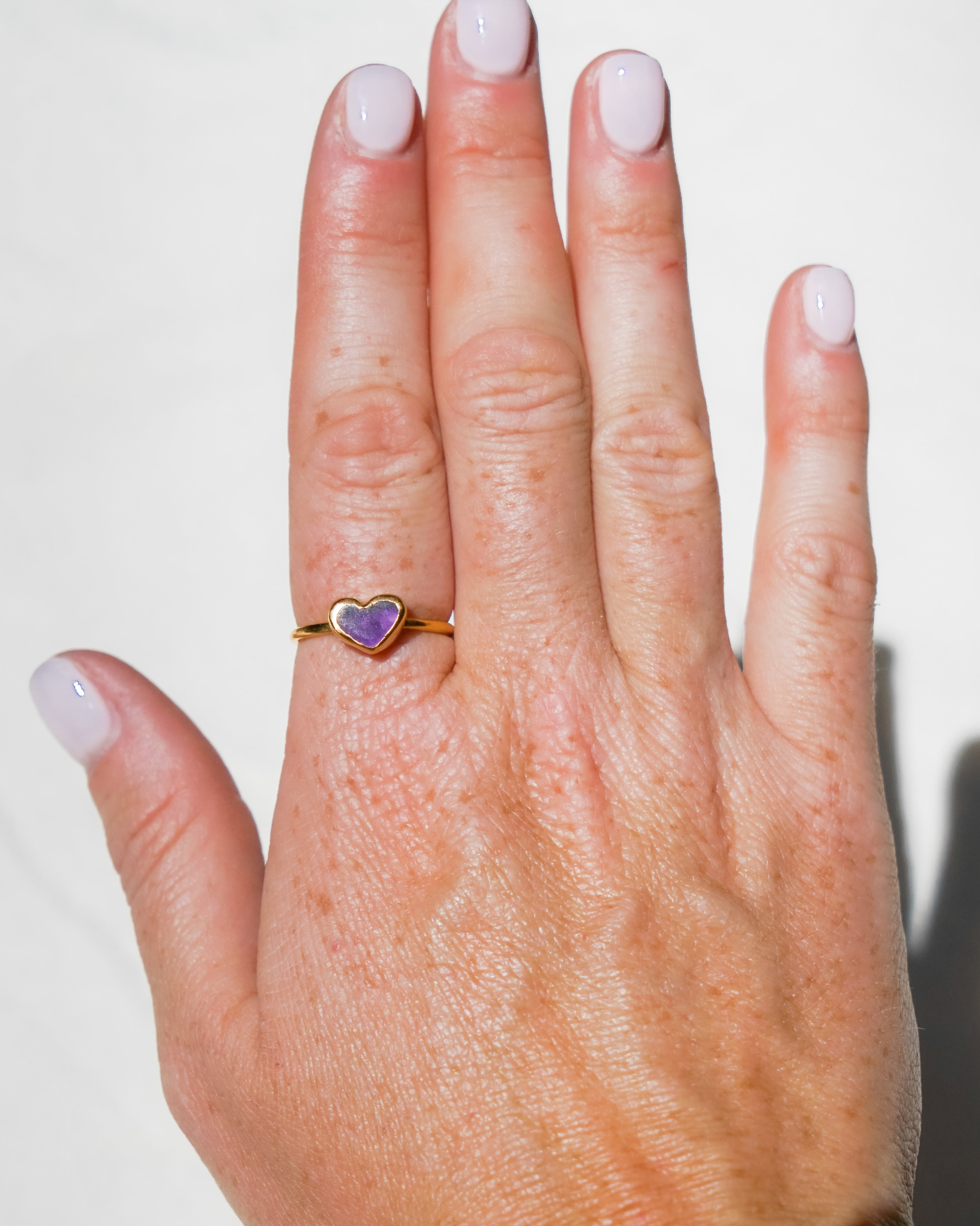 Purple Sea Glass Heart, Gold Vermeil - Size P