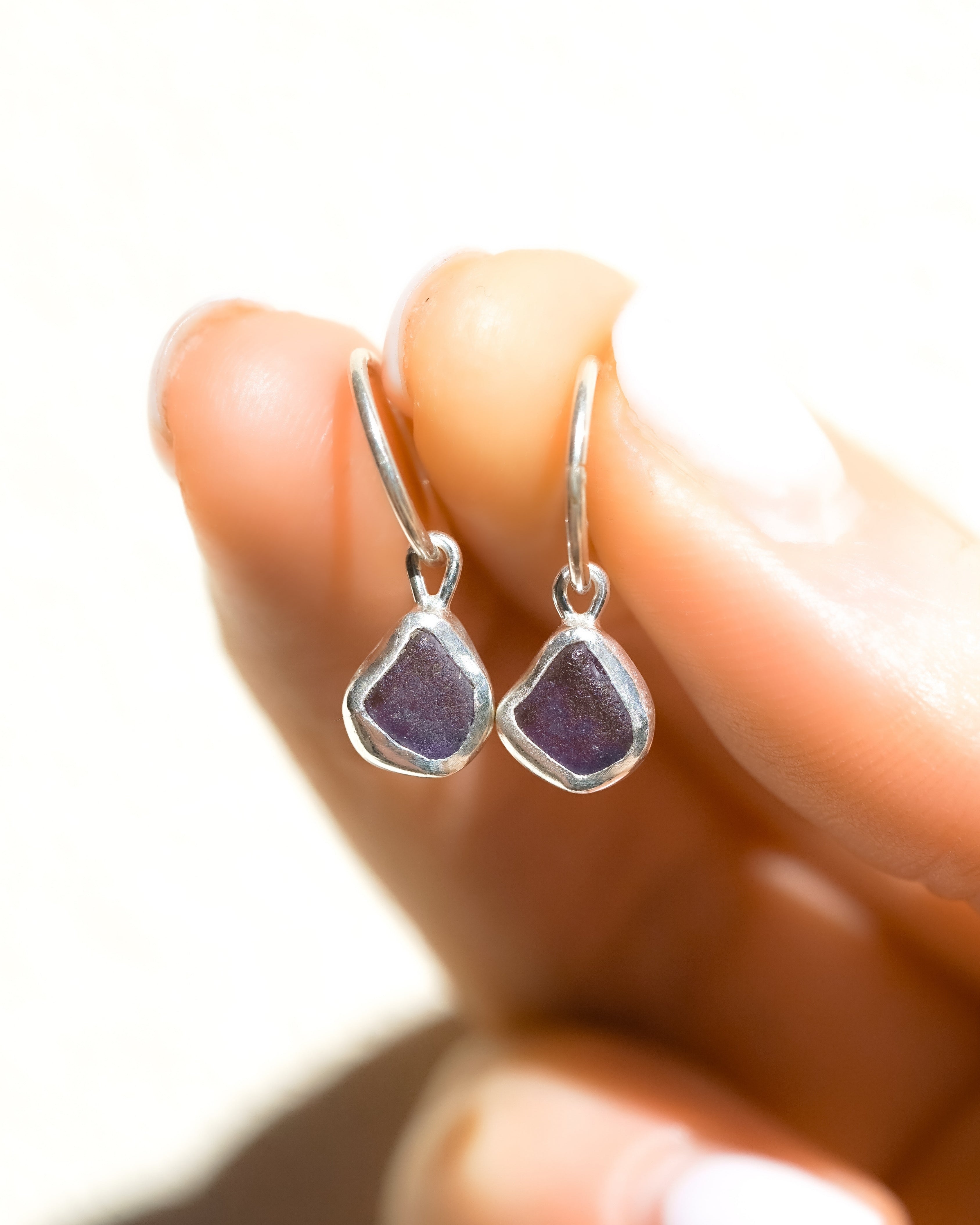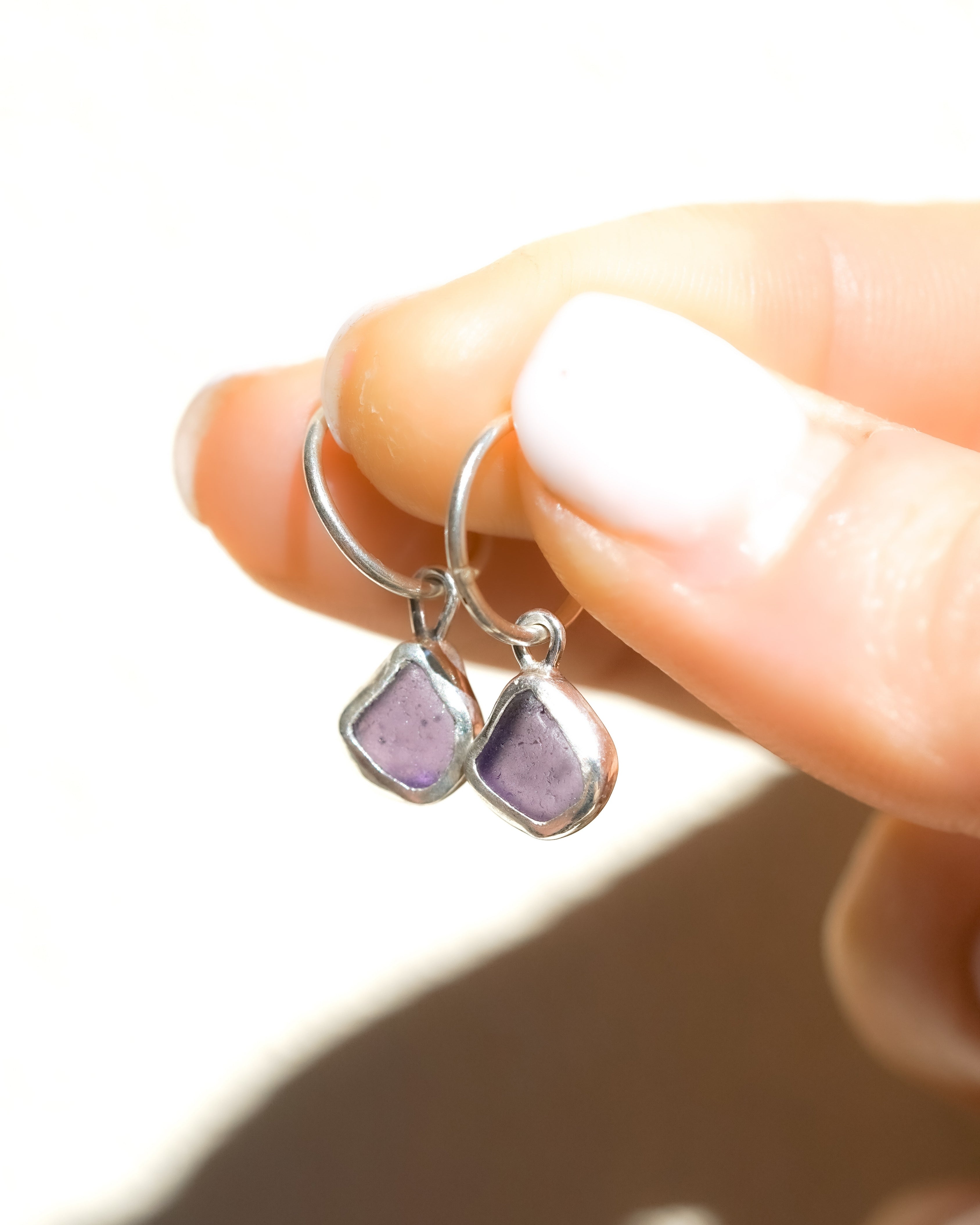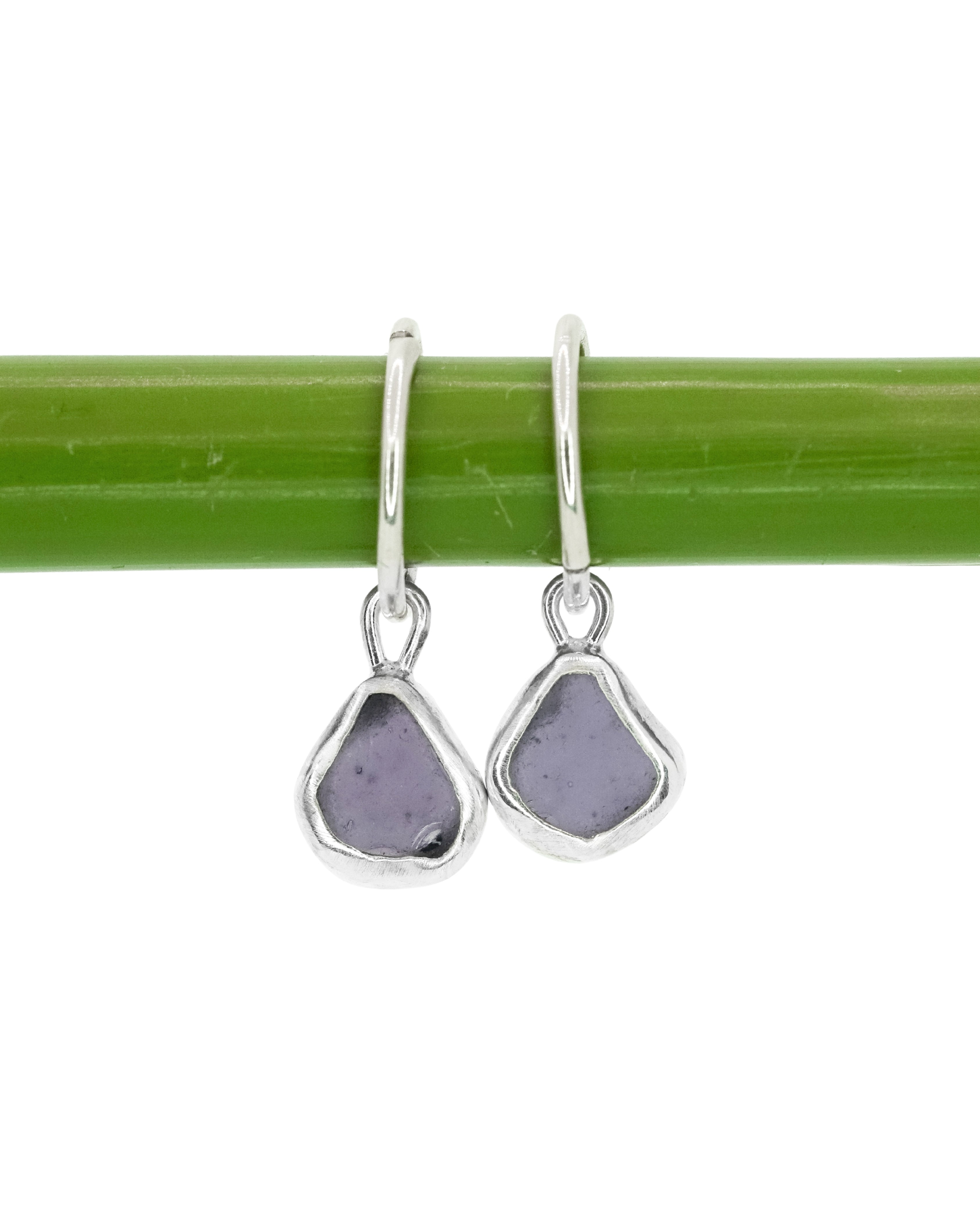 Purple Sea Glass Hoops - Handmade from 925 sterling silverĀ