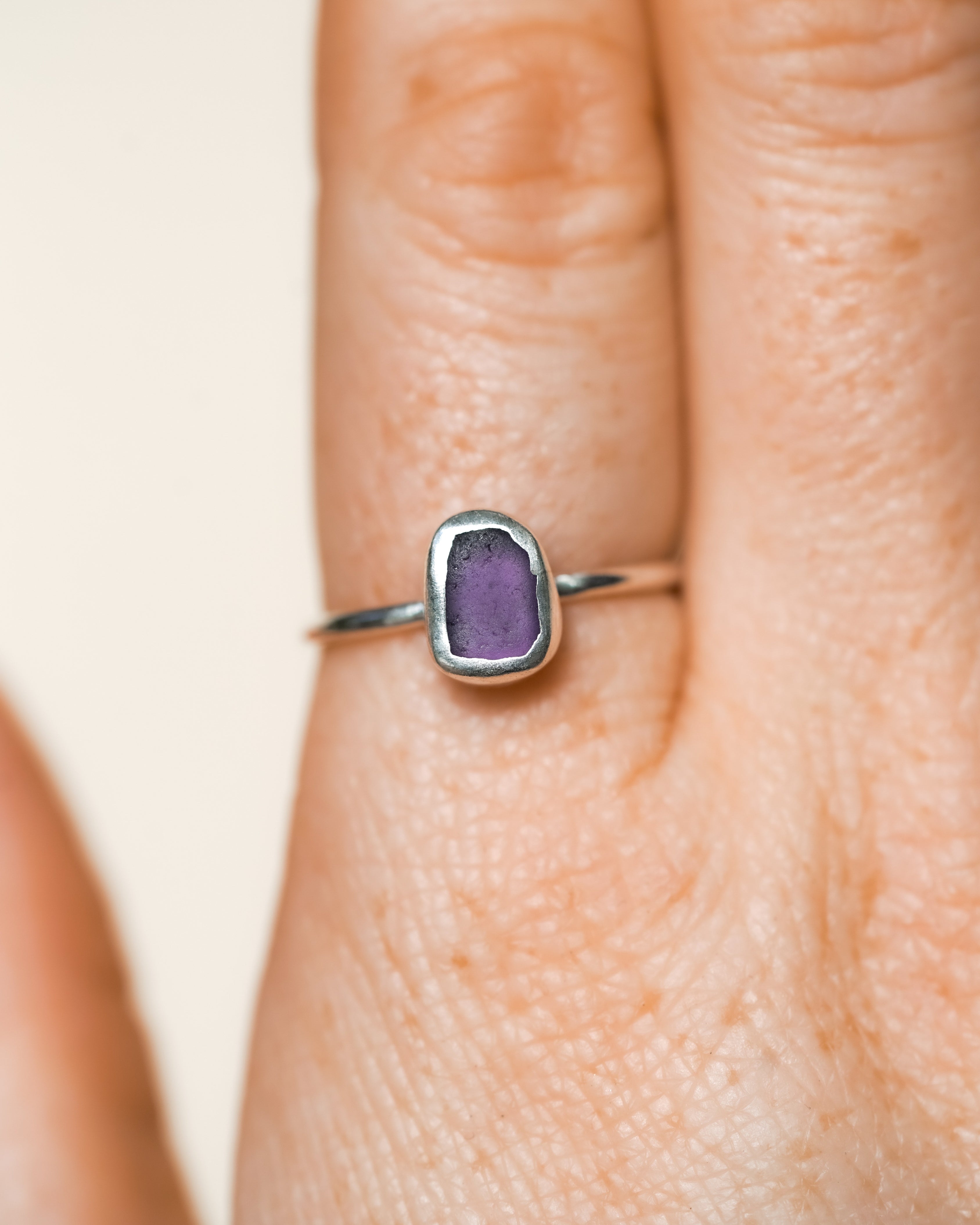 Purple Sea Glass Ring - Handmade from 925 Sterling Silver
