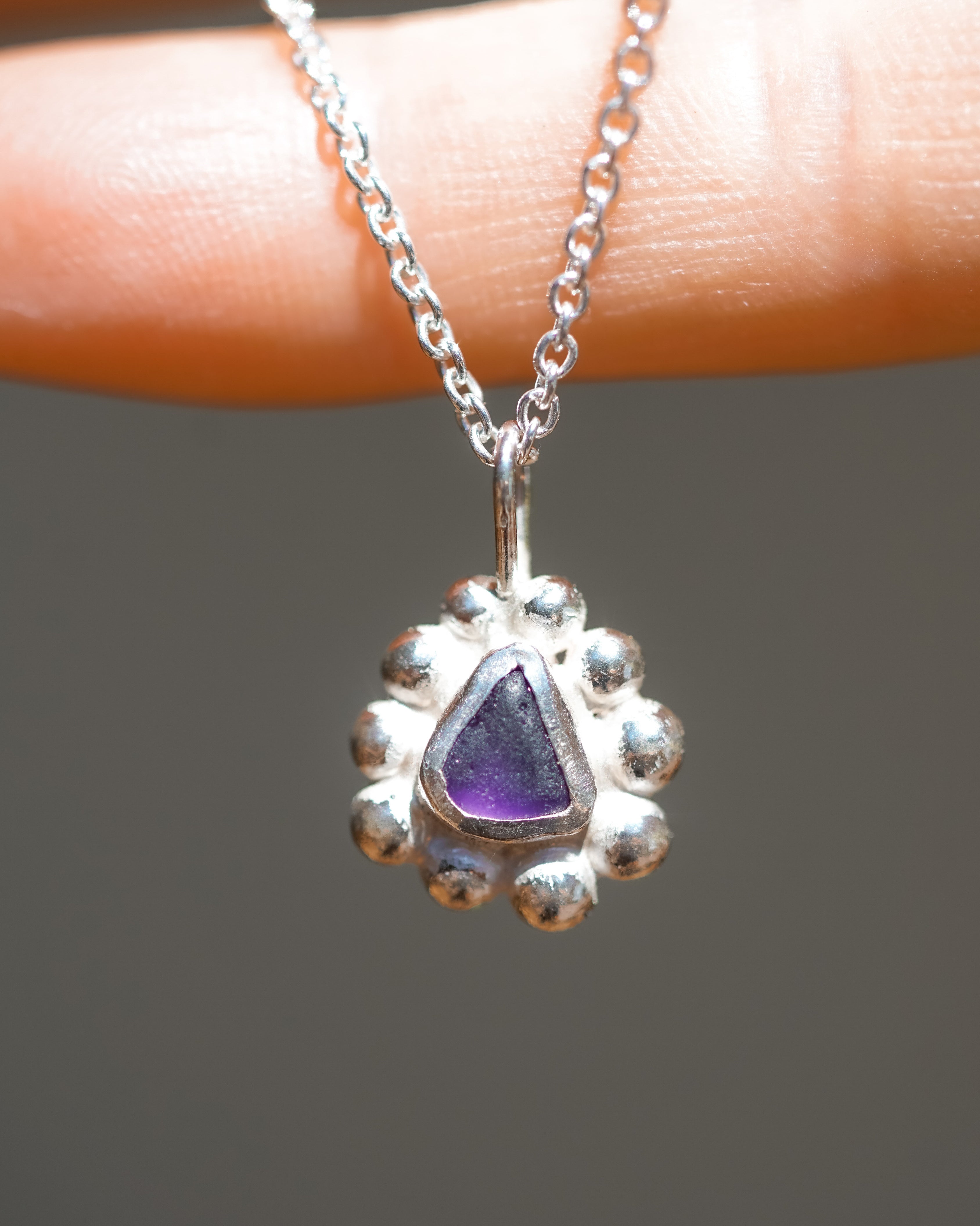 Purple Sea Glass Sun - Handmade from 925 sterling silver