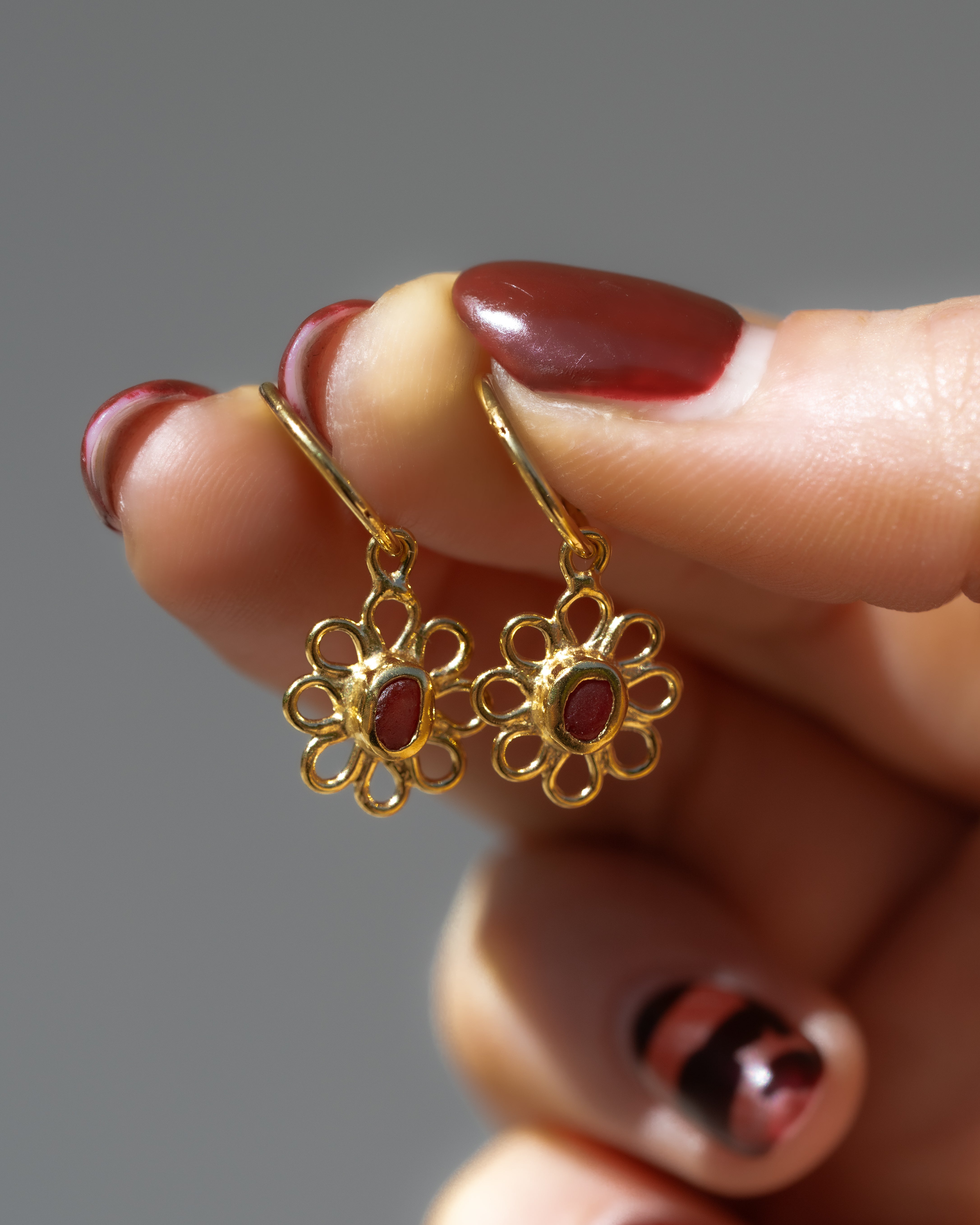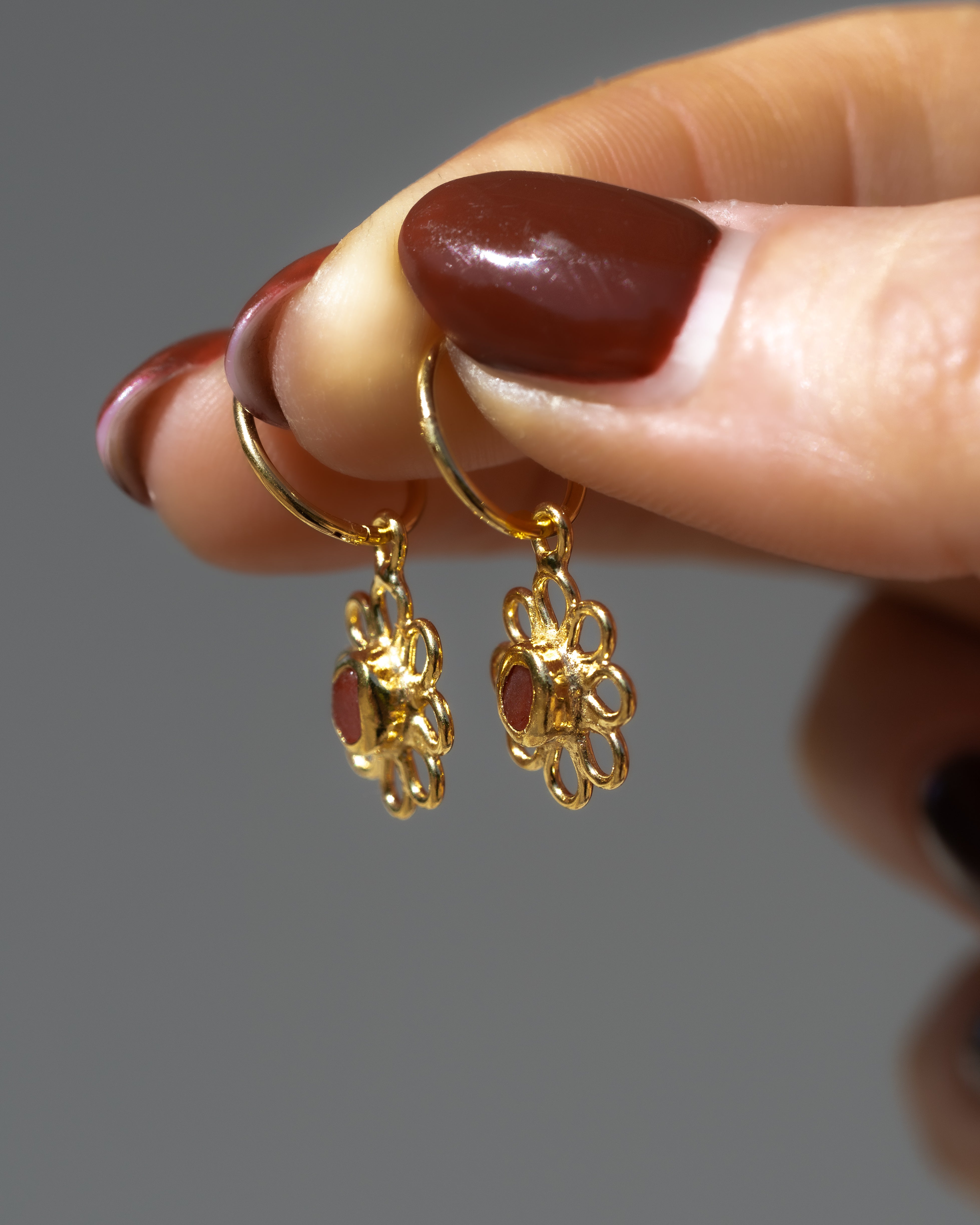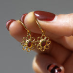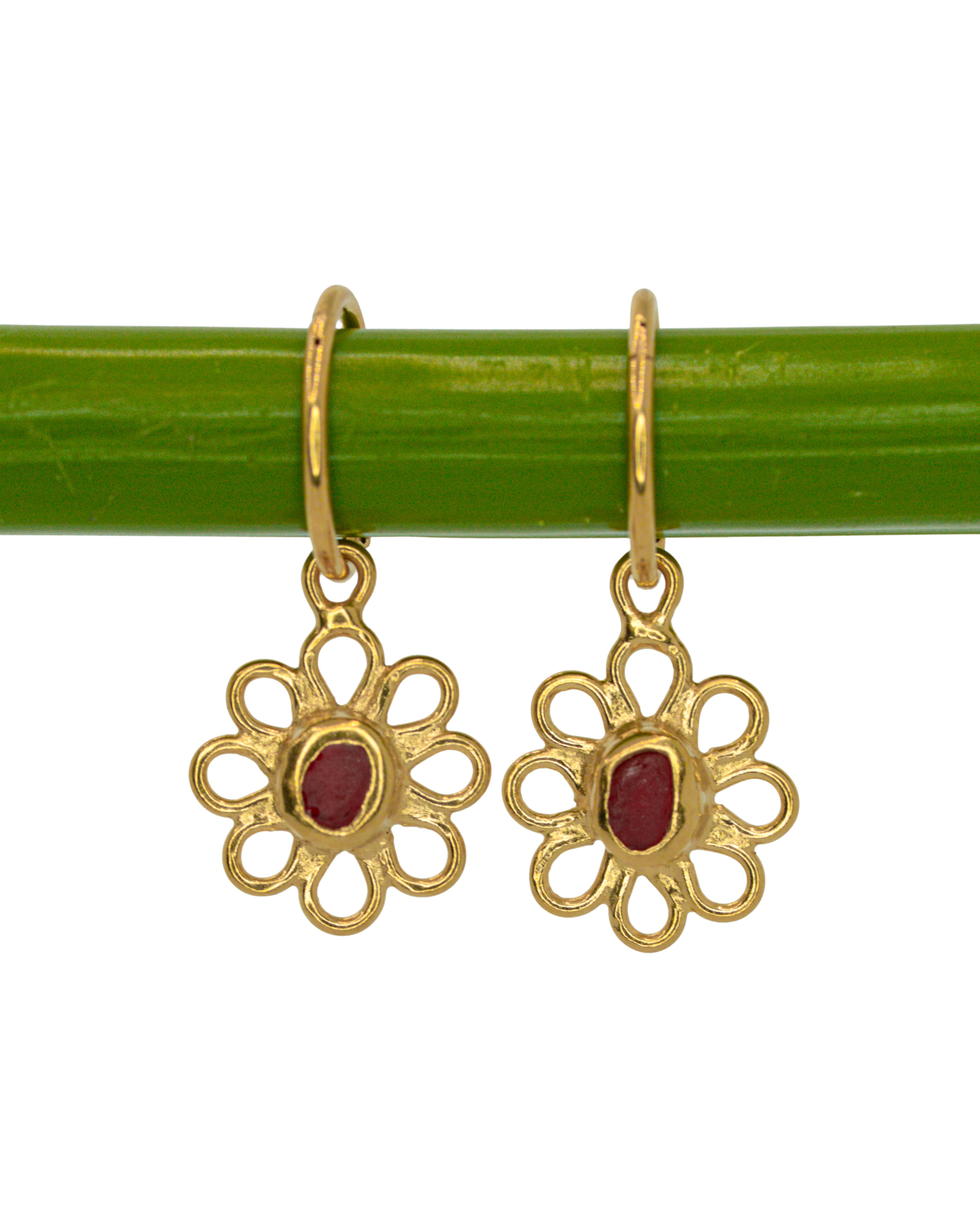 Red Sea Glass Flower Hoops - Gold Vermeil