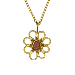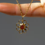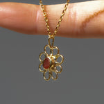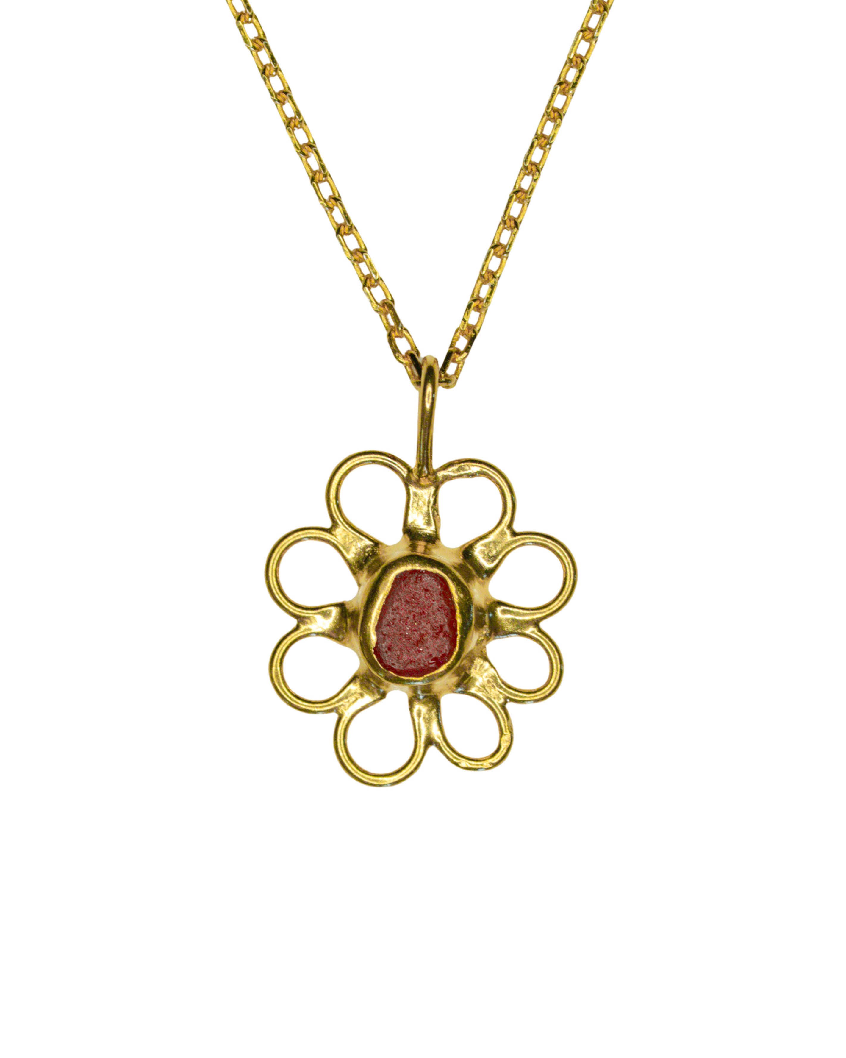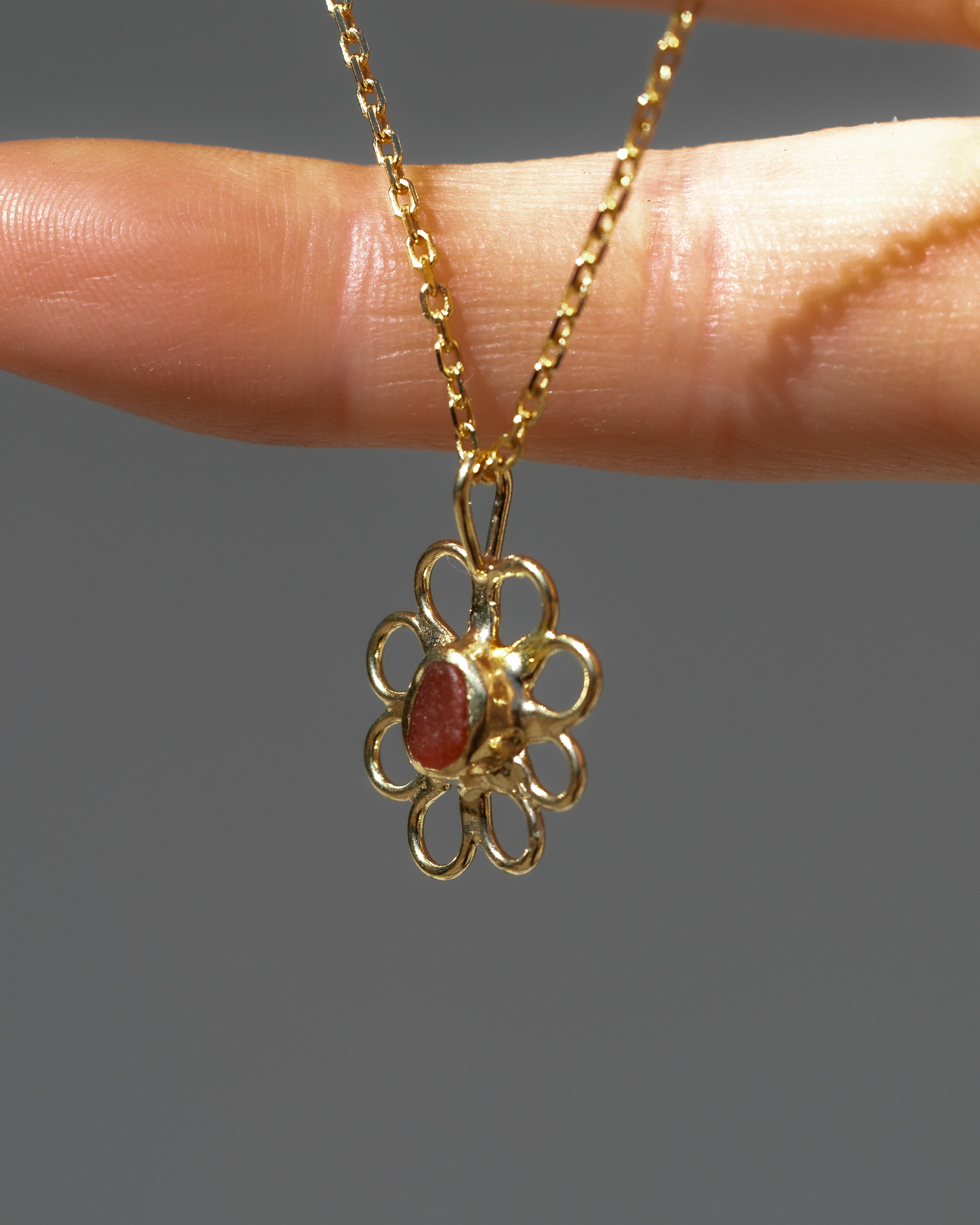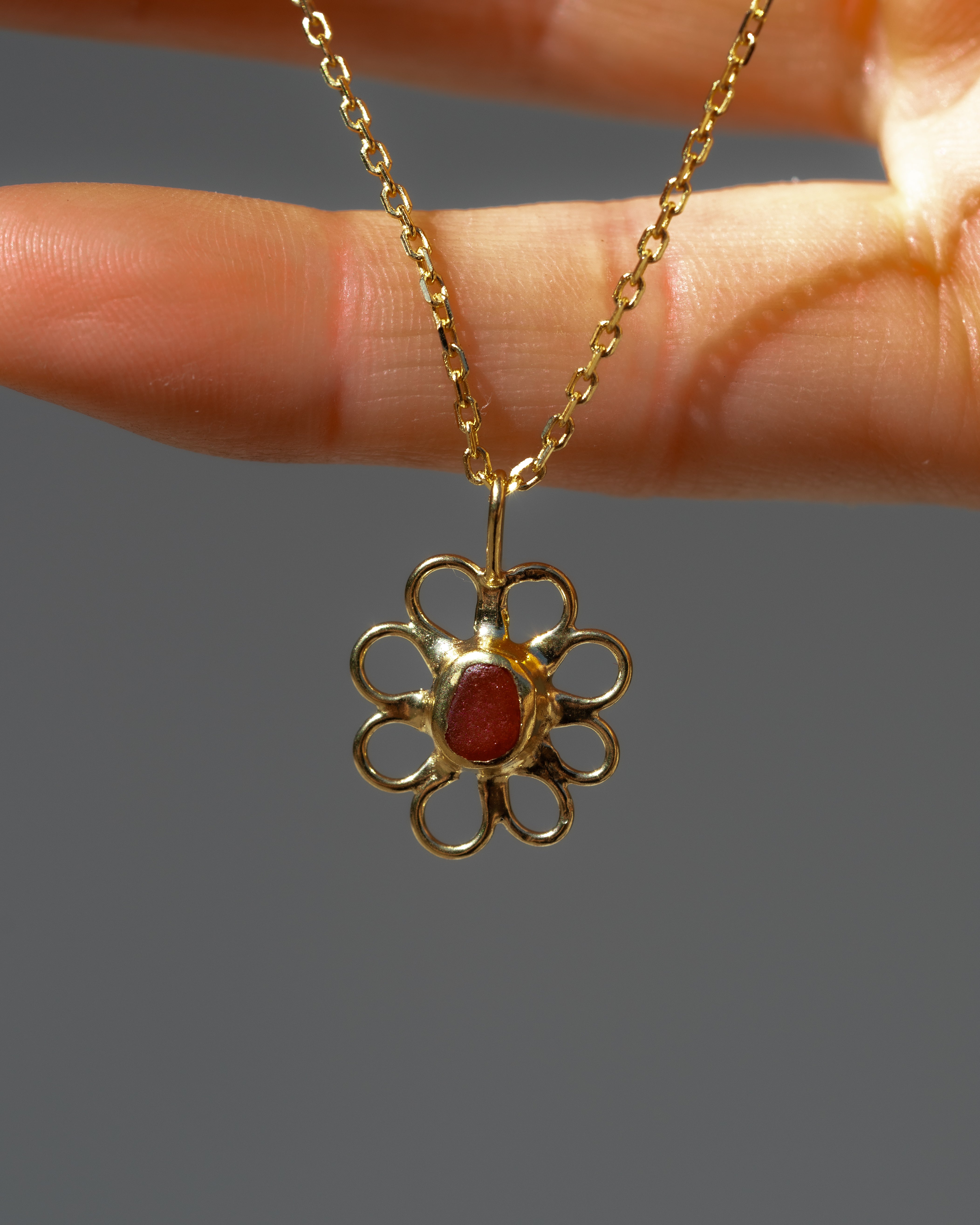 Red Sea Glass Flower Necklace - Gold Vermeil