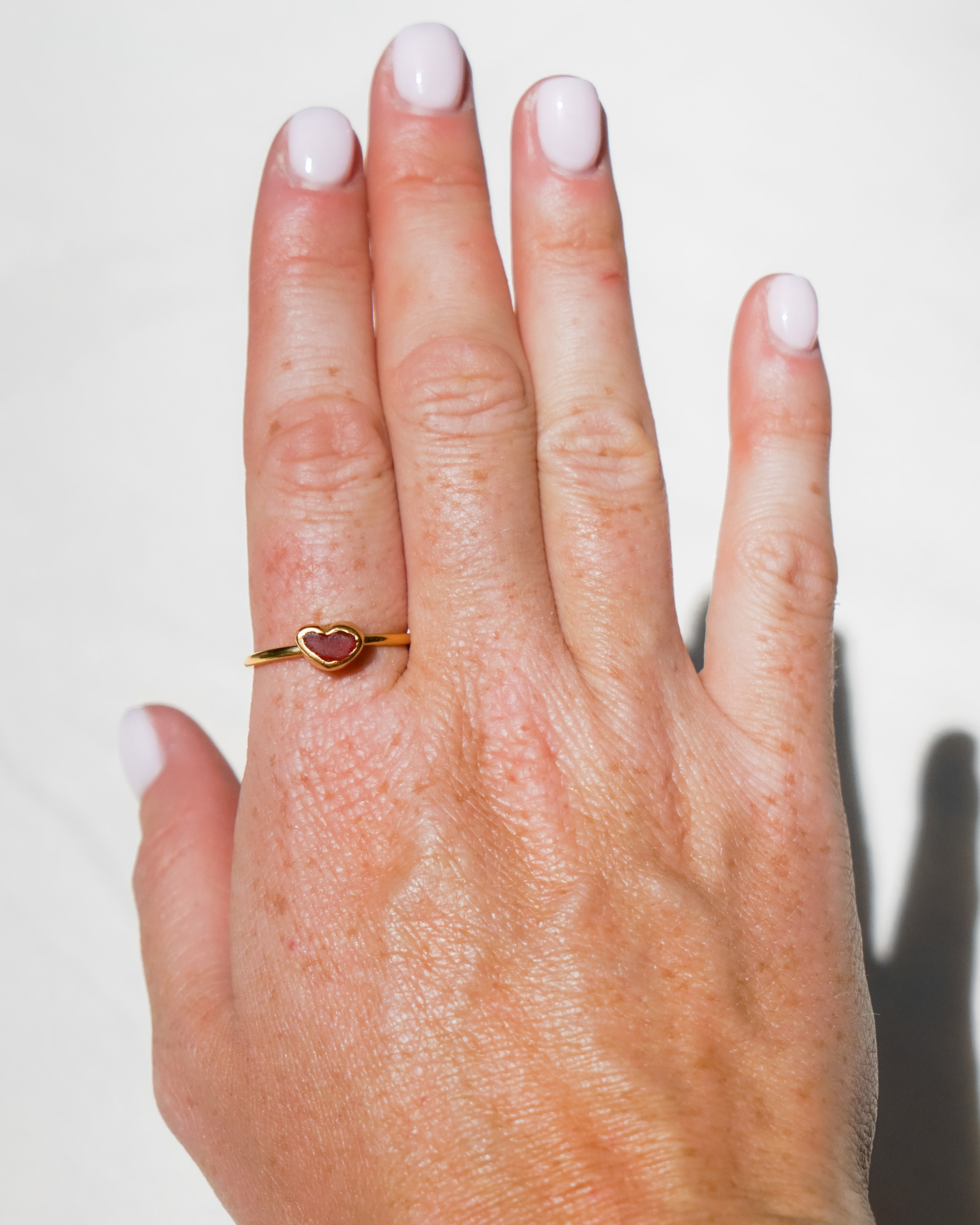 Red Sea Glass Heart, Gold Vermeil - Size T