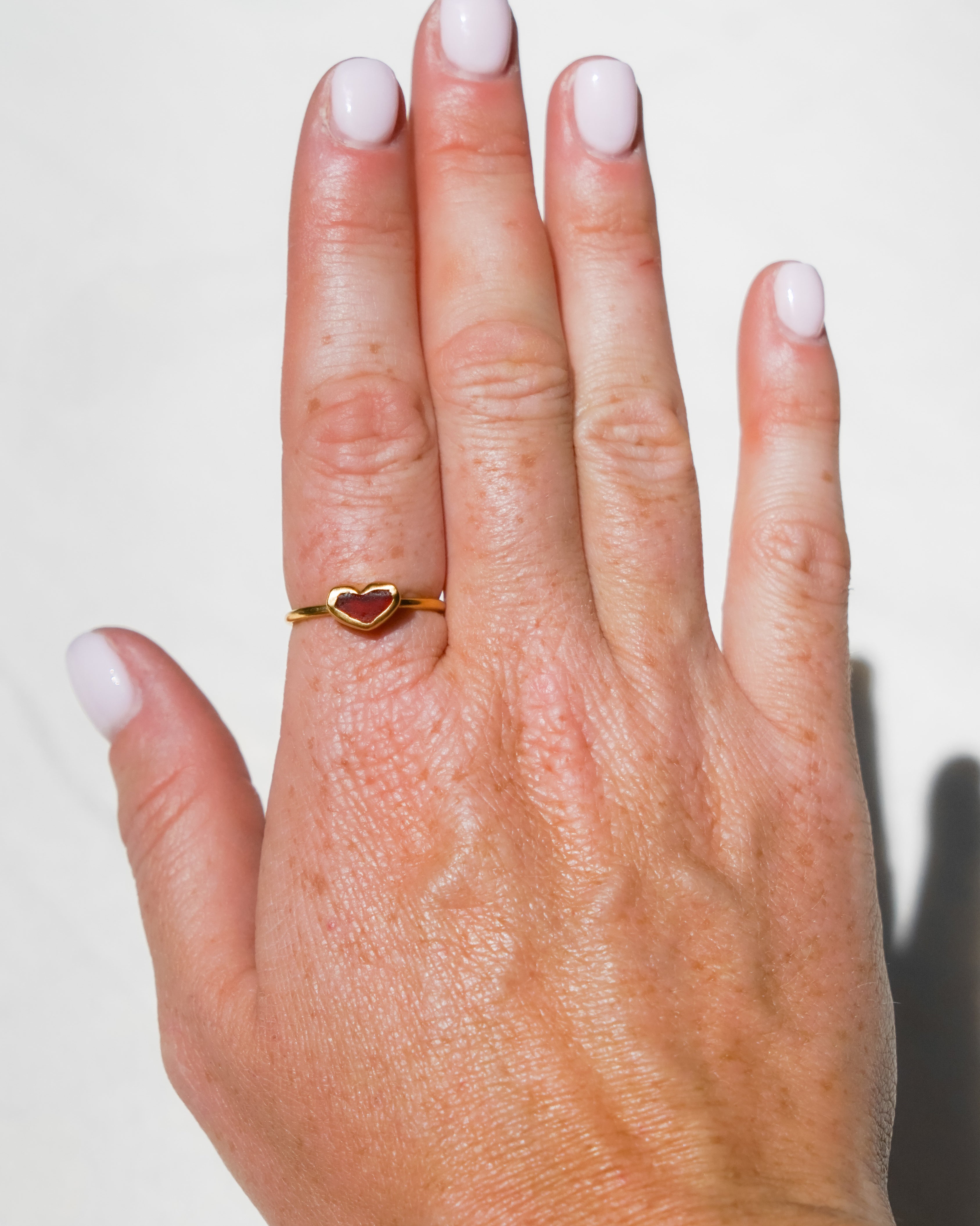 Red Sea Glass Heart, Gold Vermeil - Size P