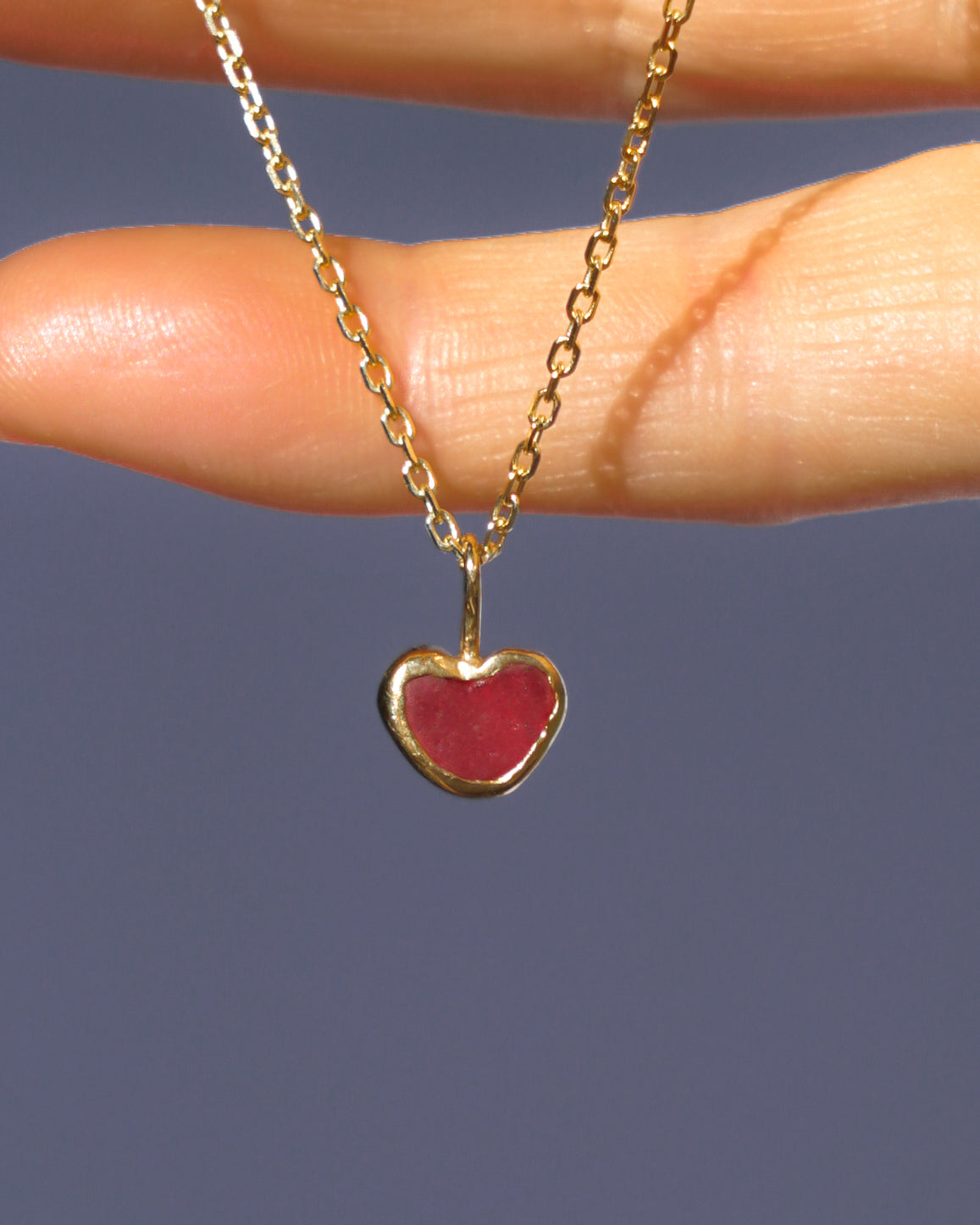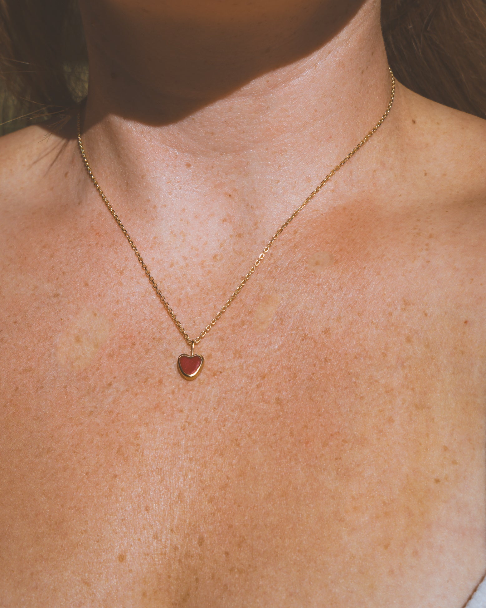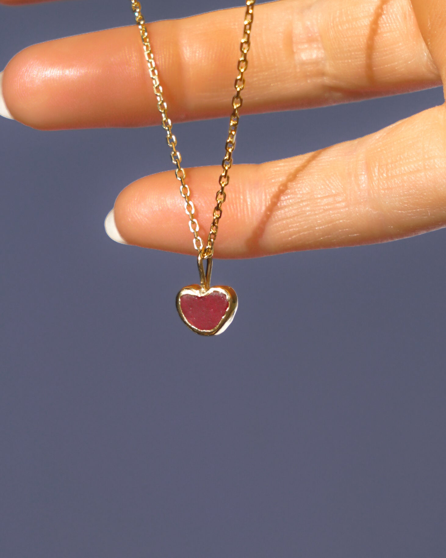 Red Sea Glass Heart Necklace, Gold Vermeil