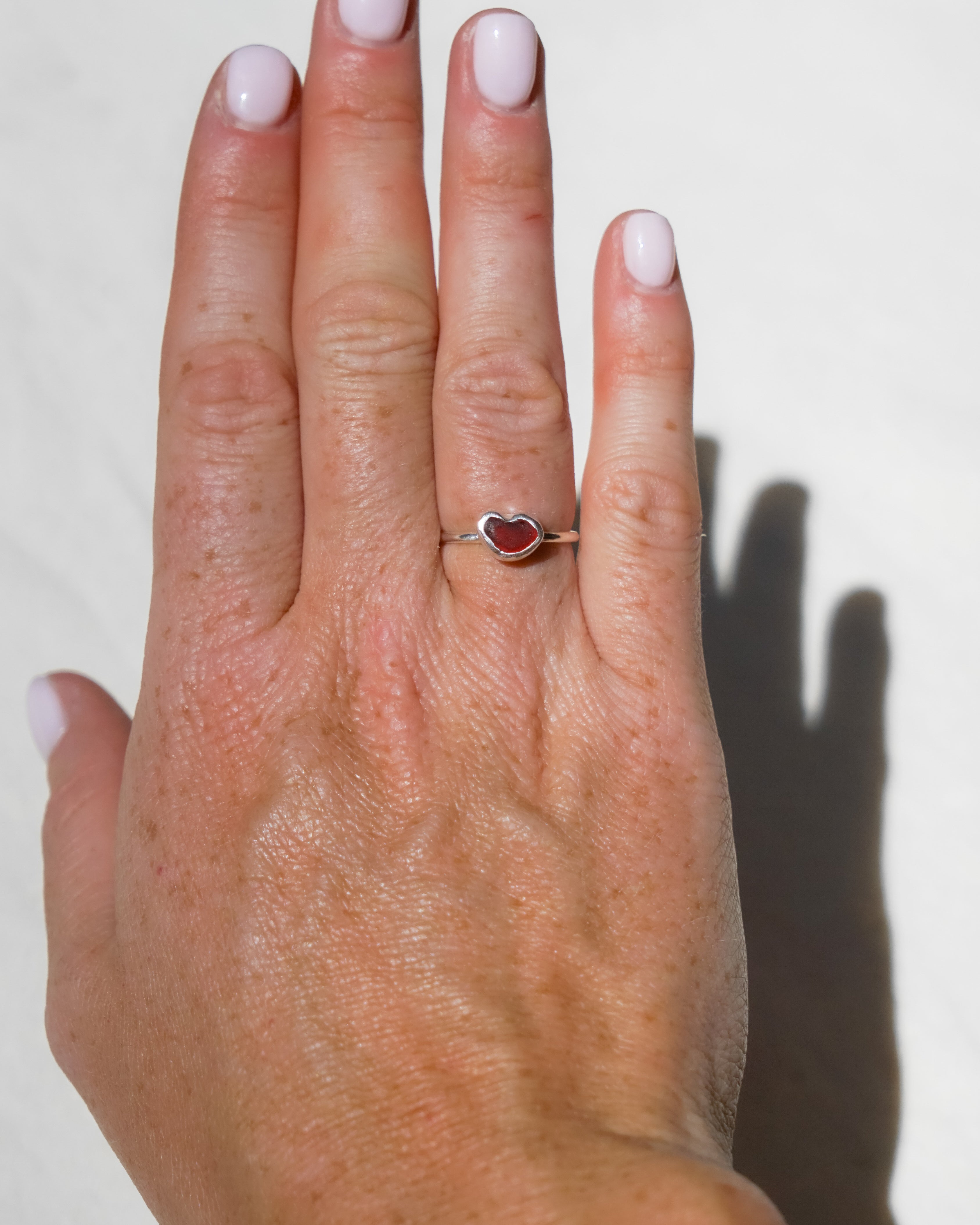 Sea Glass Heart Ring - Handmade from 925 Sterling Silver