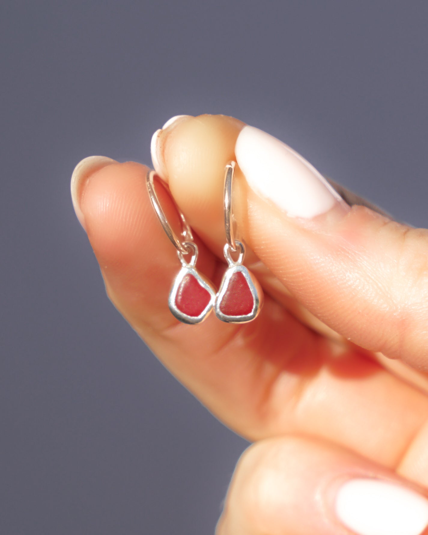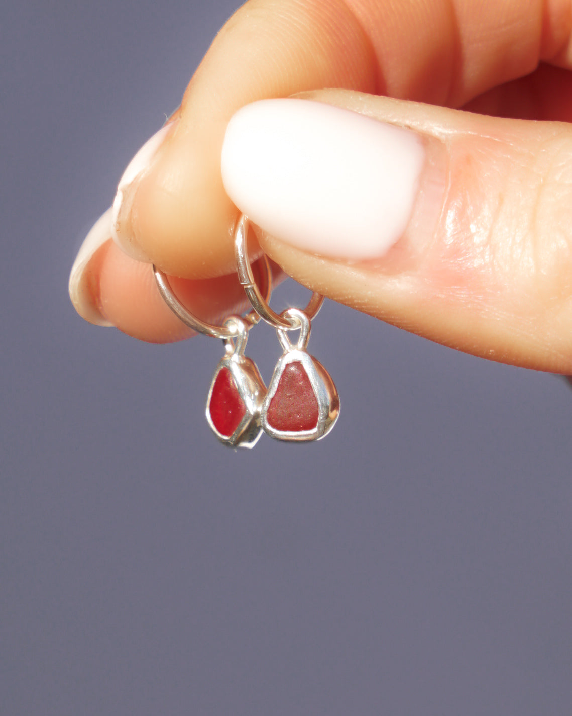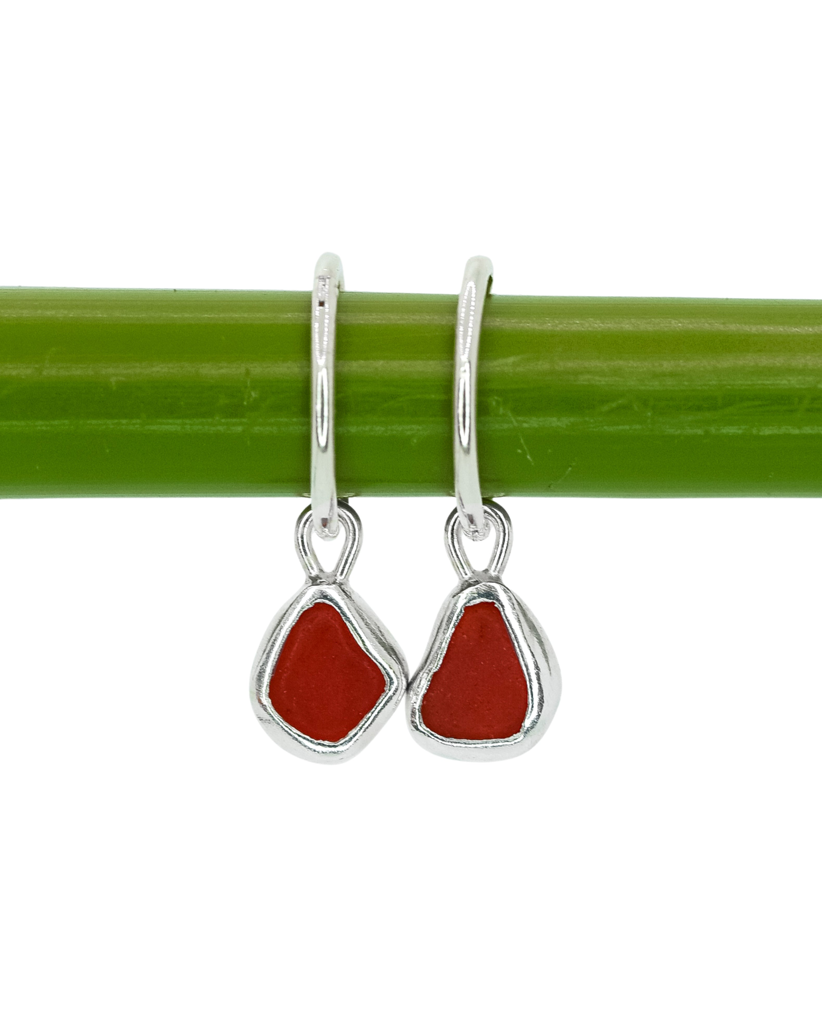 Red Sea Glass Hoops - Handmade from 925 sterling silver