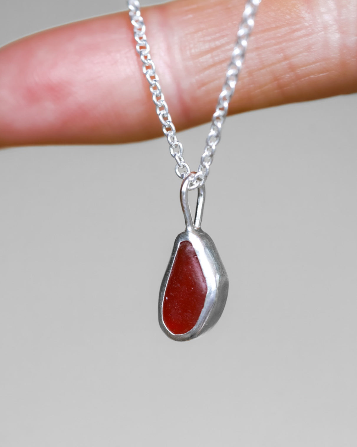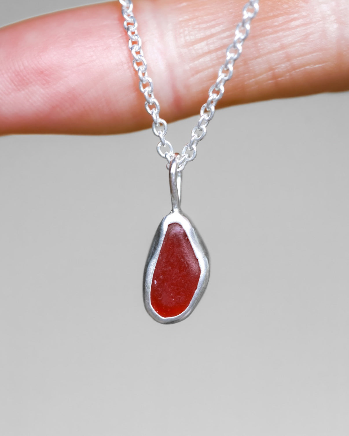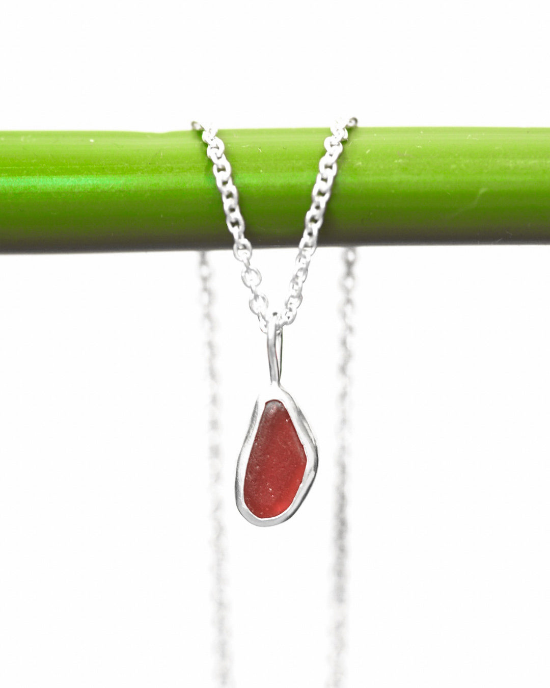 Red Sea Glass Necklace - Handmade from 925 sterling silver and placed on a 45 cm sterling silver chain.