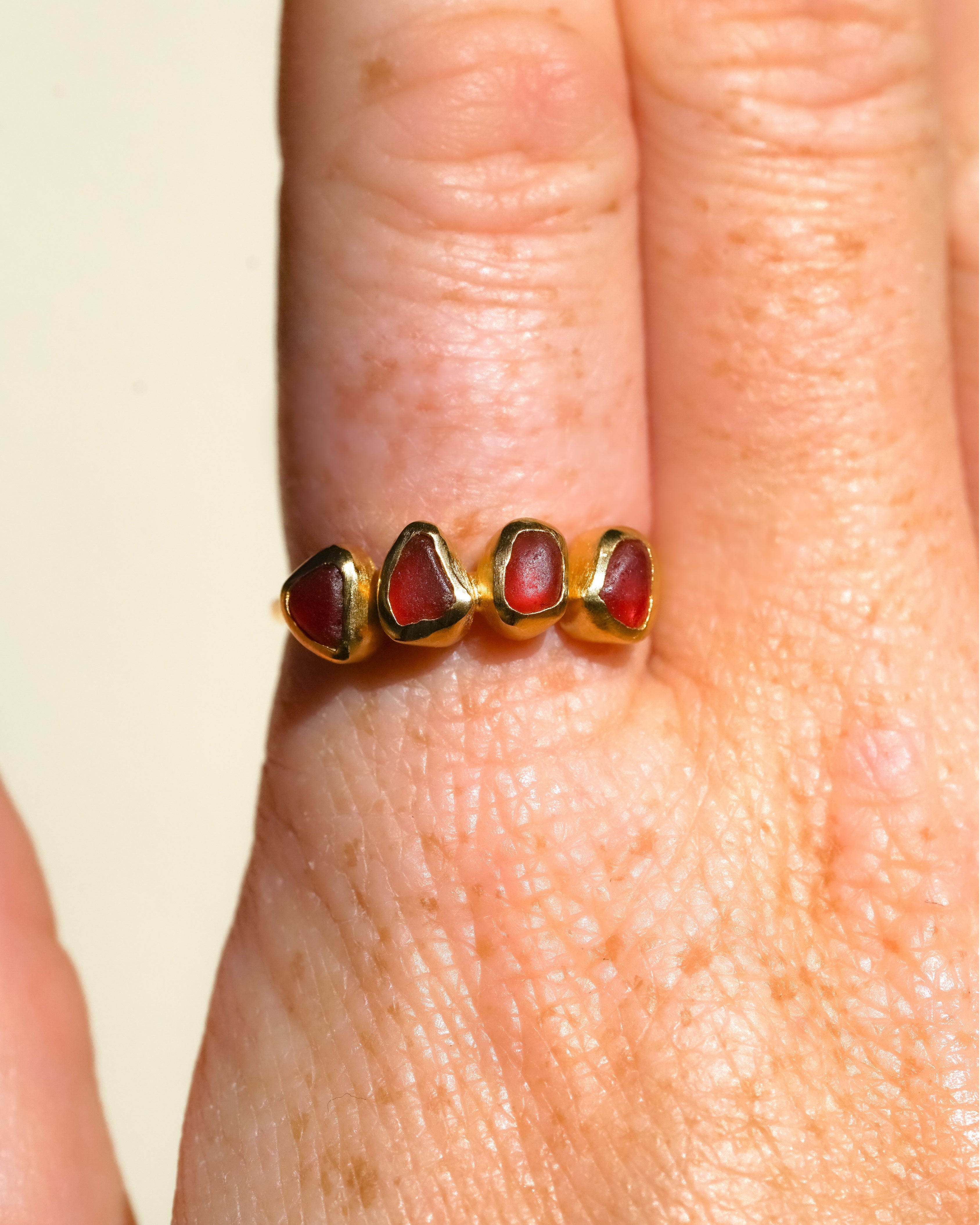 Red Sea Glass, Gold Vermeil - Size Q