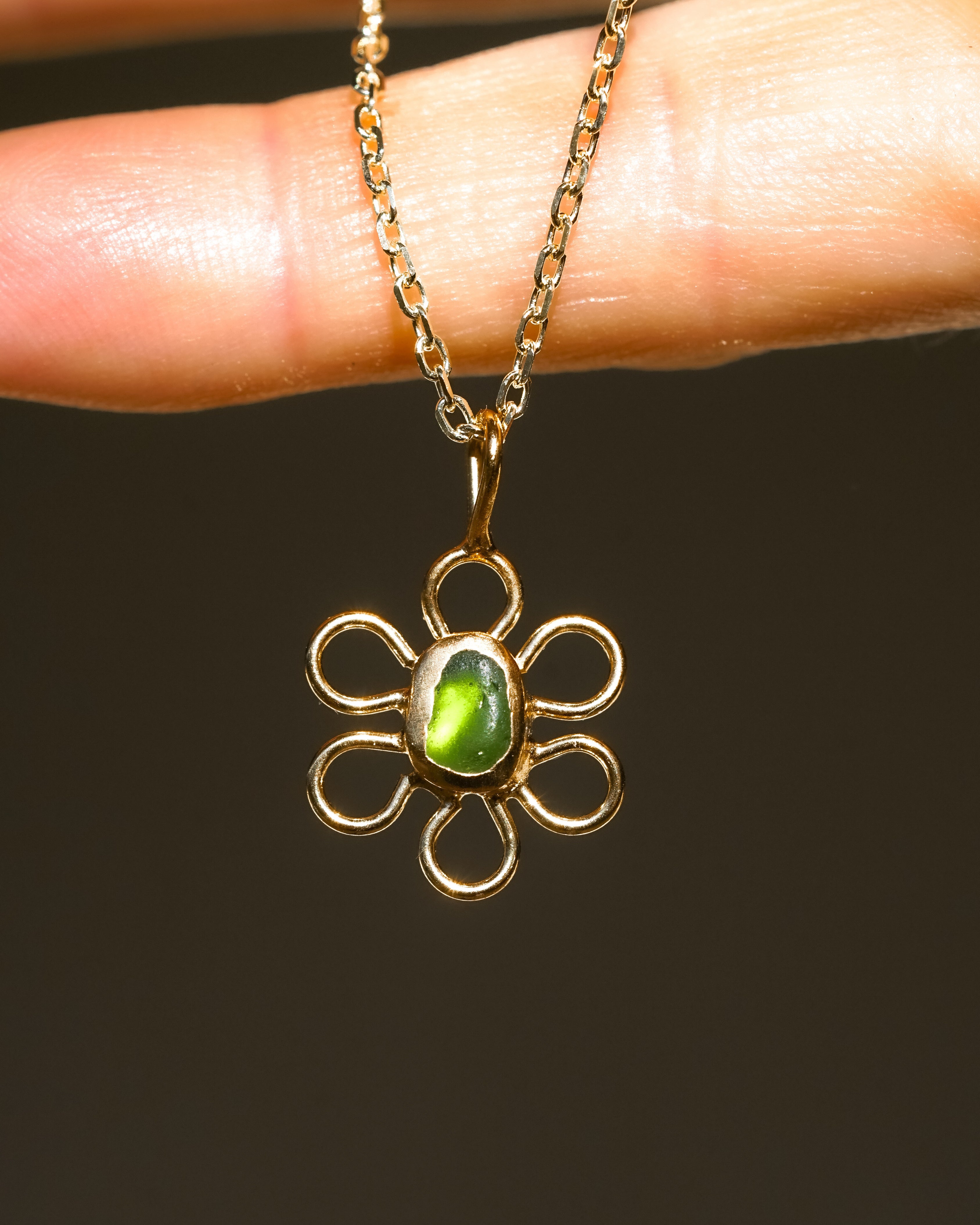 Sea Glass Flower Necklace - Gold Vermeil