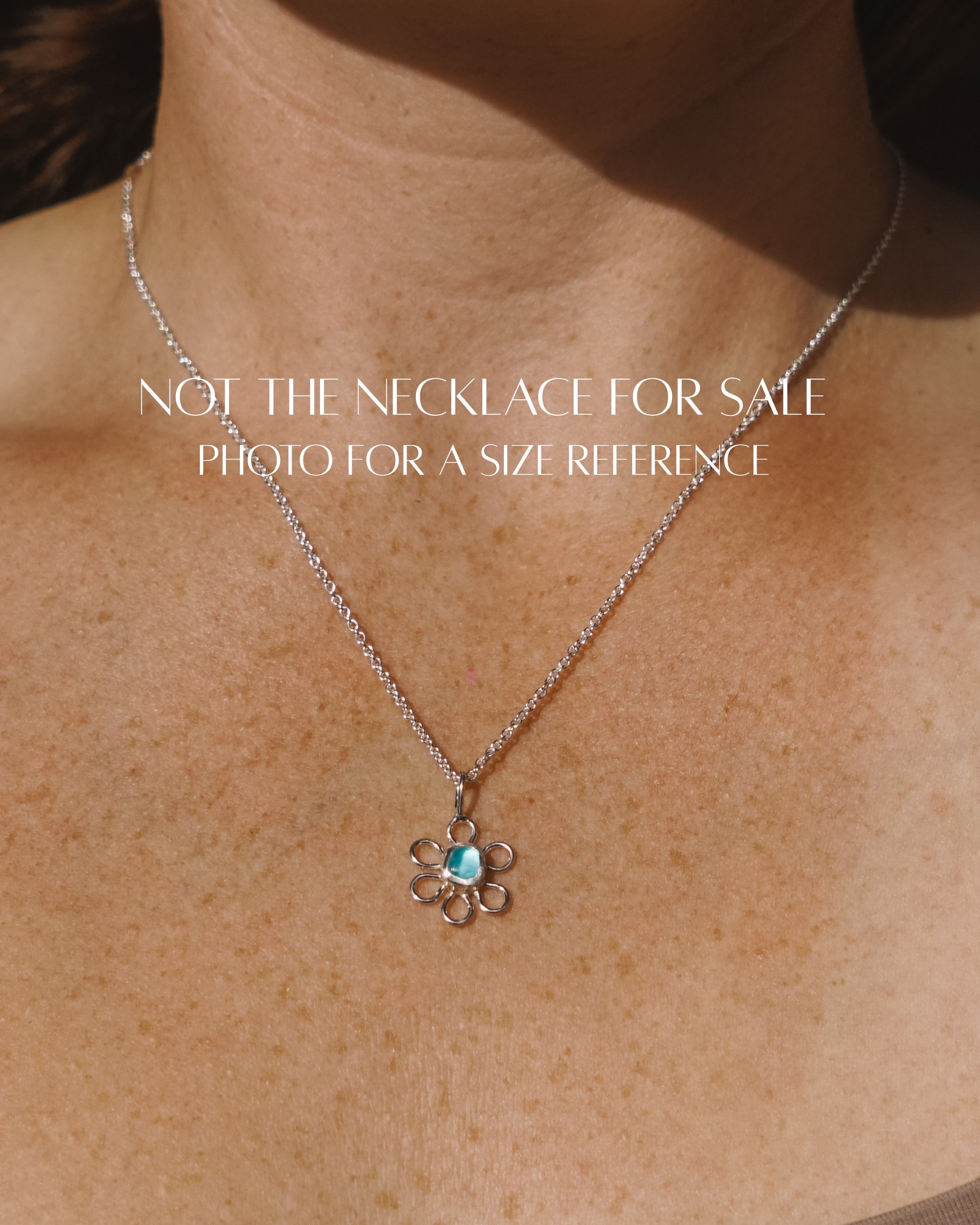A beautifully minimalist necklace representing a flower, with a piece of sea glass in the centre. Sterling silver wire has been placed around the glass as petals 🌸