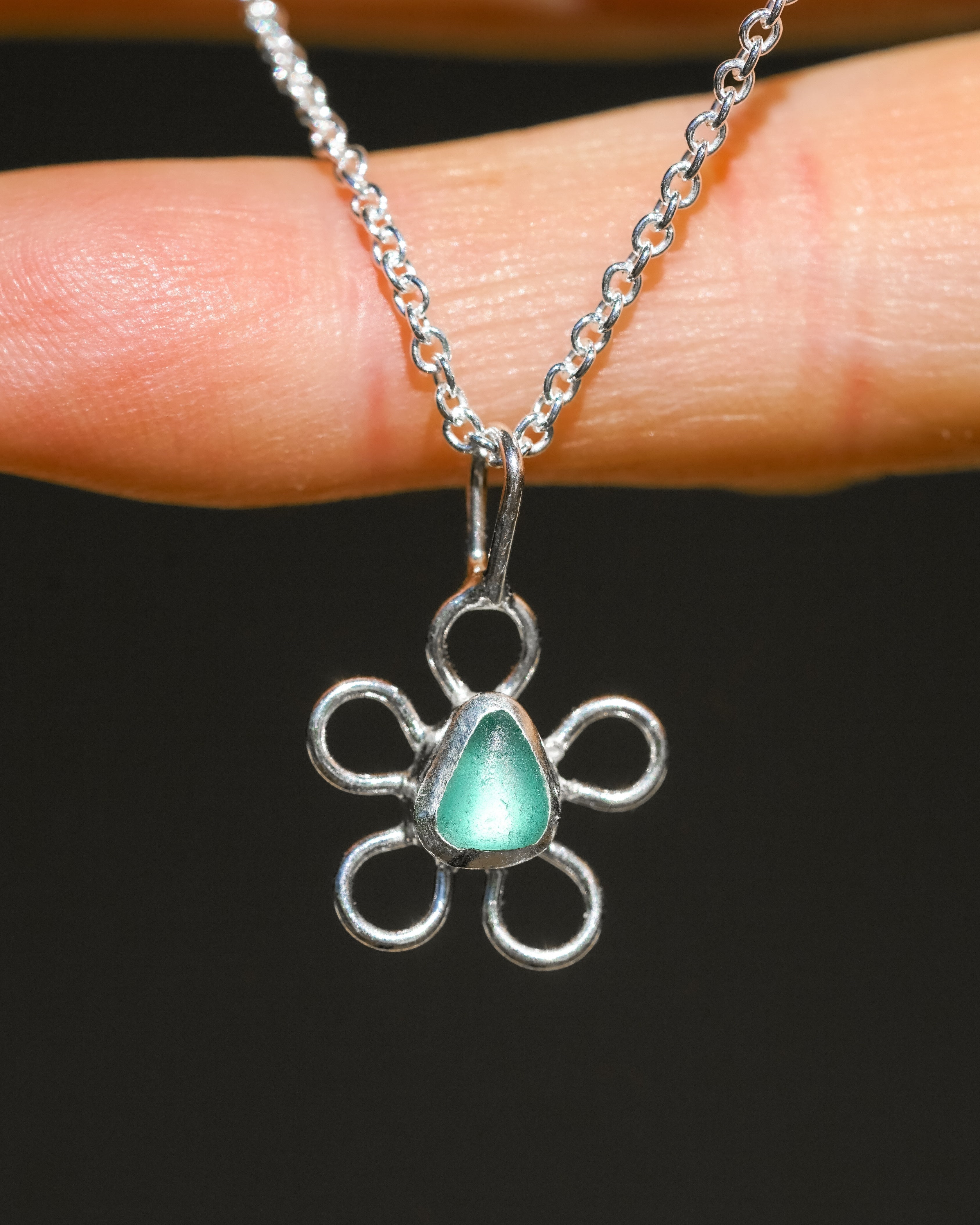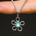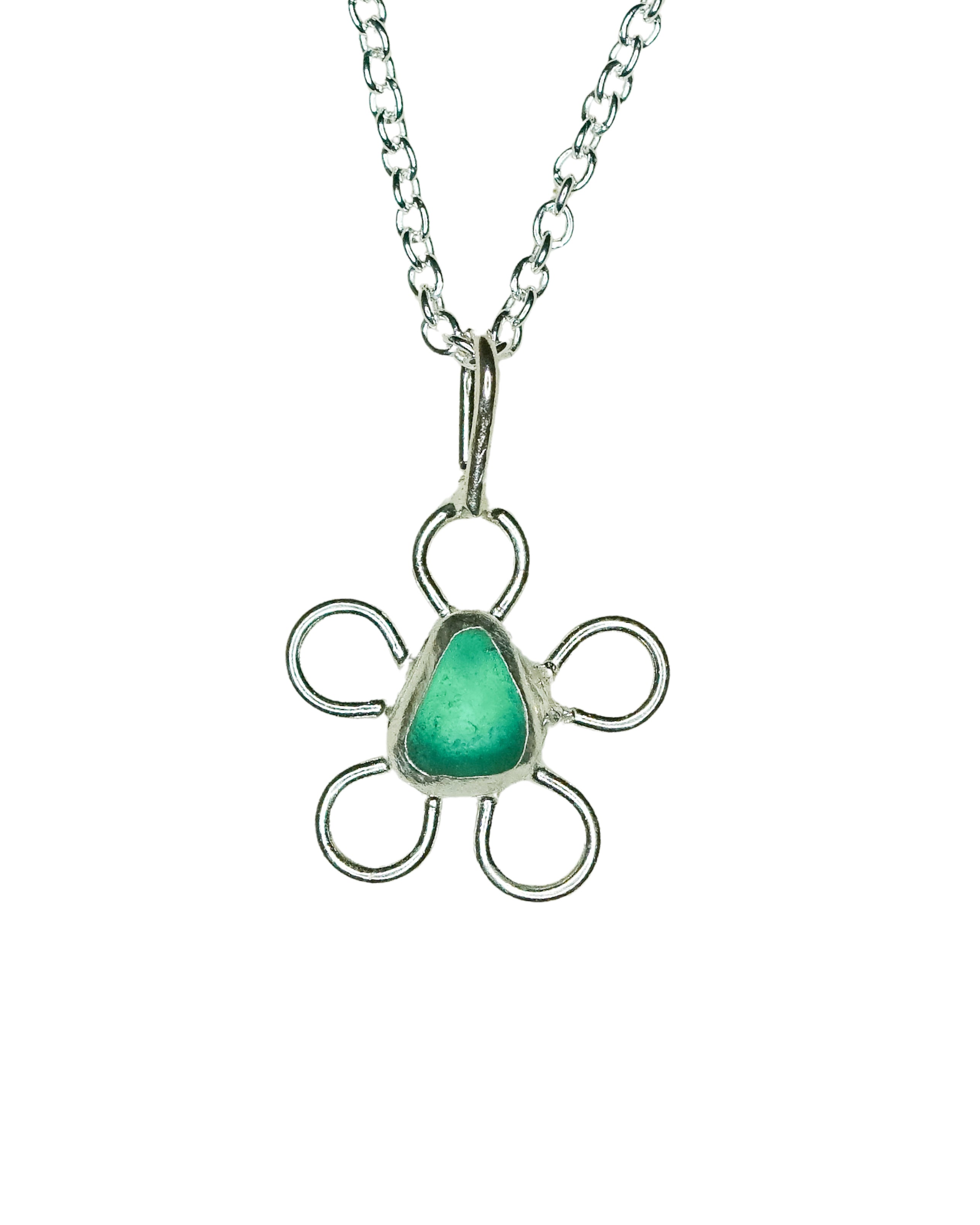Green Sea Glass Flower - Handmade from 925 sterling silver and placed on a 45 cm sterling silver chain.