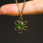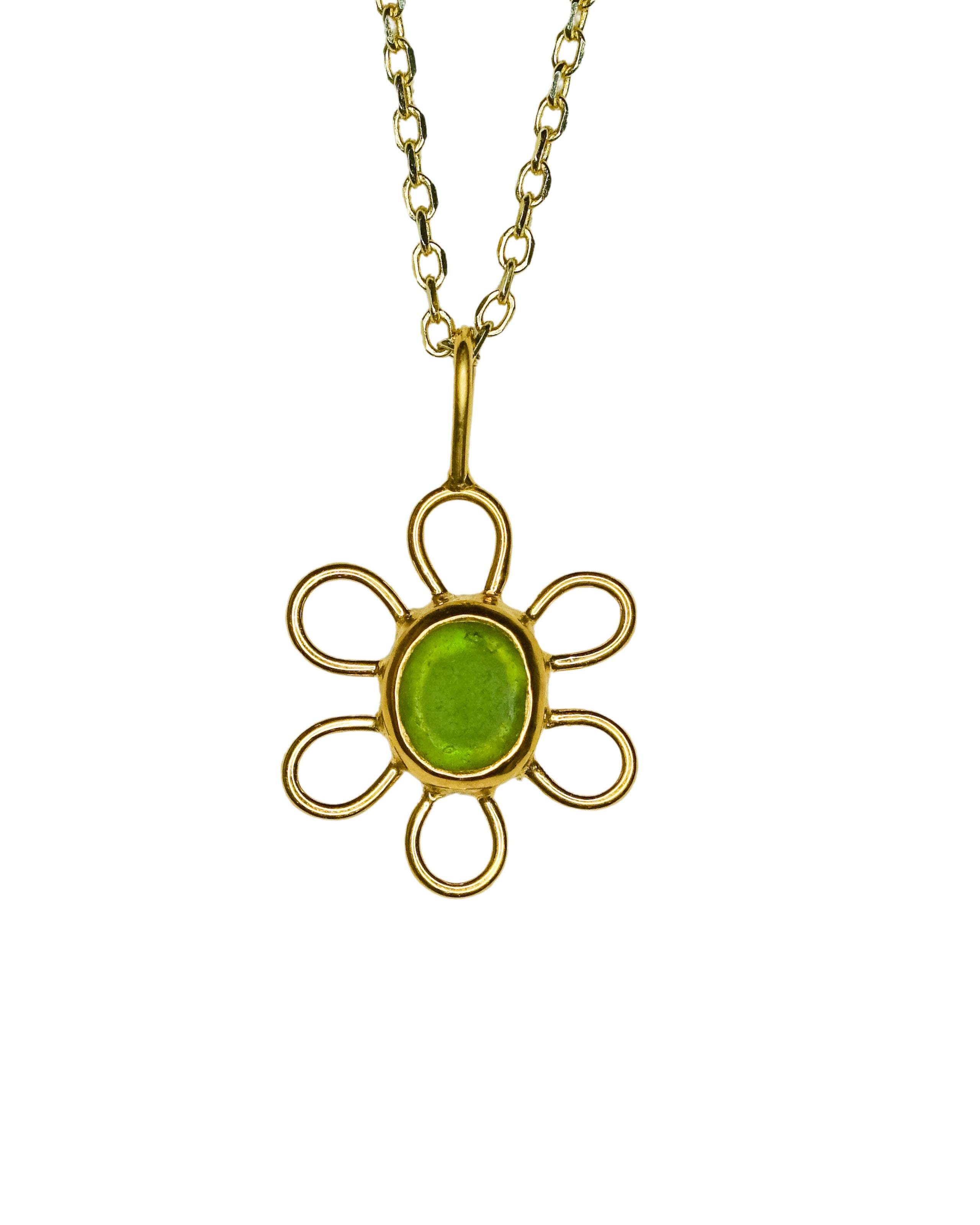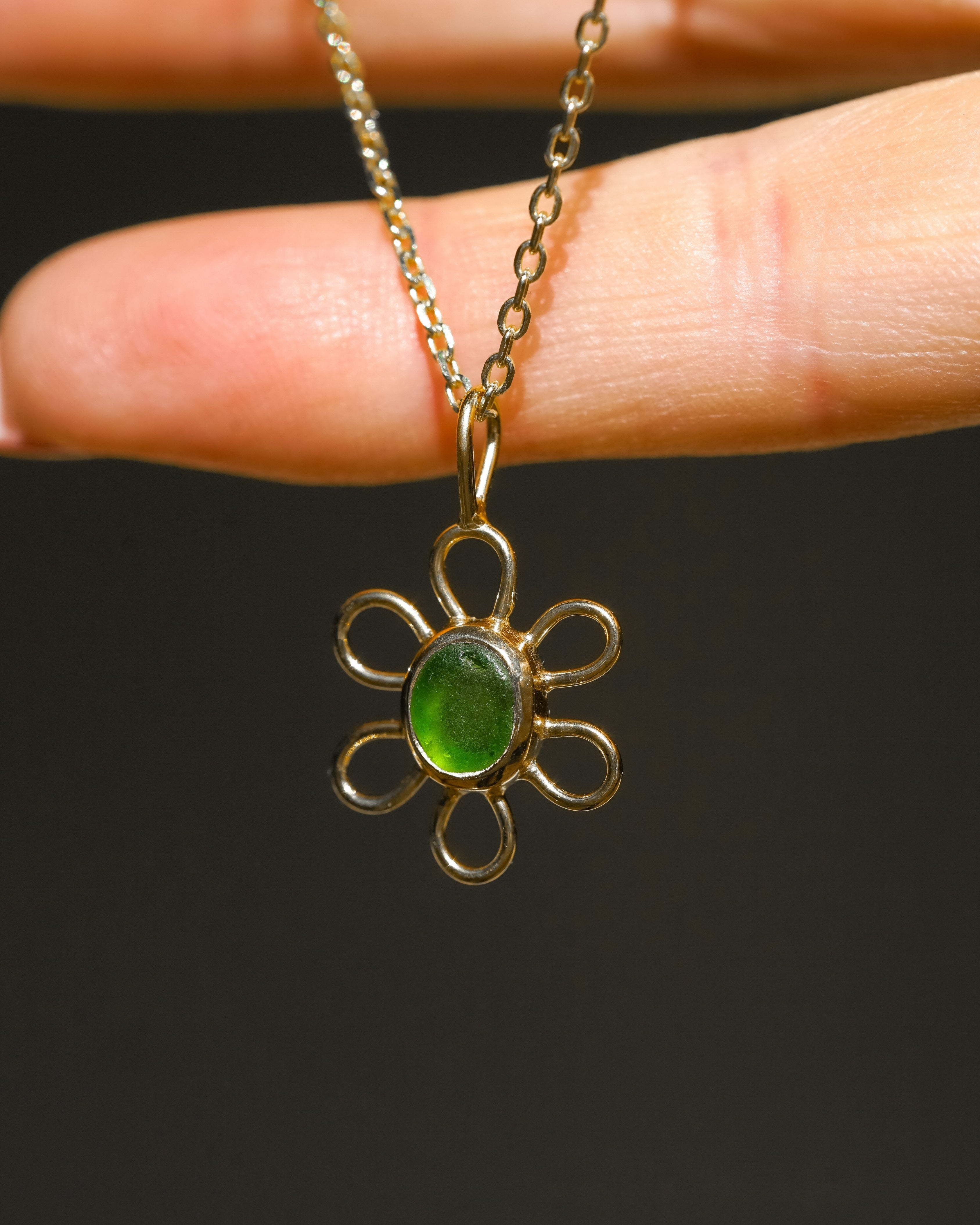Green Sea Glass Flower - Handmade from 925 Sterling Silver plated with a 10 micron thick and hard layer of 24K (Gold Vermeil)