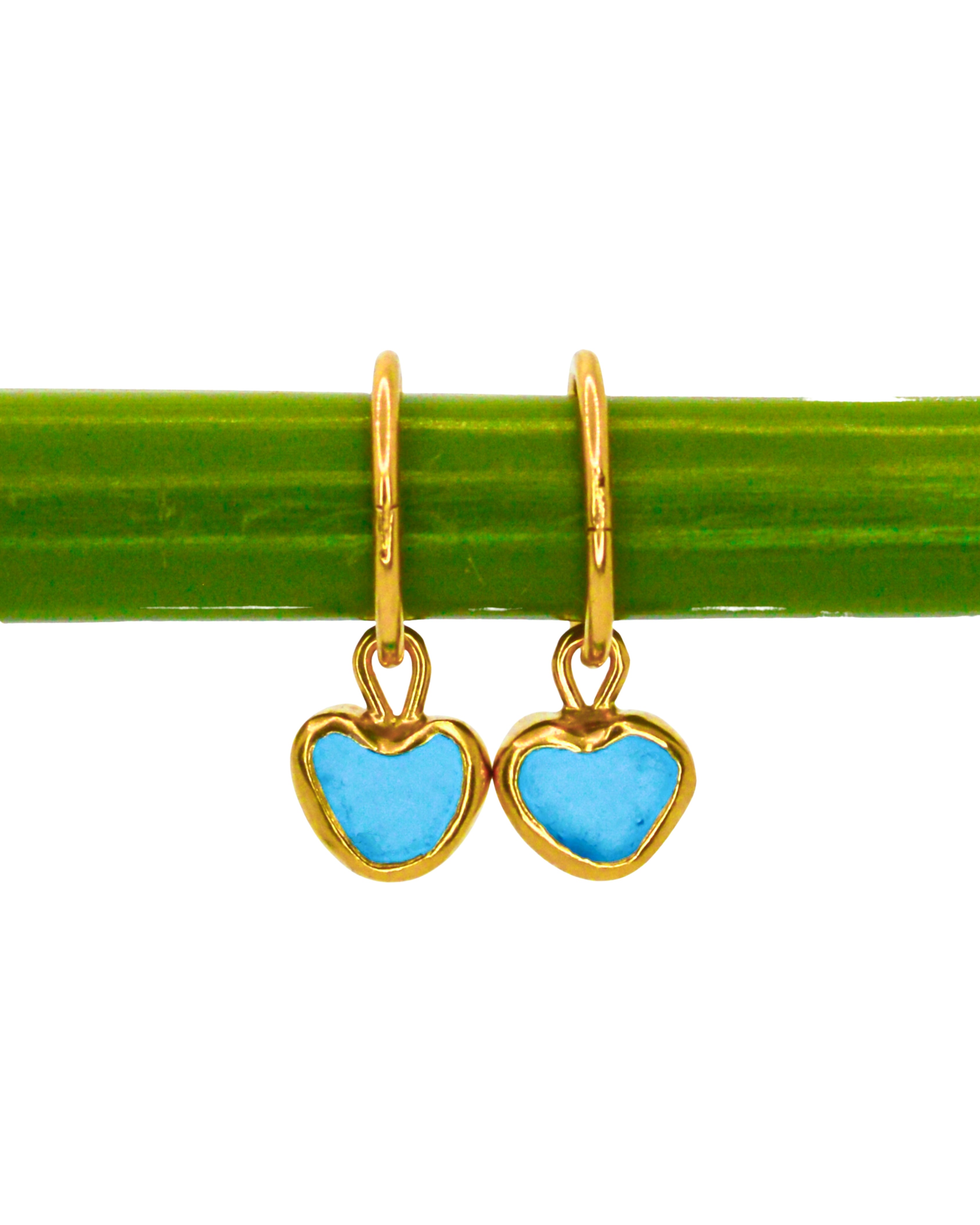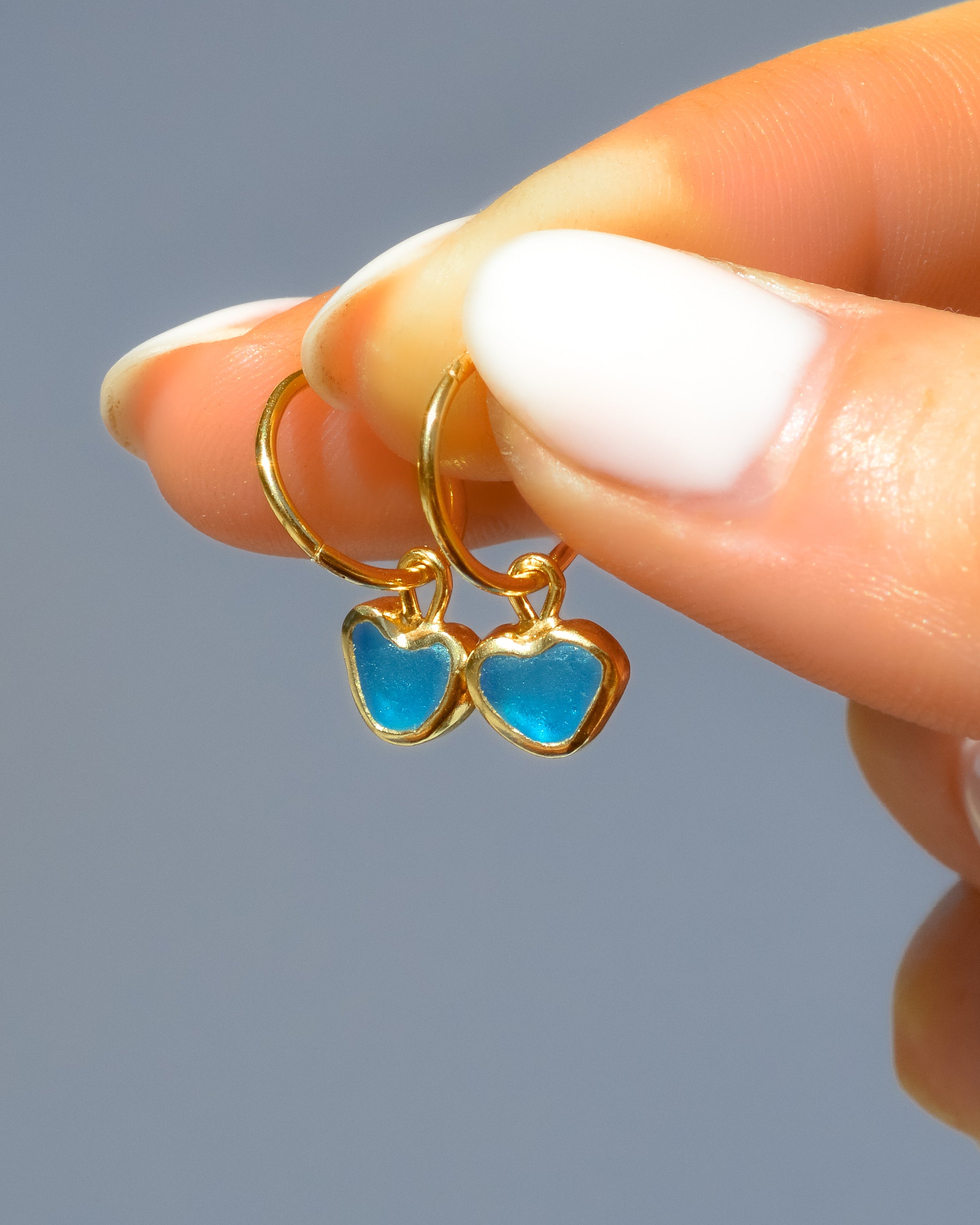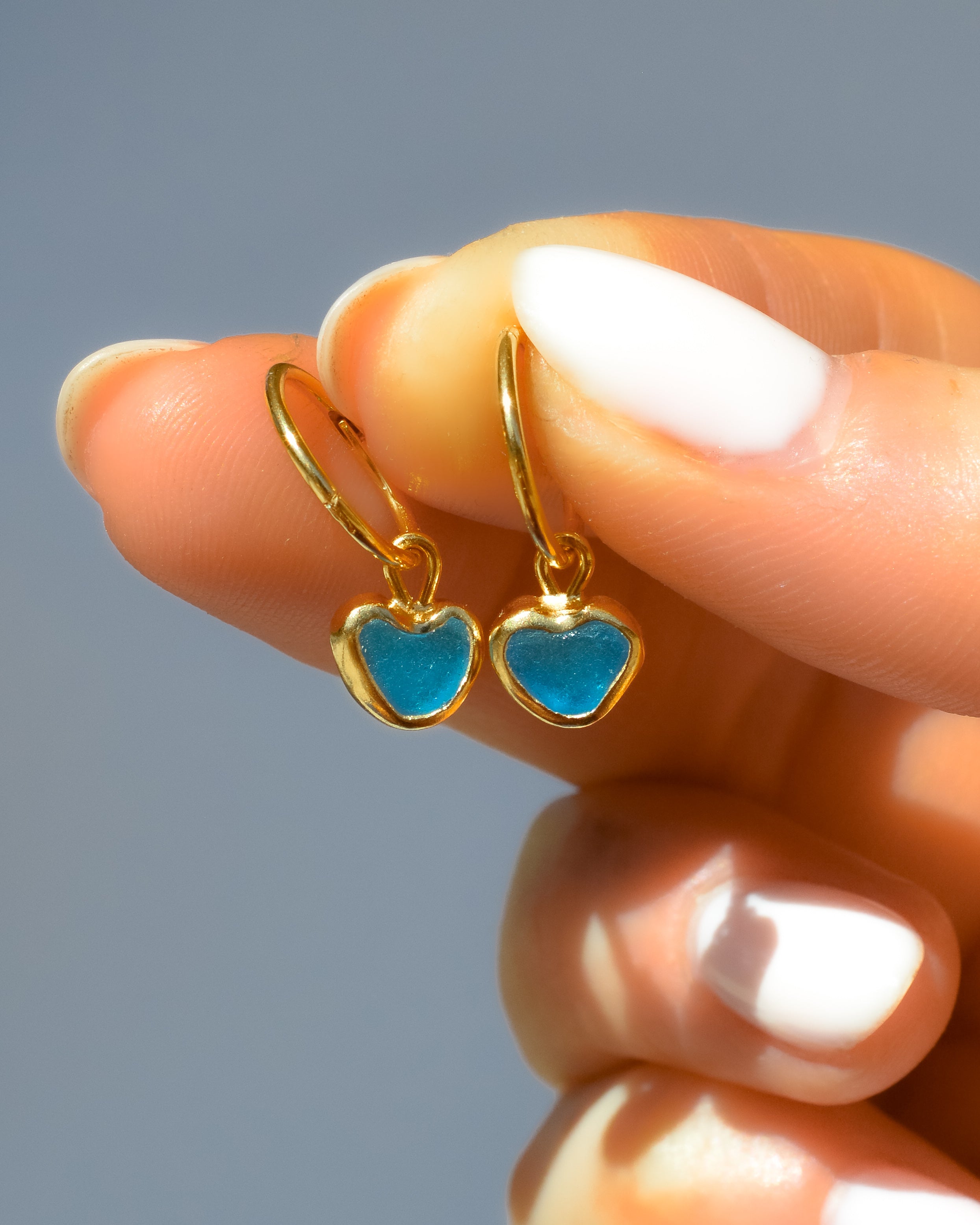 Blue Sea Glass Hearts - Handmade from 925 Sterling Silver plated with a 10 micron thick and hard layer of 24K (Gold Vermeil)