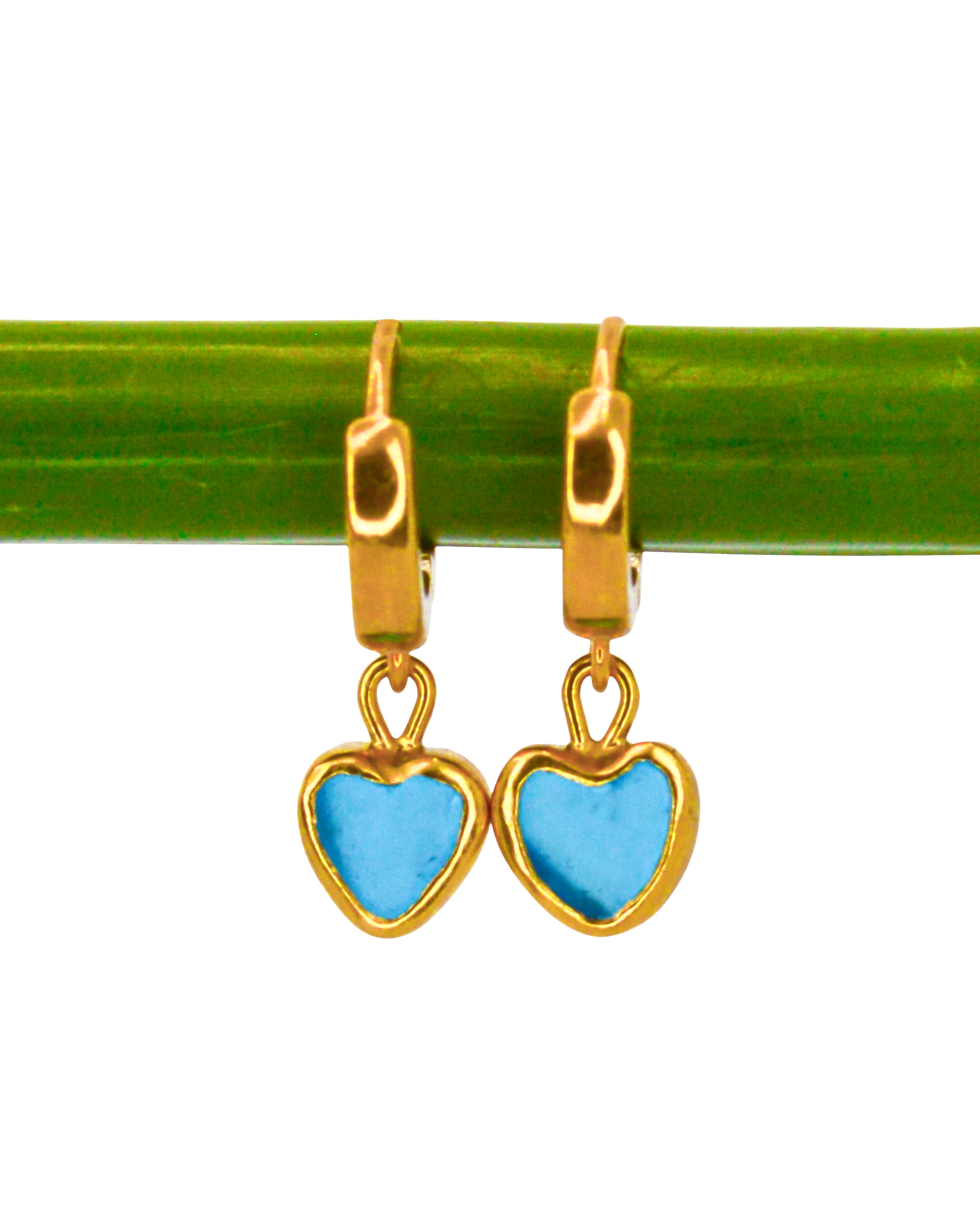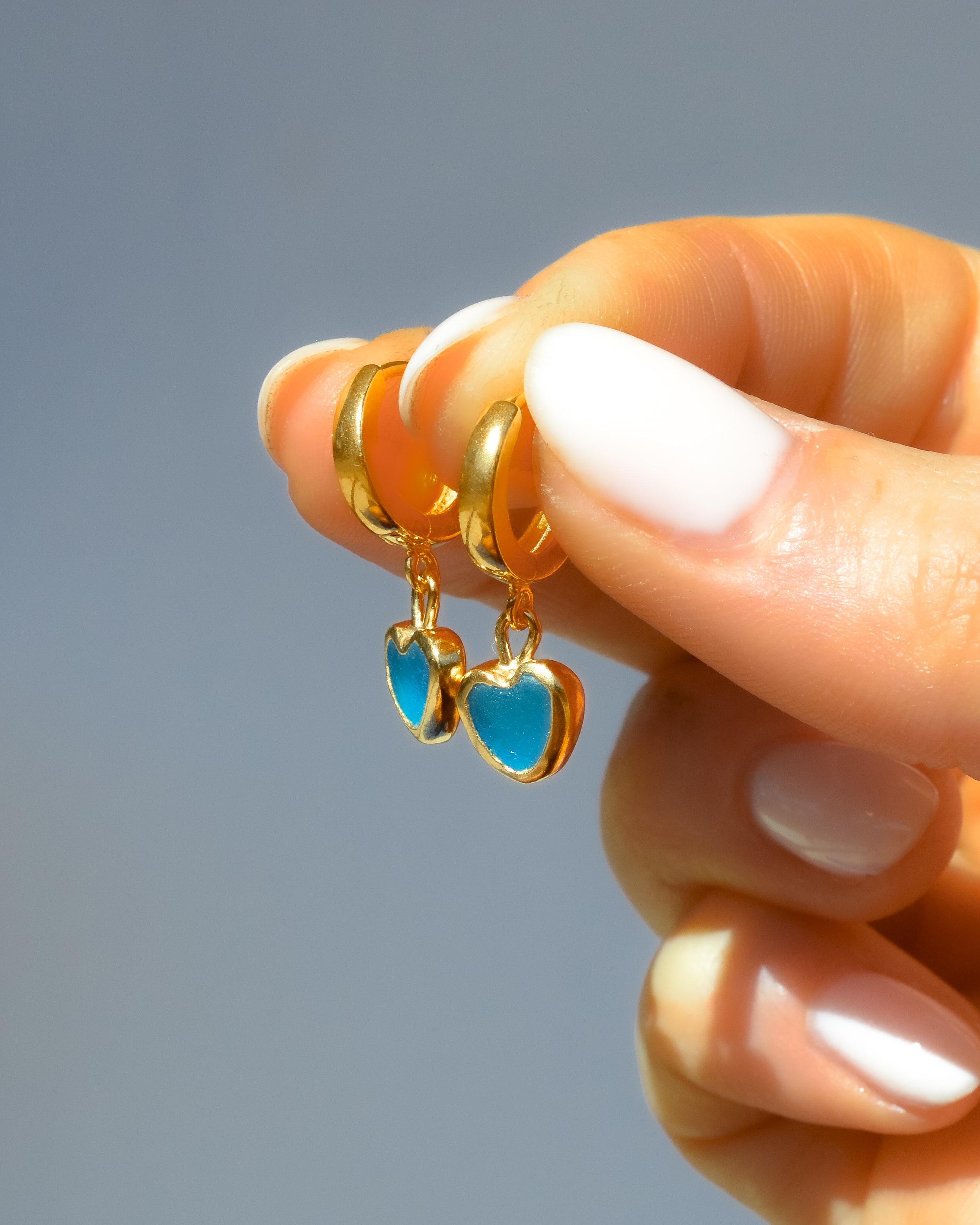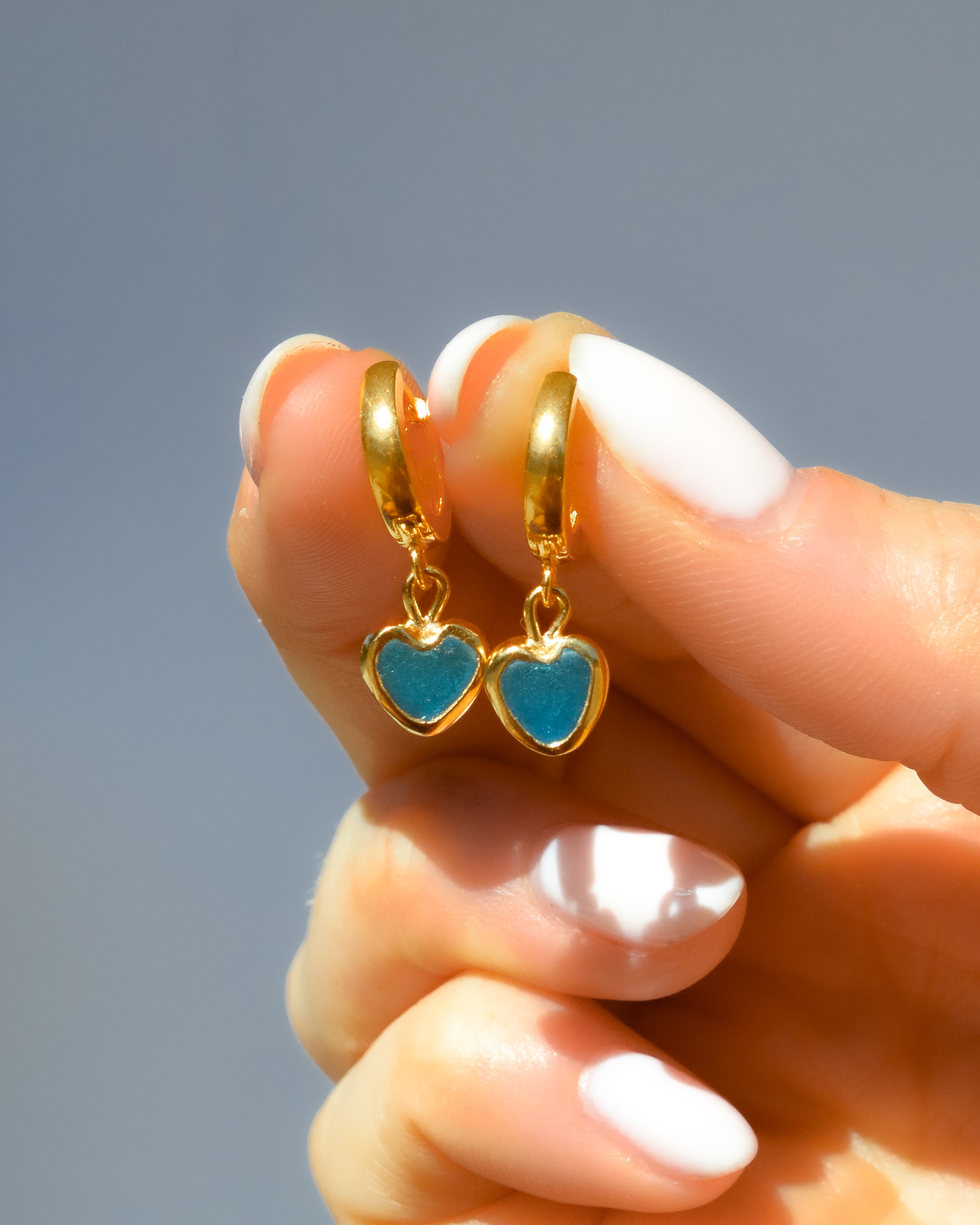 Blue Sea Glass Hearts - Handmade from 925 Sterling Silver plated with a 10 micron thick and hard layer of 24K (Gold Vermeil)
