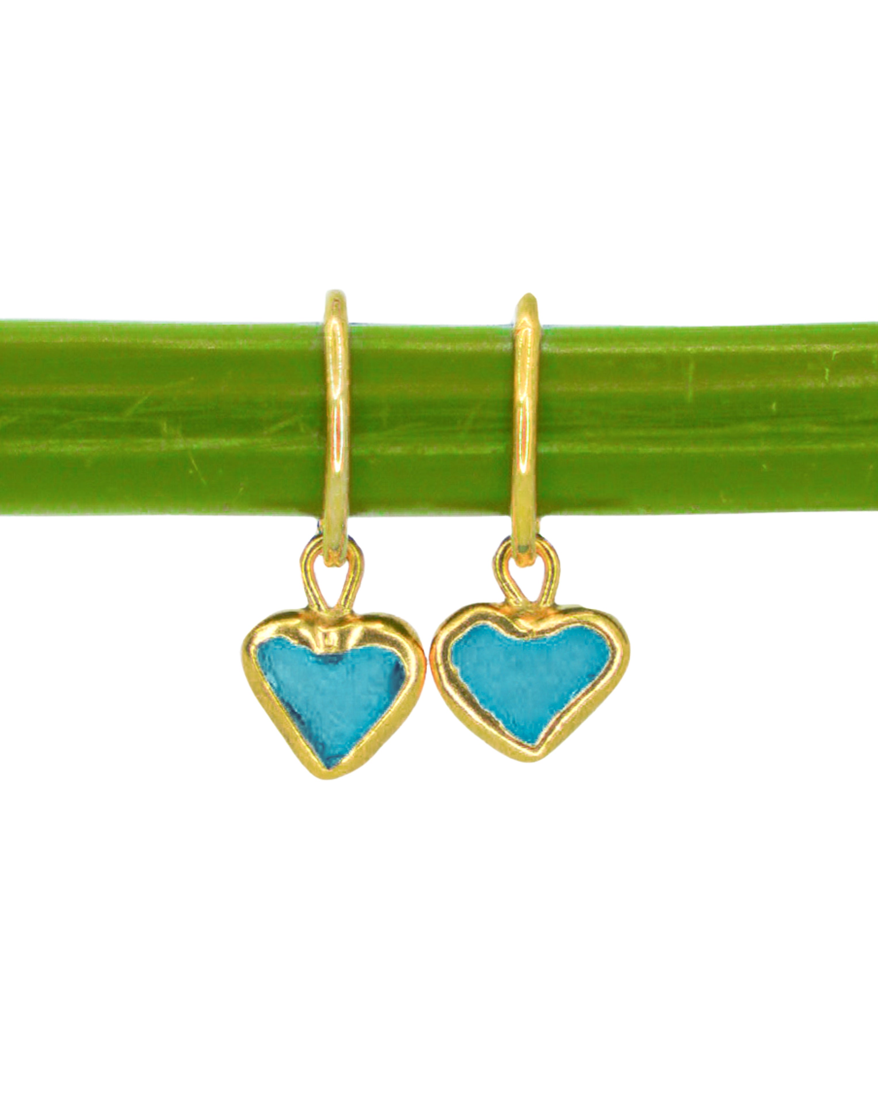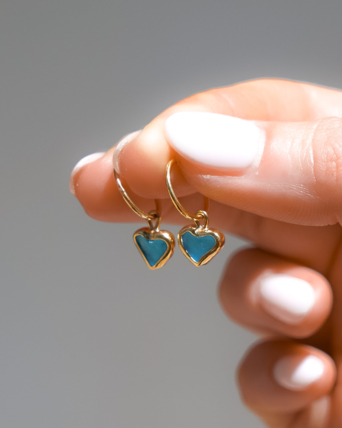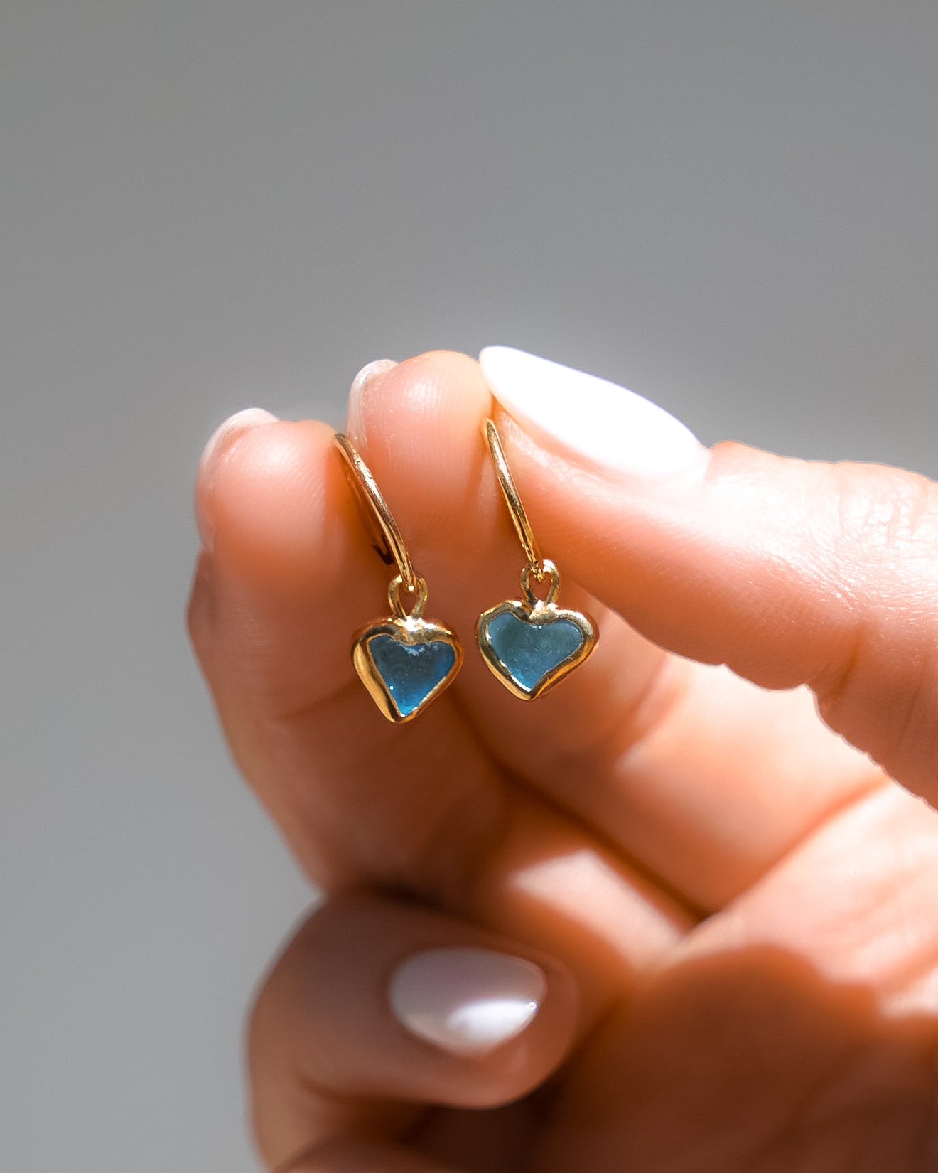 Blue Sea Glass Hearts - Handmade from 925 Sterling Silver plated with a 10 micron thick and hard layer of 24K (Gold Vermeil)