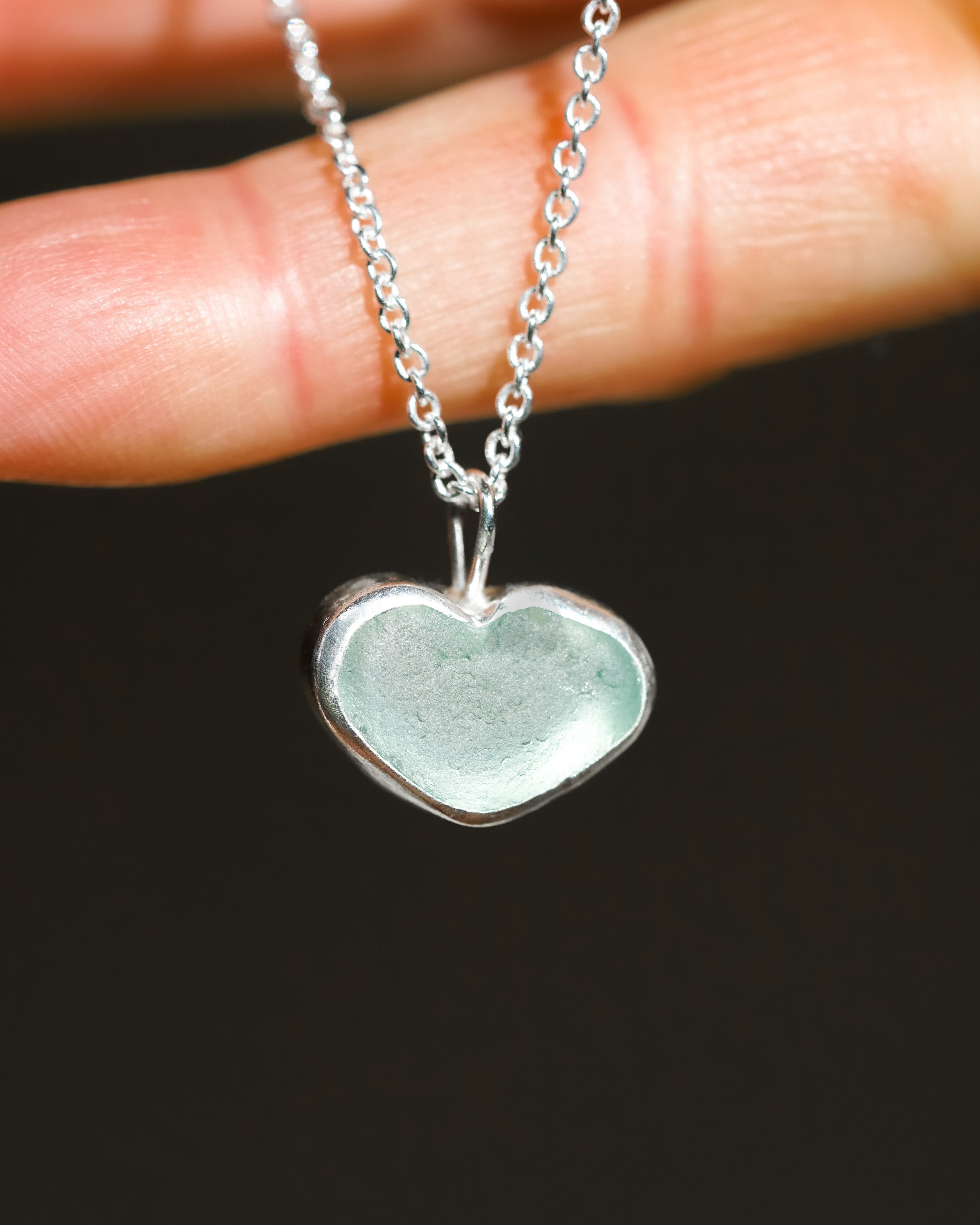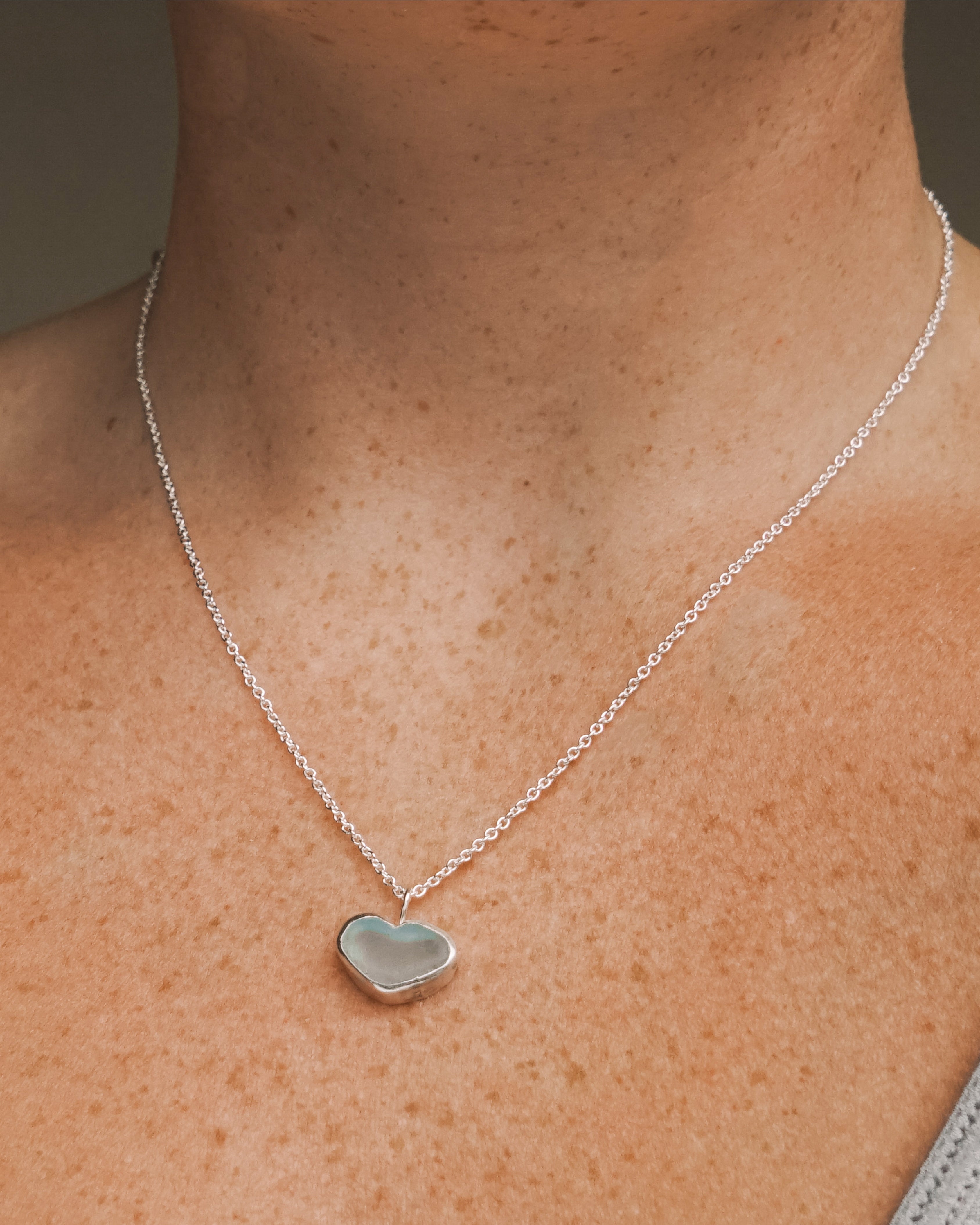 The sweetest sea glass heart, perfect for your everyday wear 🤍 Each piece of sea glass has been washed and tumbled in the ocean giving them a smooth matte look