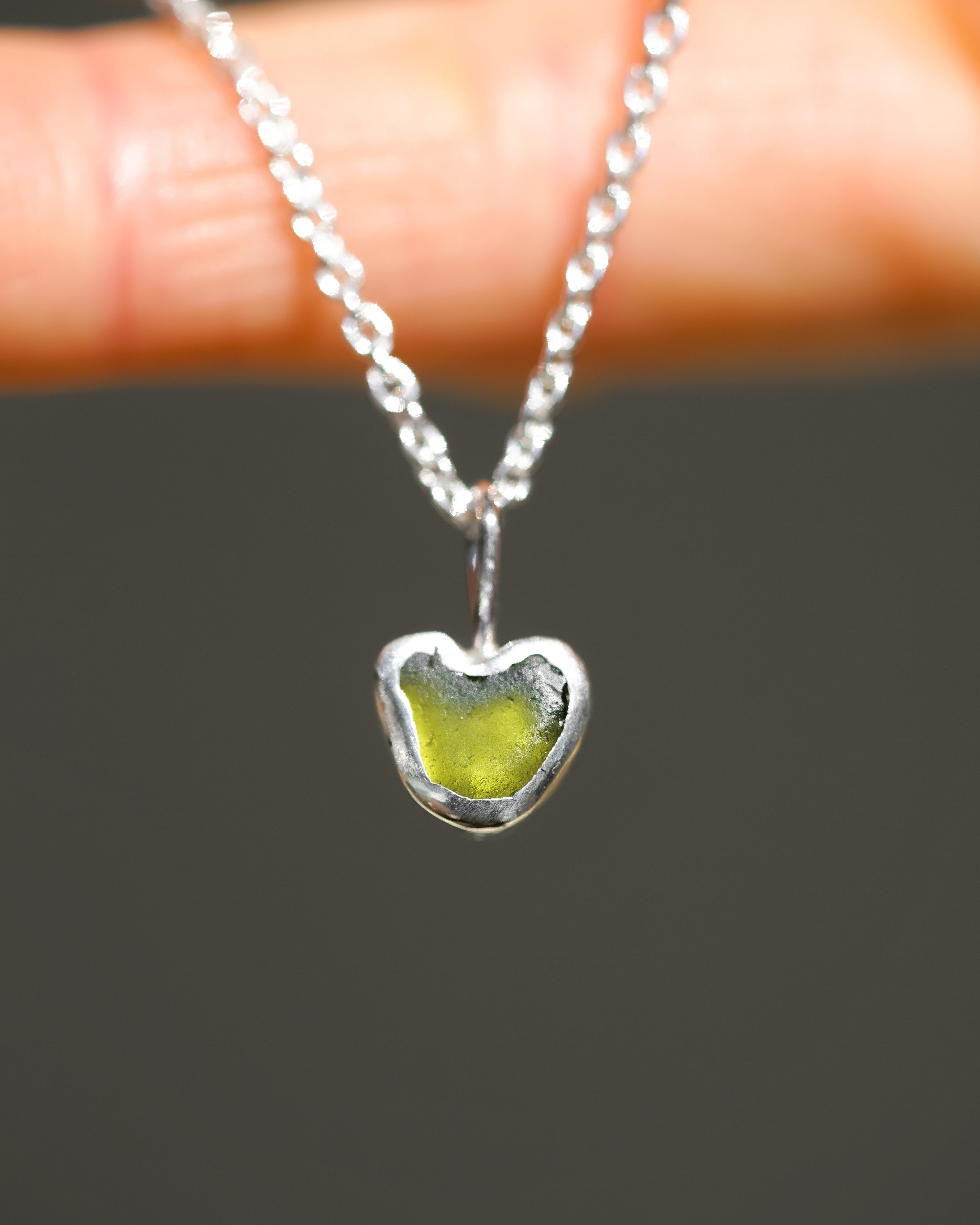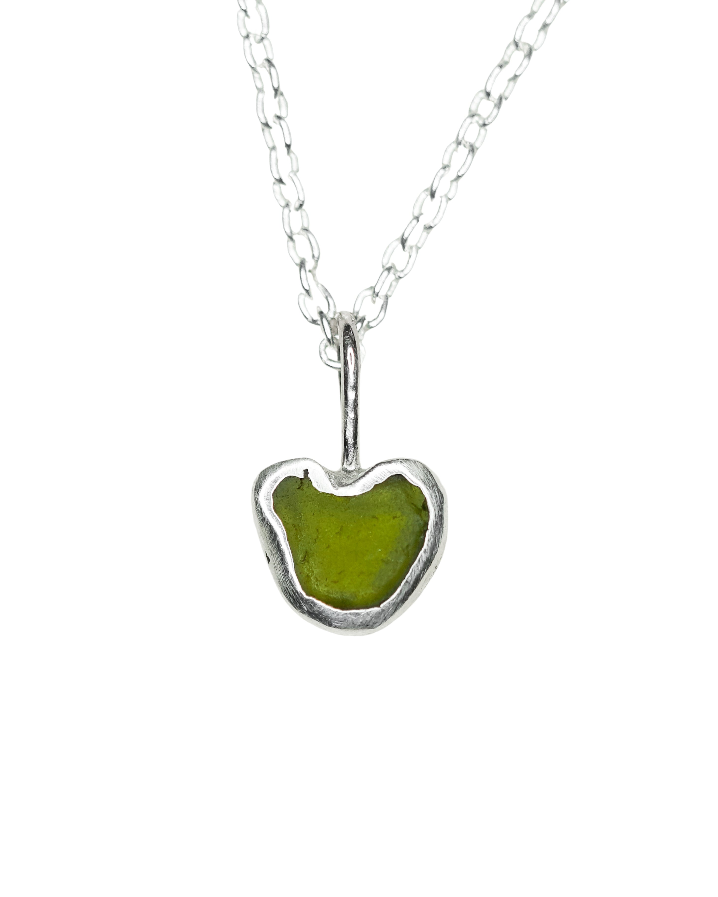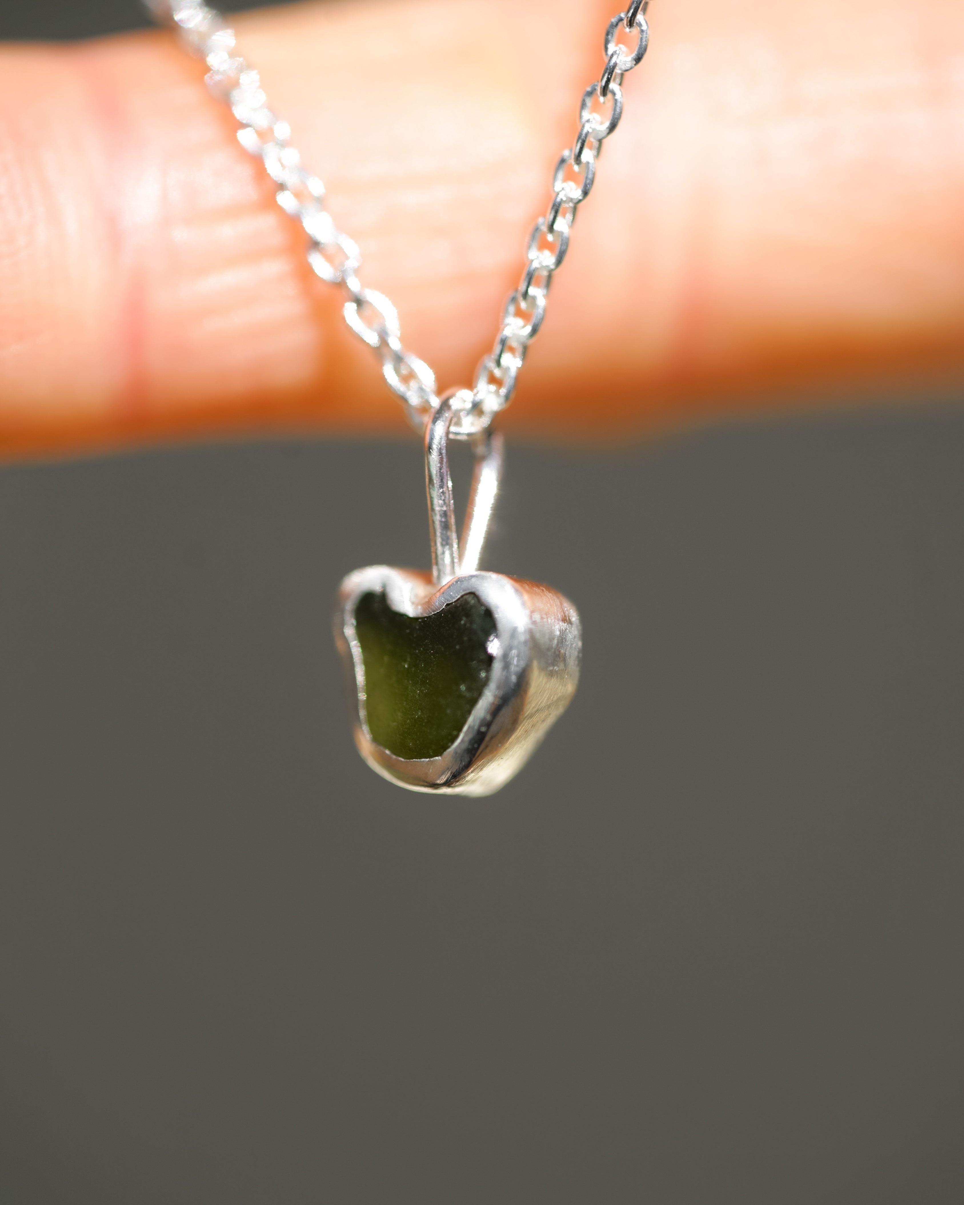 Green Sea Glass Necklace - Handmade from 925 Sterling Silver