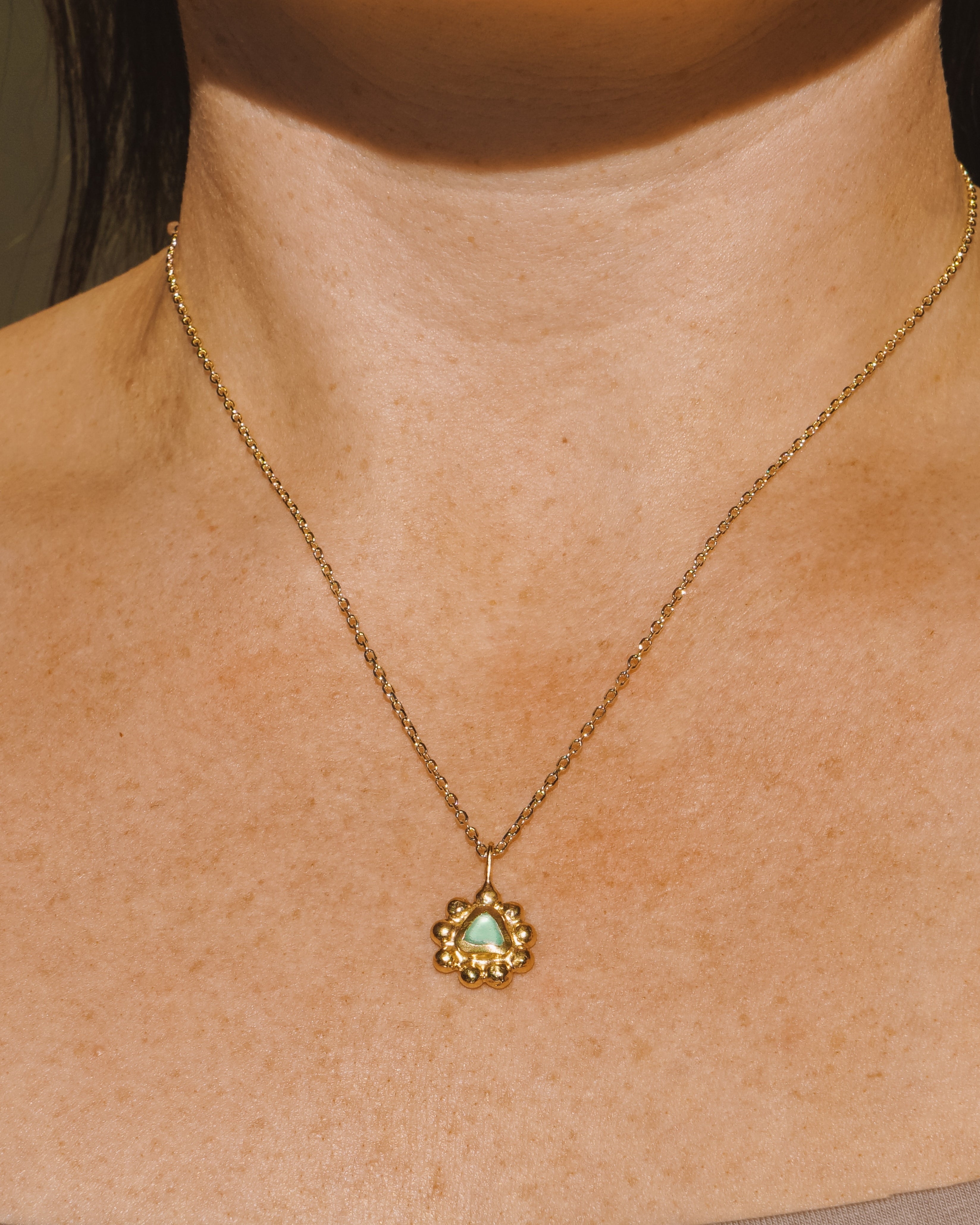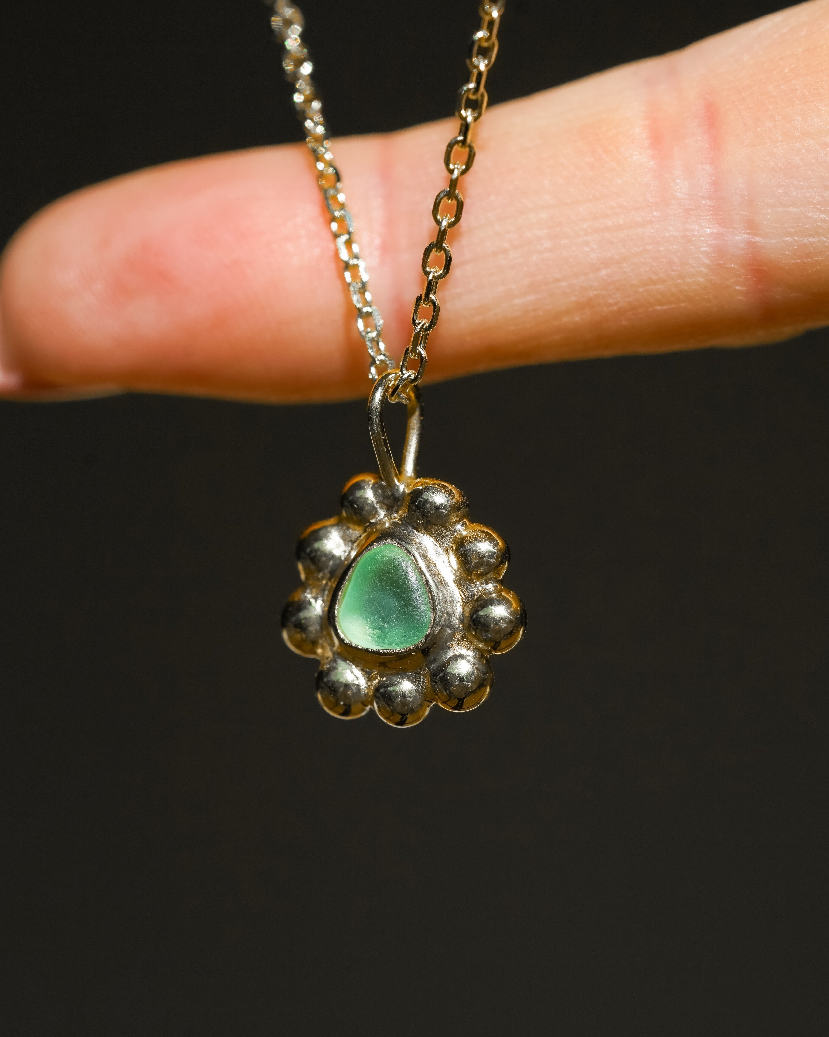 A beautifully minimalist necklace representing a sun. Each piece of sea glass has been washed and tumbled in the ocean giving them a smooth matte look, the most perfect design to add your everyday wear 🤍