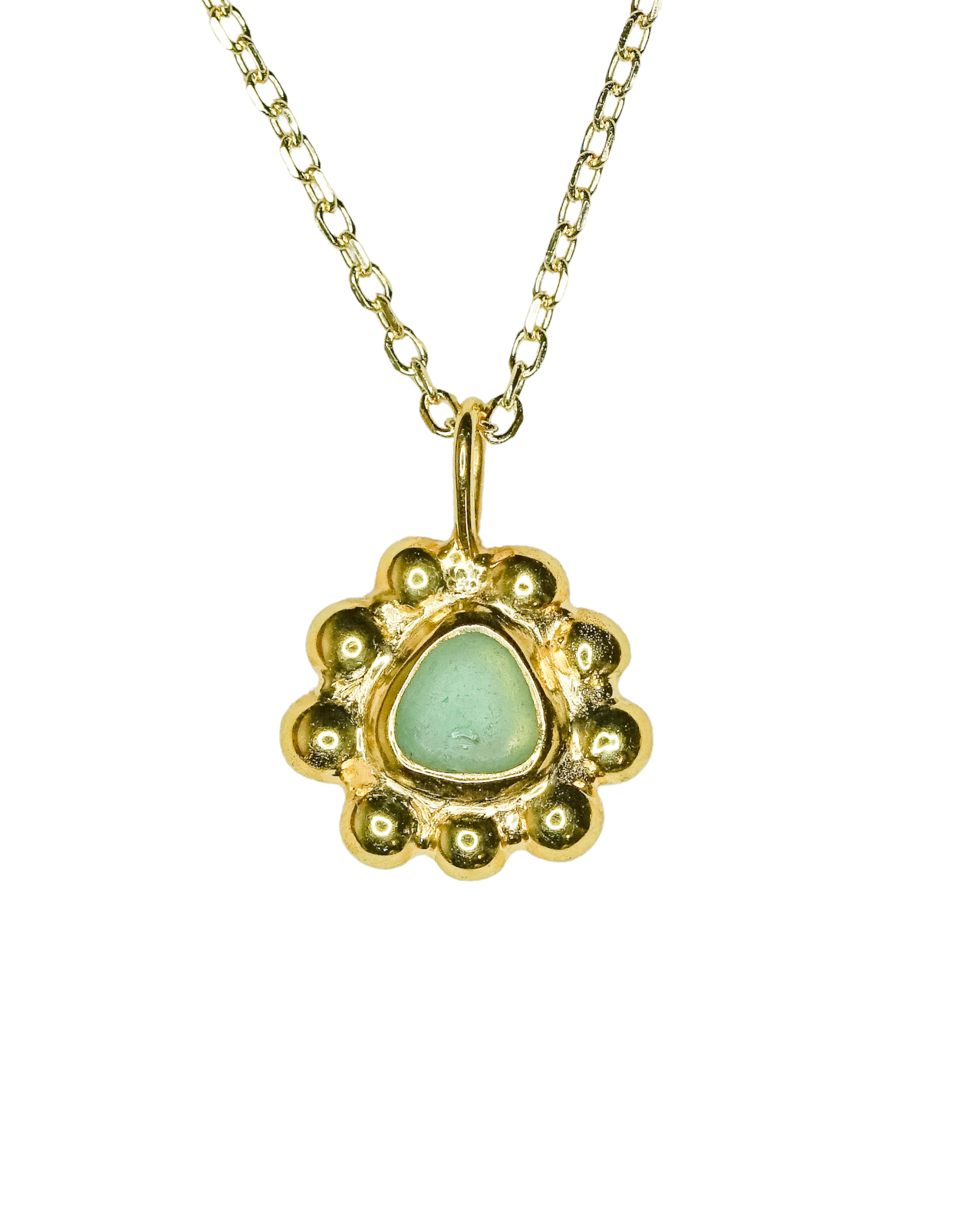 Green Sea Glass Necklace - Handmade from 925 Sterling Silver plated with a 10 micron thick and hard layer of 24K (Gold Vermeil)
