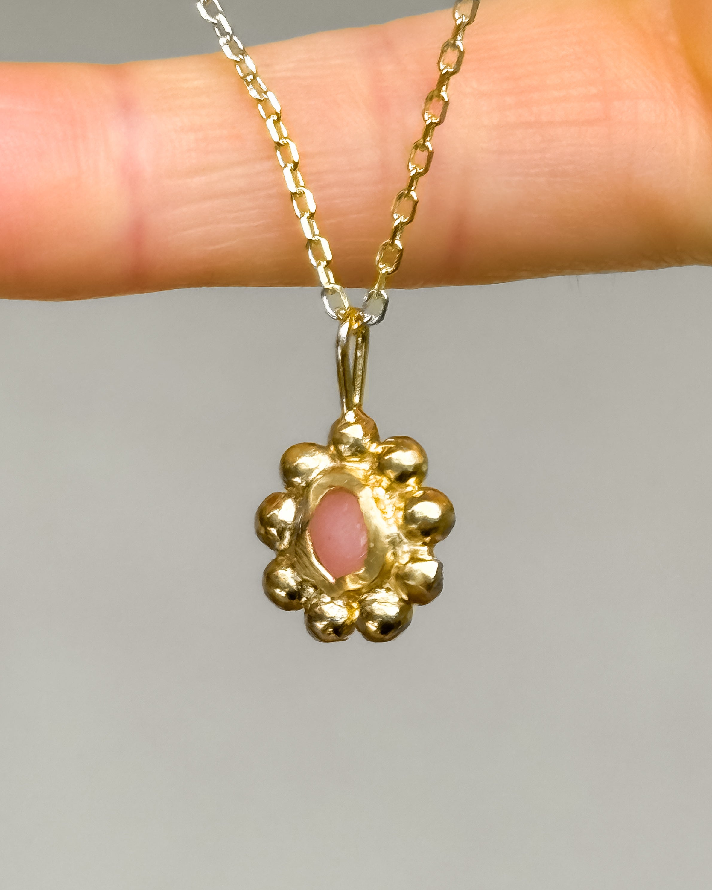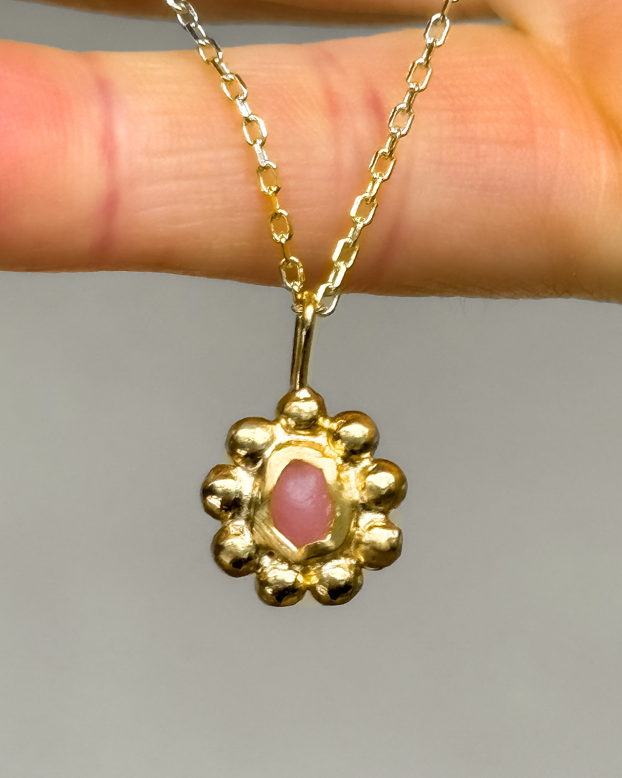Pink Sea Glass Necklace - Handmade from 925 Sterling Silver plated with a 10 micron thick and hard layer of 24K (Gold Vermeil)