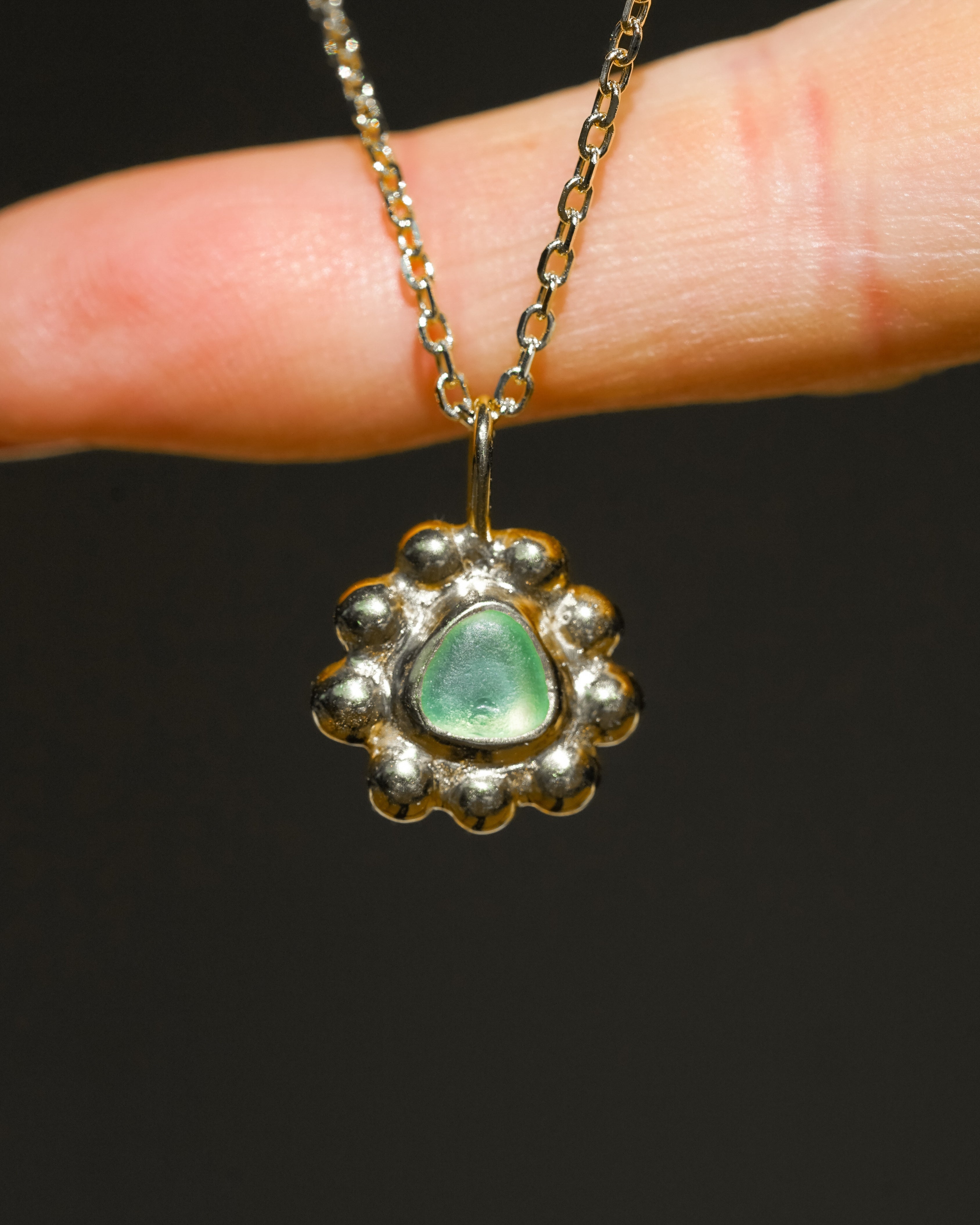 Sea Glass Jewellery (Open Back Designs) - Our open back sea glass pieces are made with an open setting to really show the true colour of the glass. This design also makes them safe to wear in water, allowing the natural beauty of the glass to shine through.