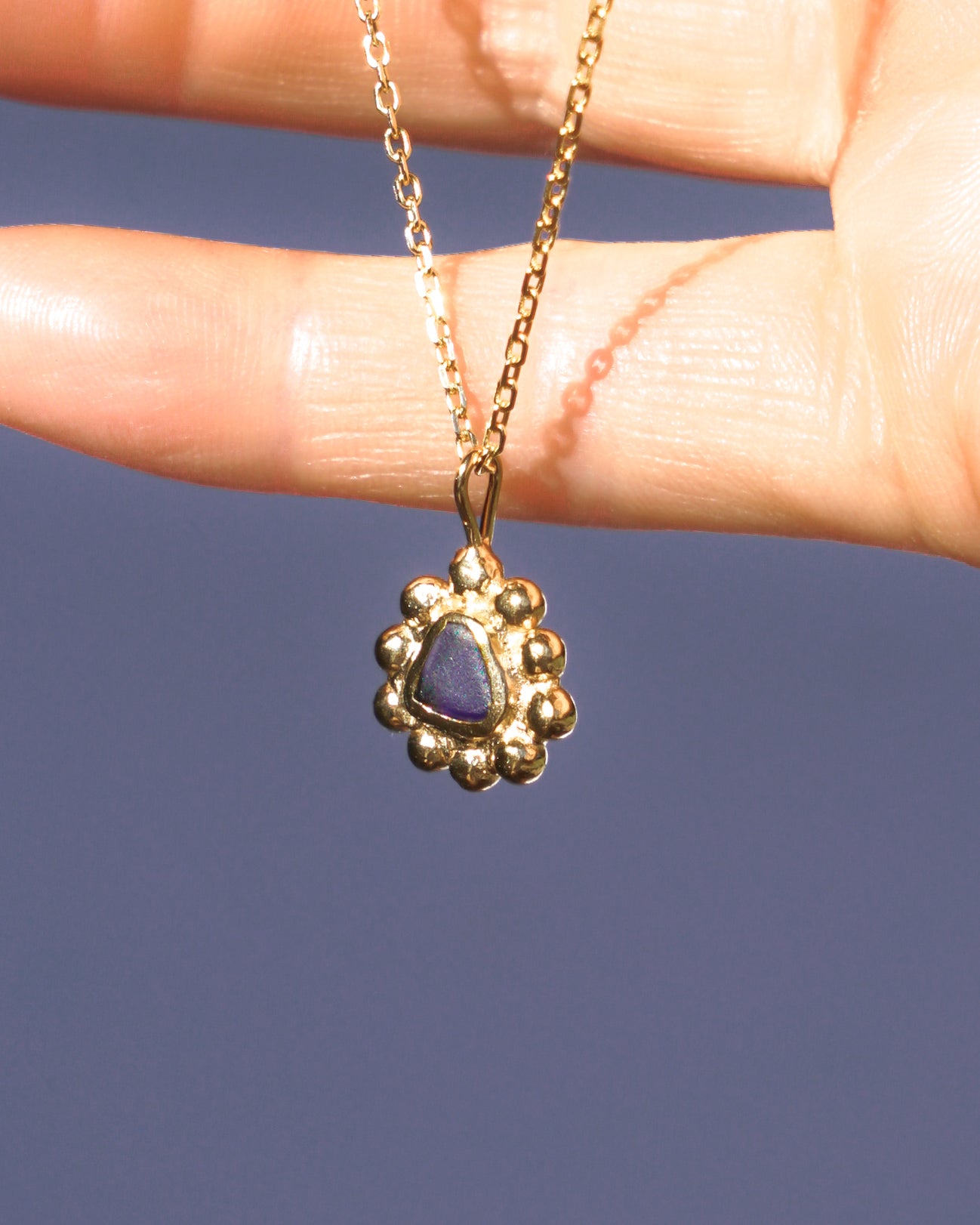 Our new open back design! This necklace has been designed with an open back which means the metal has been placed just around the glass, not behind (making them waterproof). This allows light to shine though the glass showing its true colours xx