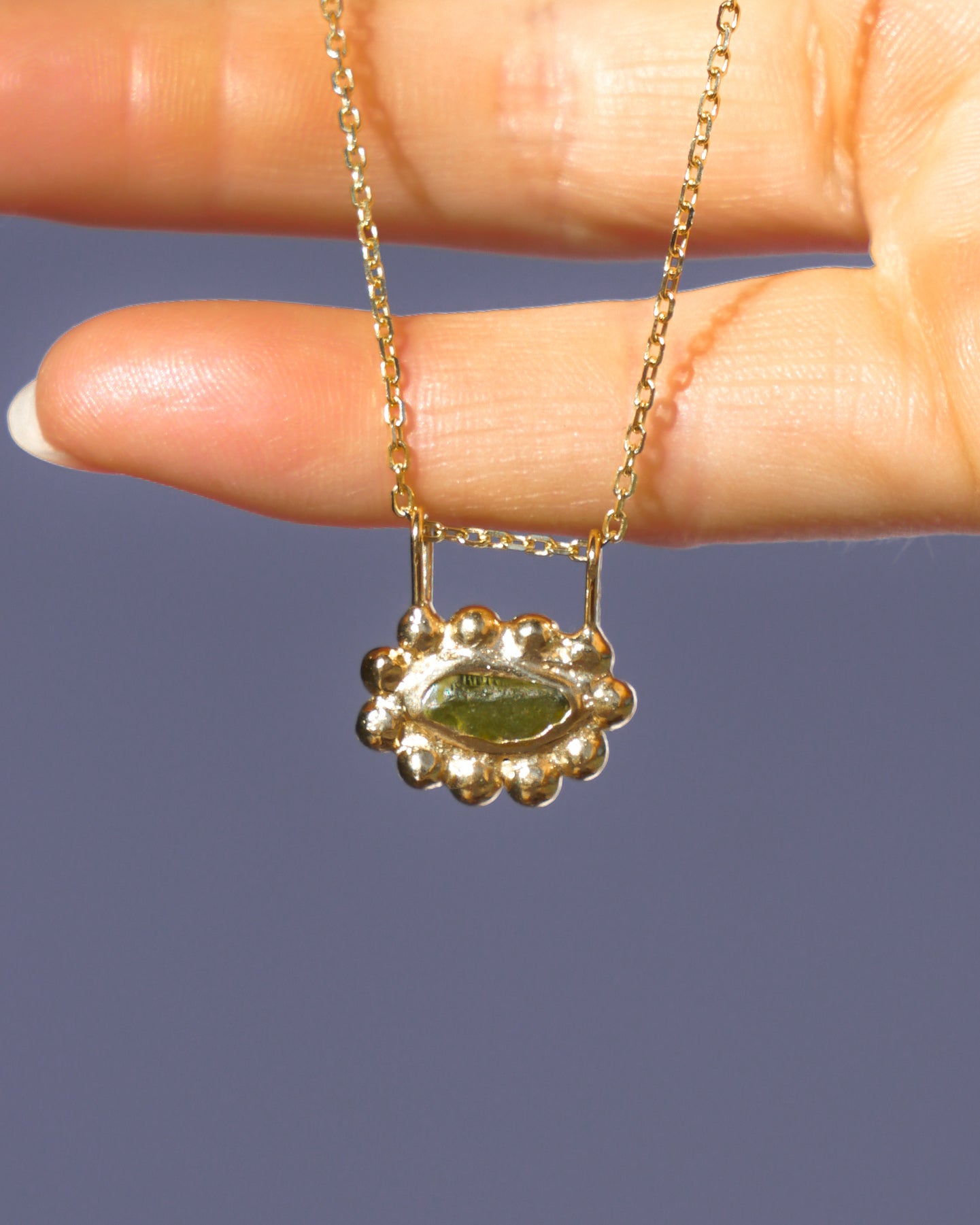 Our new open back design! This necklace has been designed with an open back which means the metal has been placed just around the glass, not behind (making them waterproof). This allows light to shine though the glass showing its true colours xx