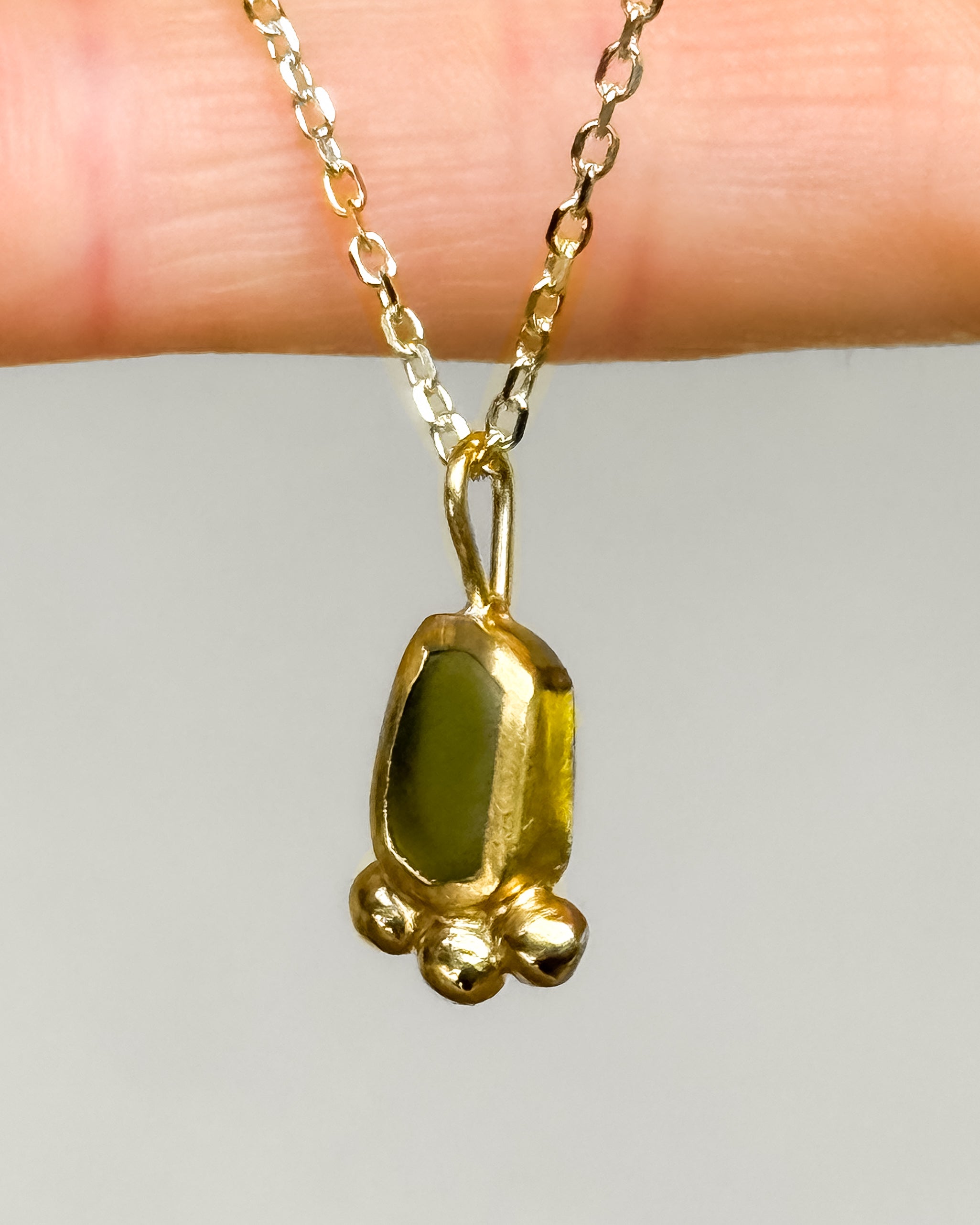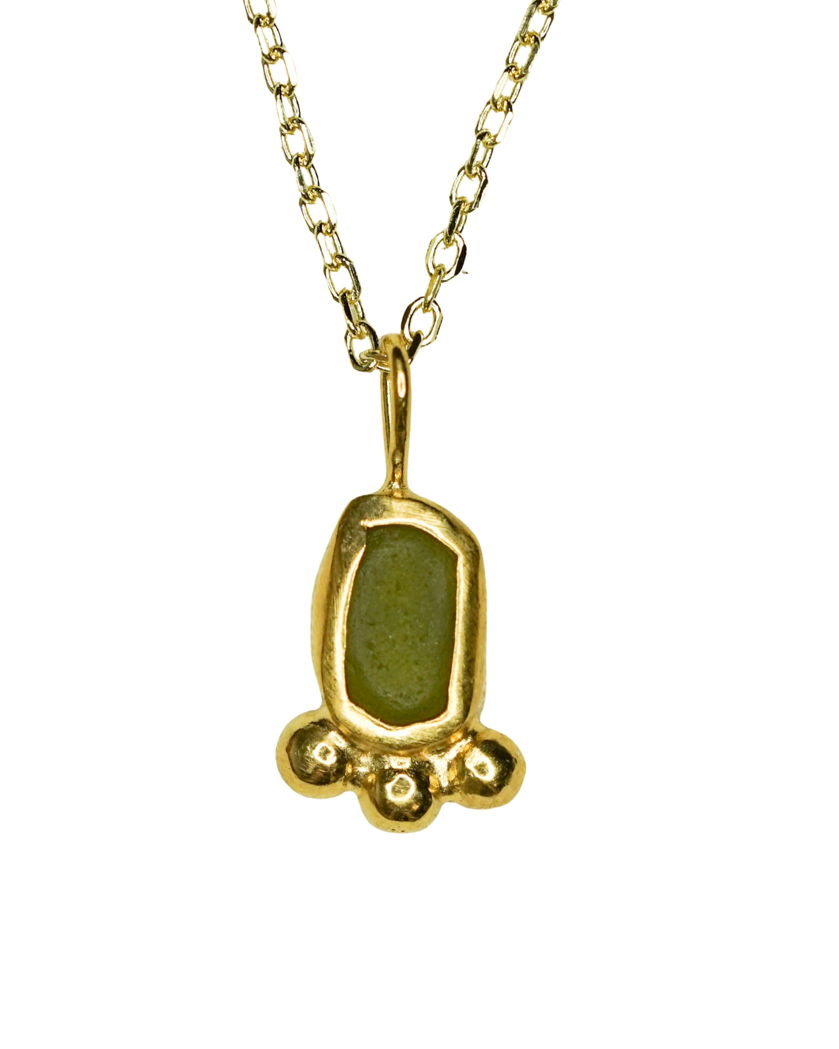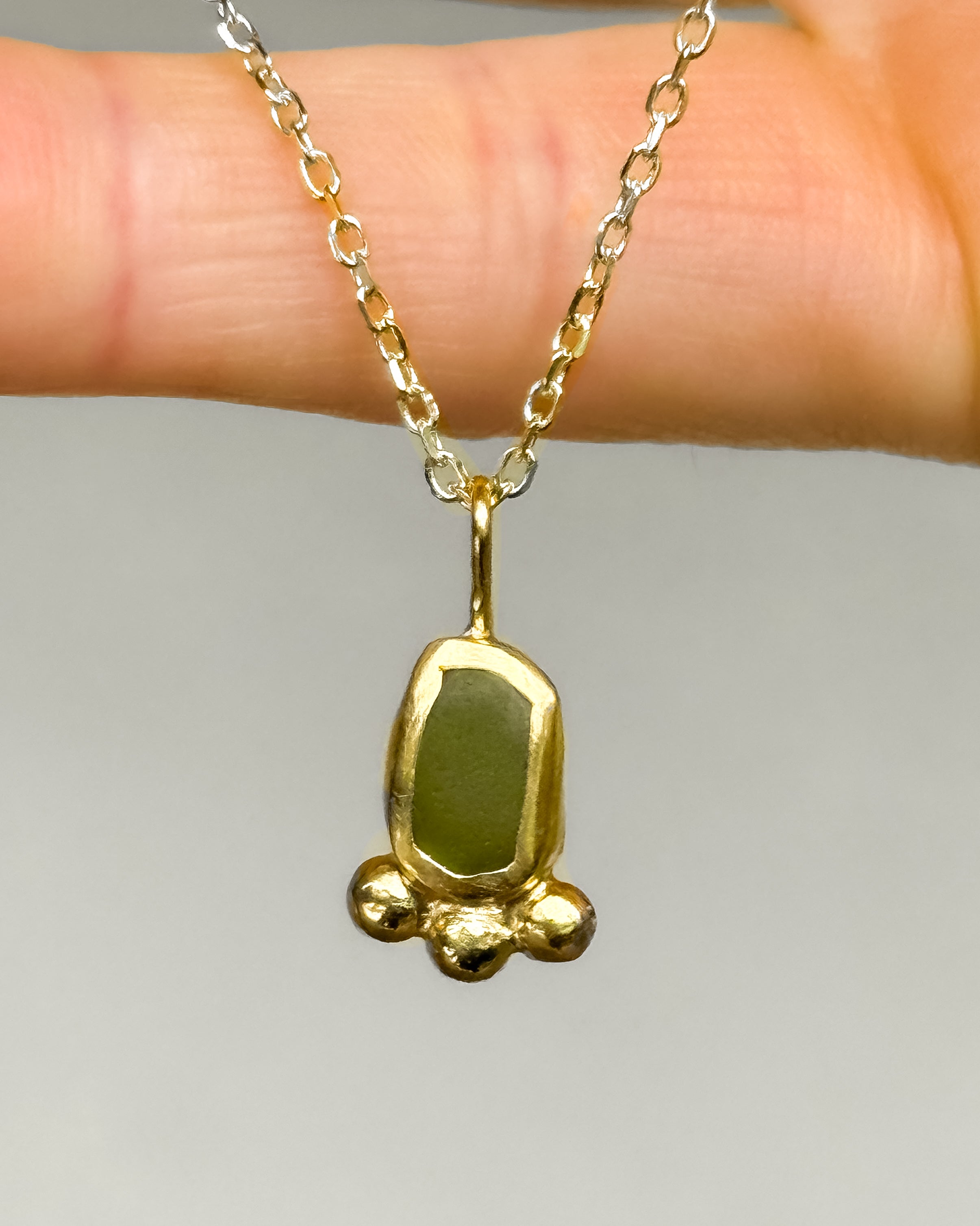 Green Sea Glass Necklace - Handmade from 925 Sterling Silver plated with a 10 micron thick and hard layer of 24K (Gold Vermeil)