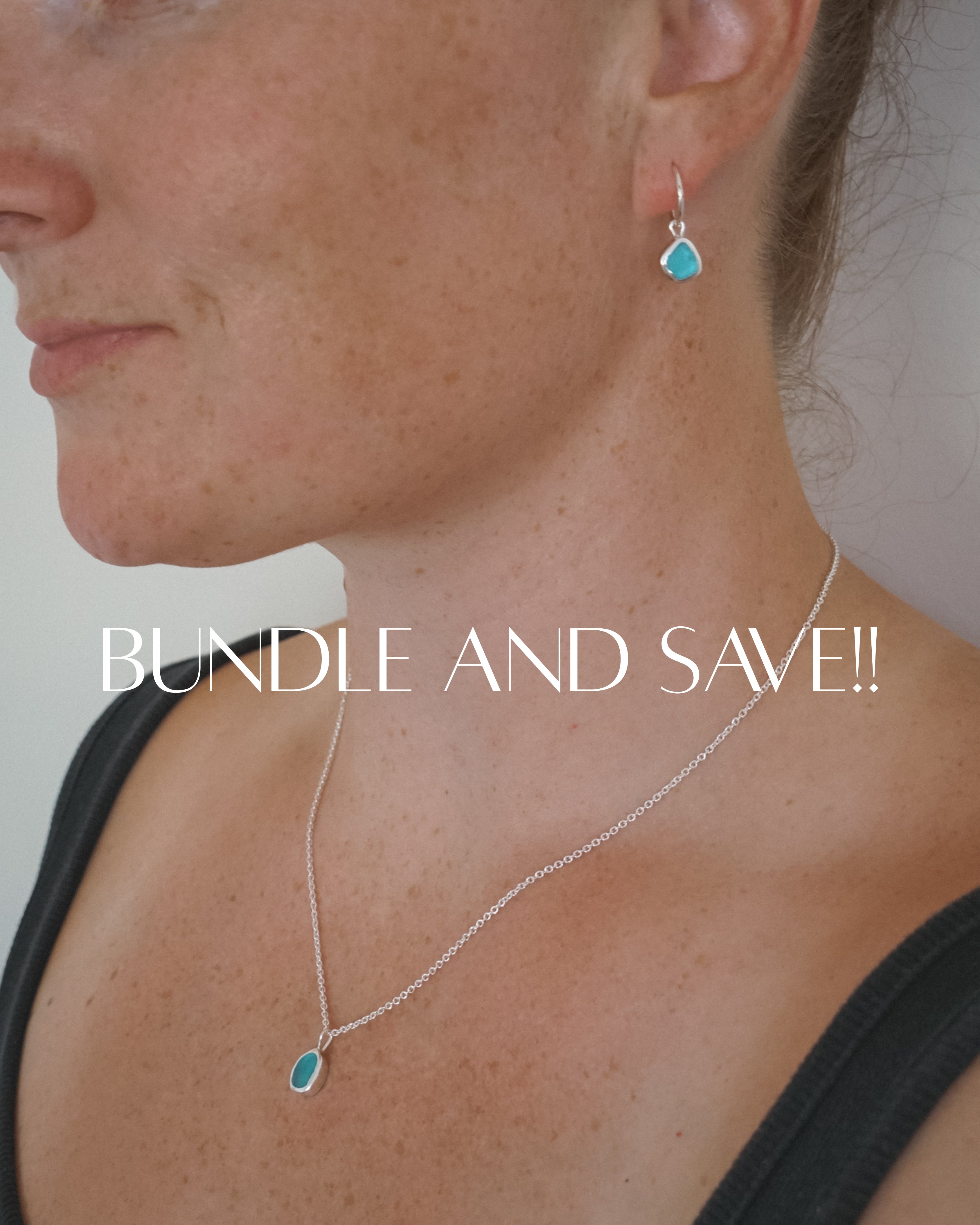 The Heirloom Set is a thoughtfully curated matching set featuring a one-of-a-kind sea glass necklace and coordinating earrings. Each piece has been shaped by the ocean over time, then carefully handcrafted into jewellery designed to be worn, loved, and kept.
