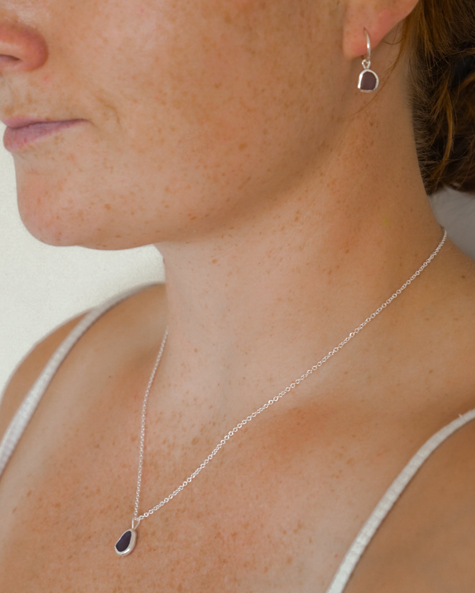 The Heirloom Set is a thoughtfully curated matching set featuring a one-of-a-kind sea glass necklace and coordinating earrings. Each piece has been shaped by the ocean over time, then carefully handcrafted into jewellery designed to be worn, loved, and kept.