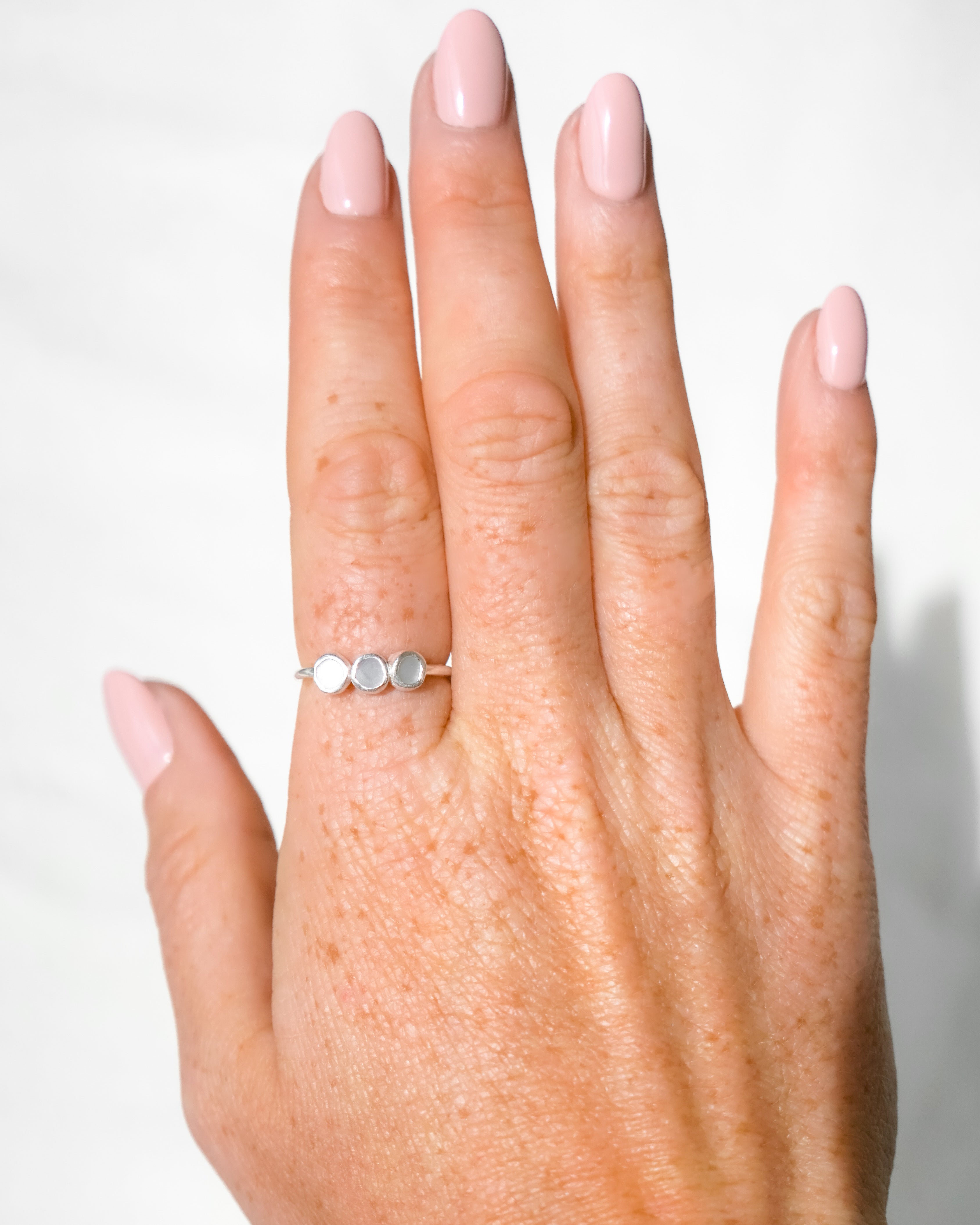 This dainty pearl ring features three petite fresh water pearls set on a slim sterling silver band. A timeless and minimal design, perfect for stacking or wearing on its own for effortless elegance. Perfect to add to your everyday wear š¤