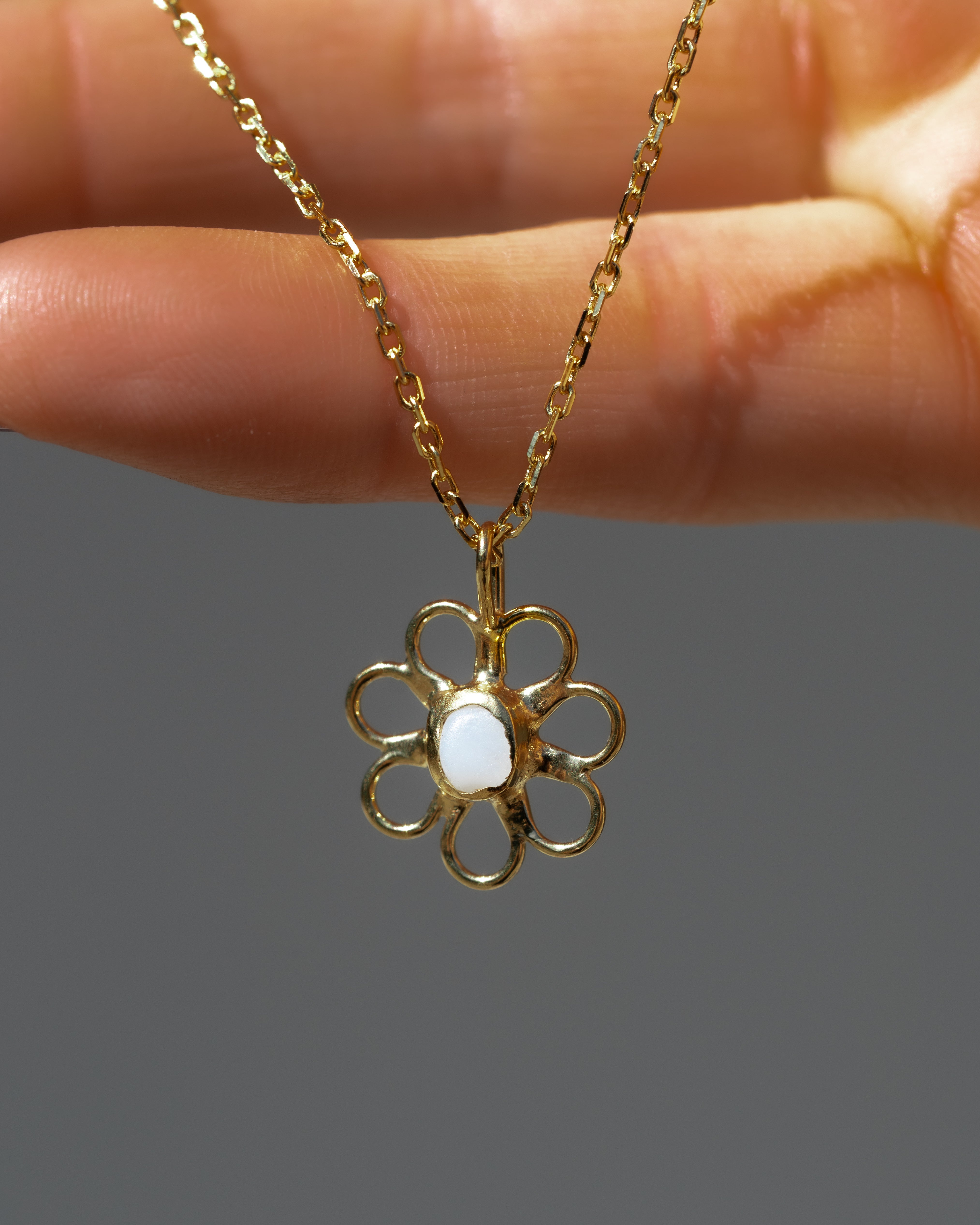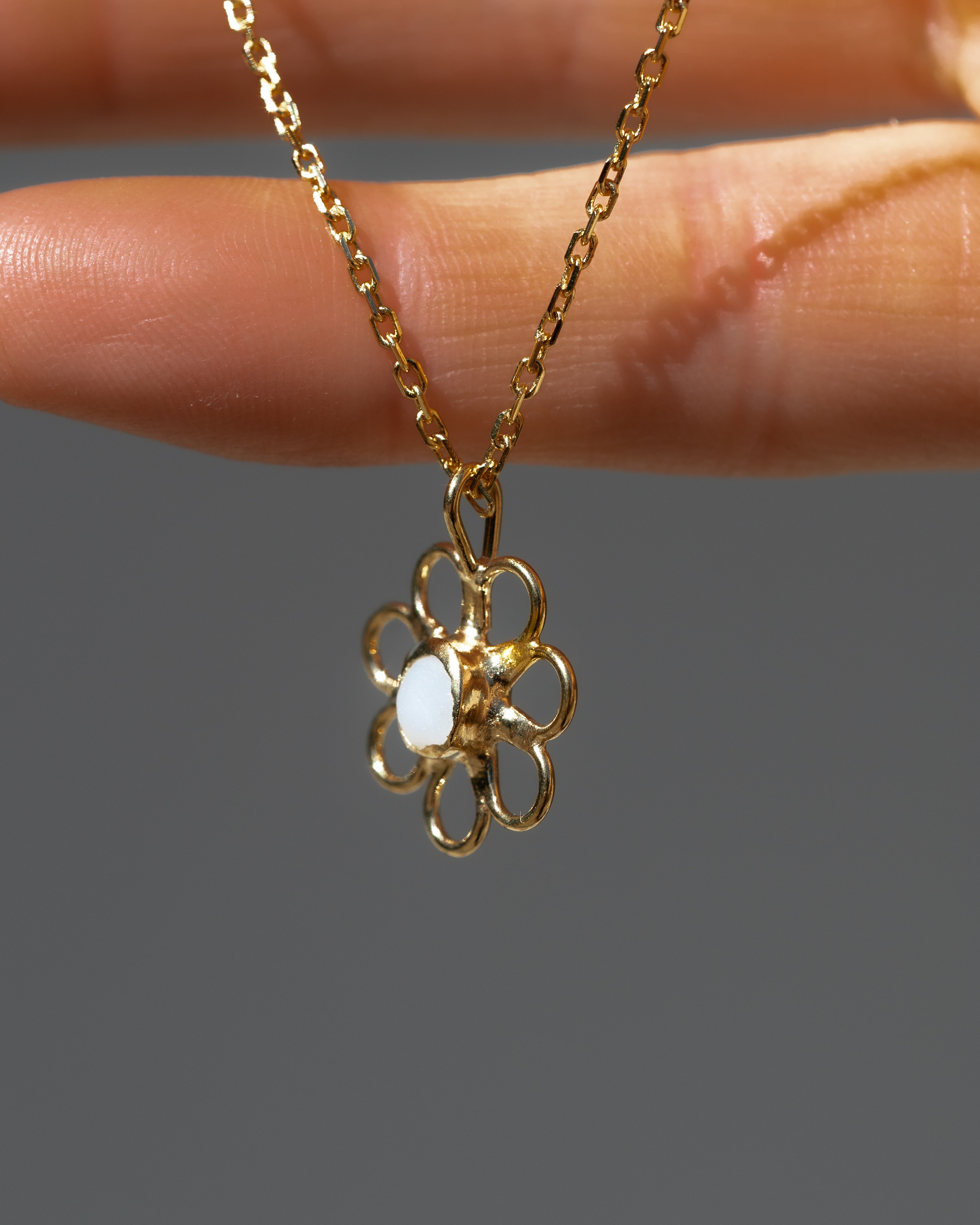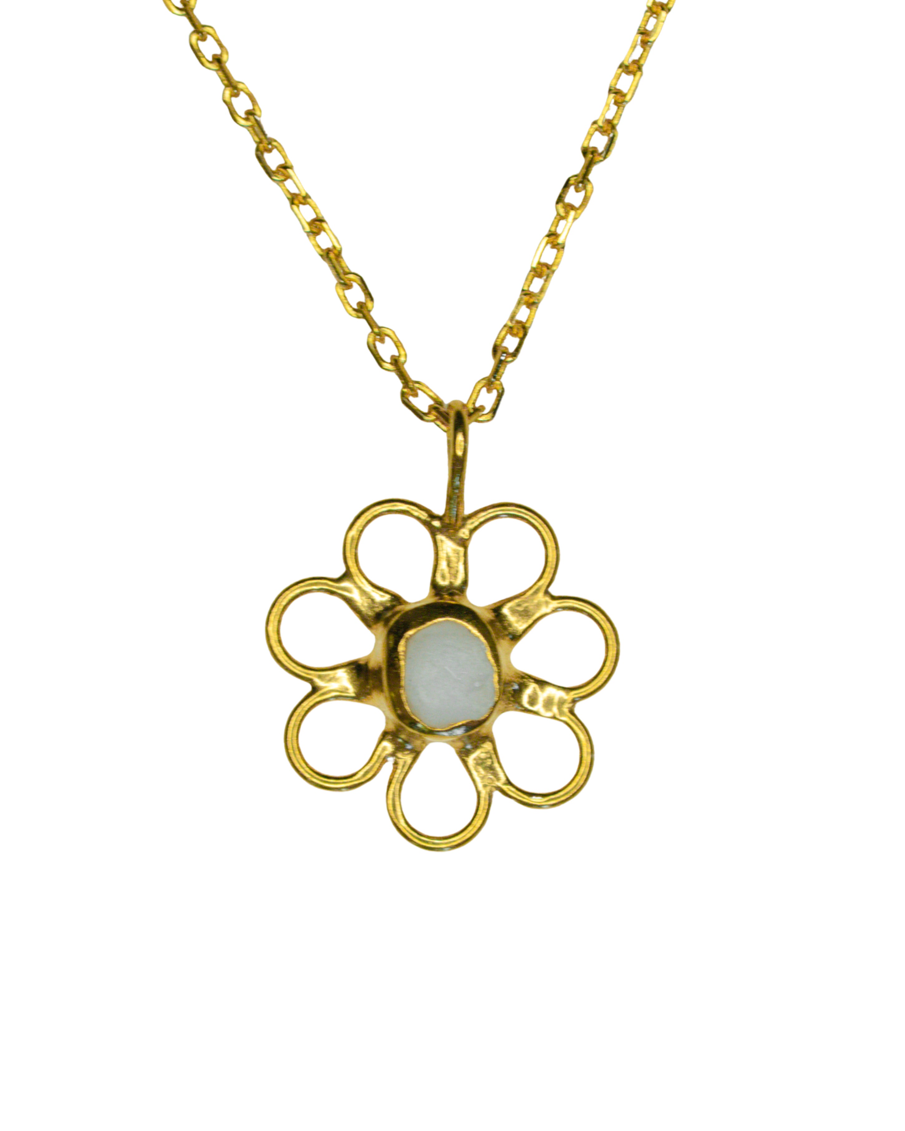 White Sea Glass Flower Necklace - Gold Vermeil