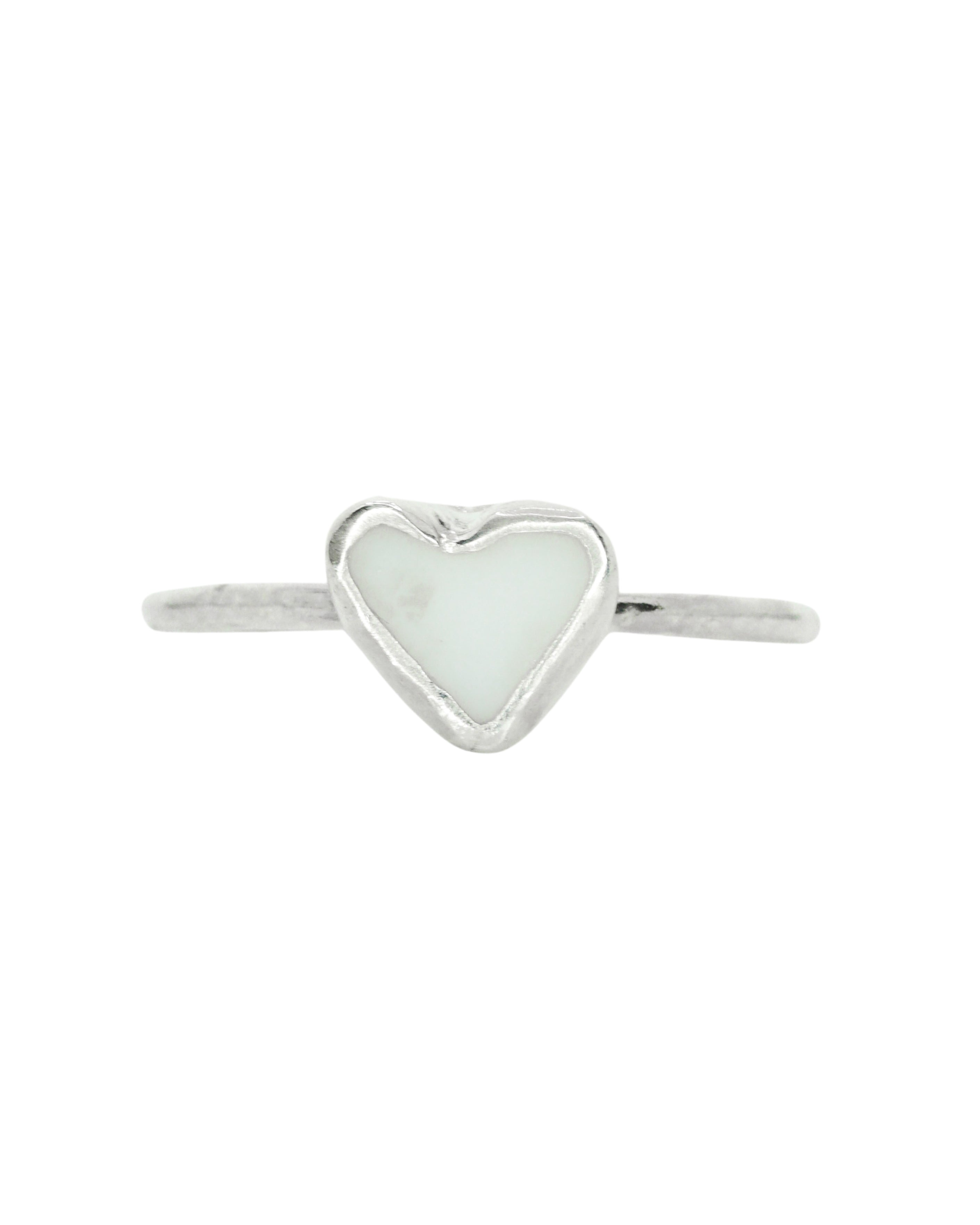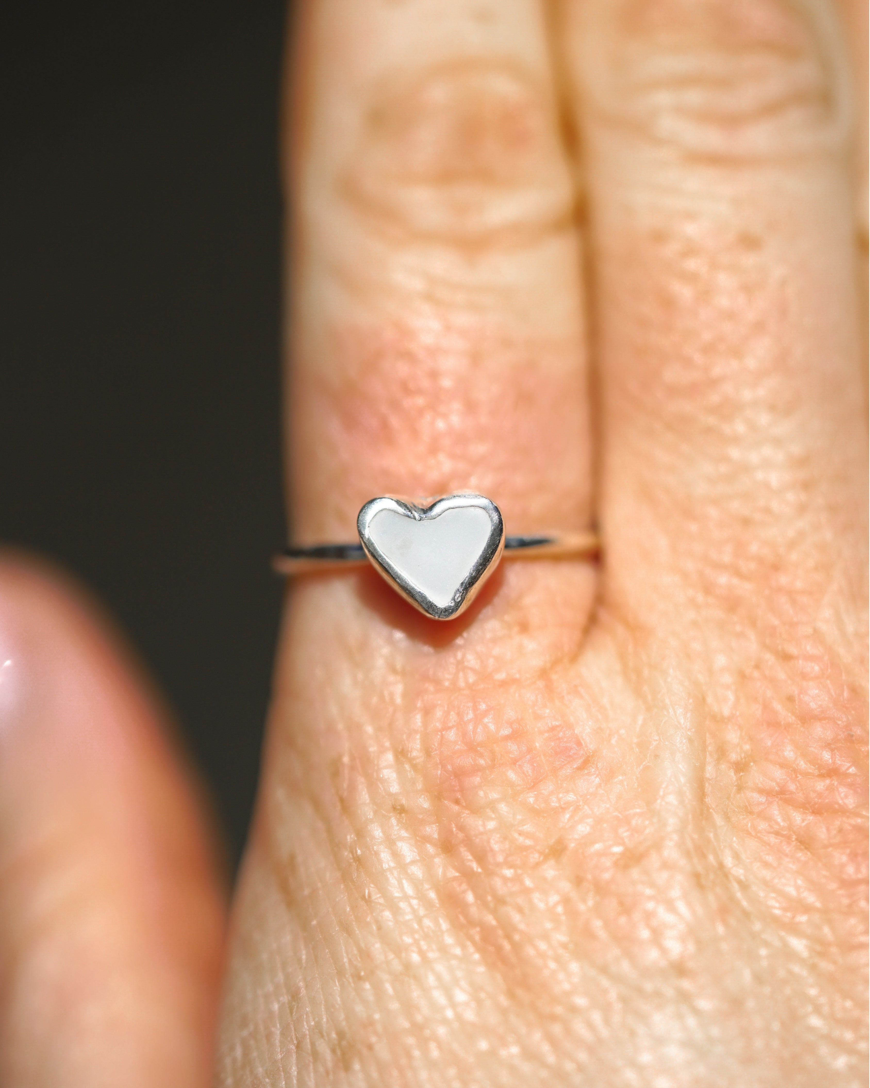 Sea Glass Heart Ring - Handmade from 925 Sterling Silver