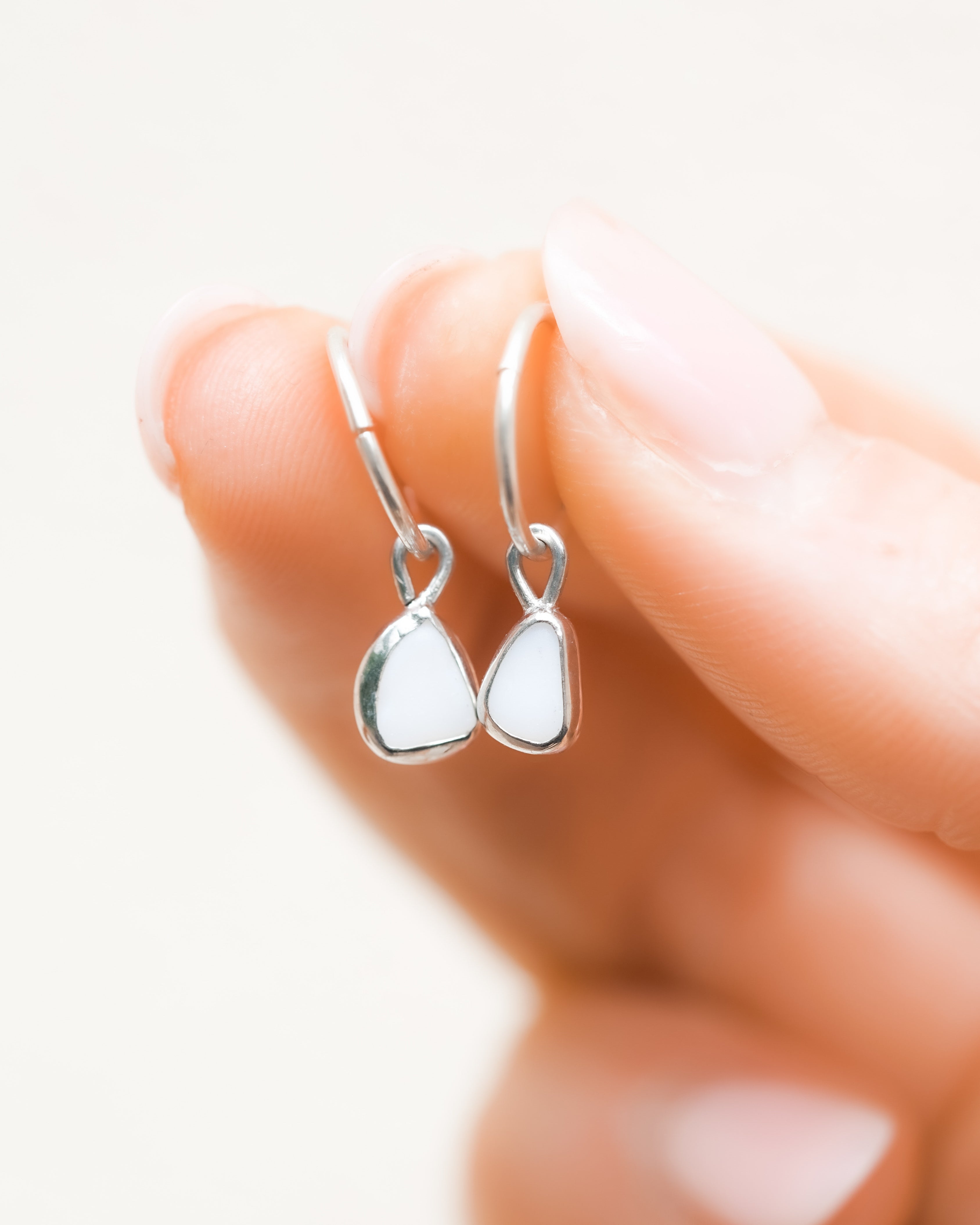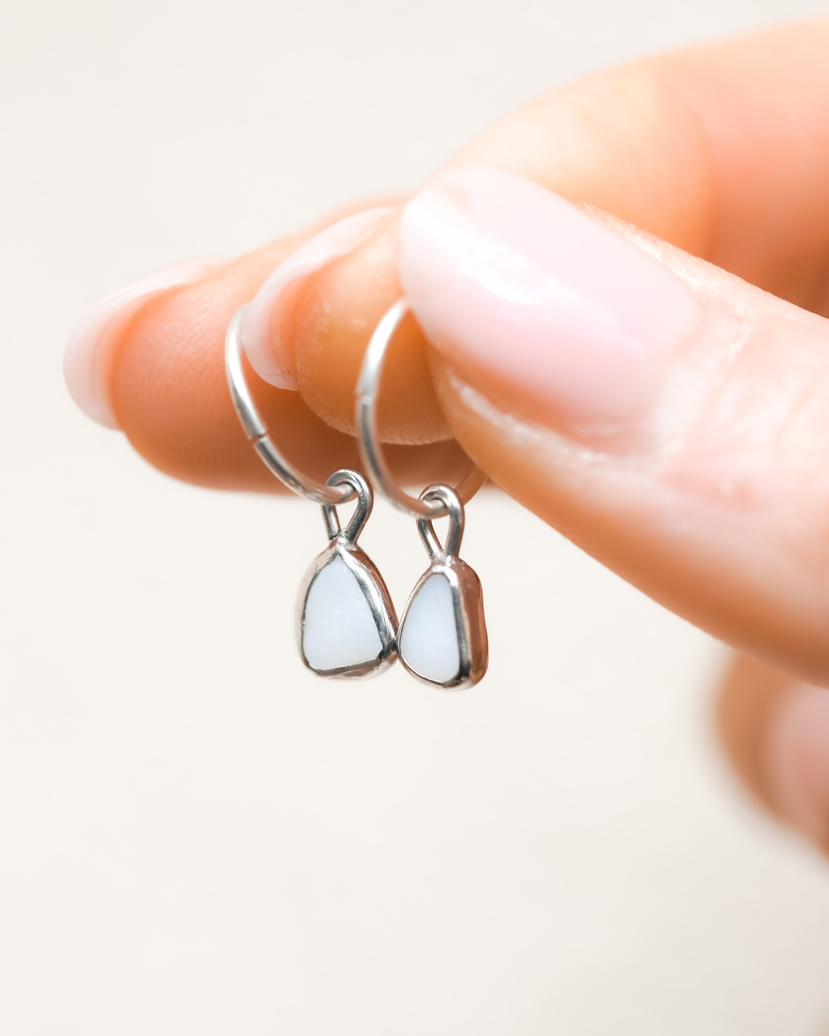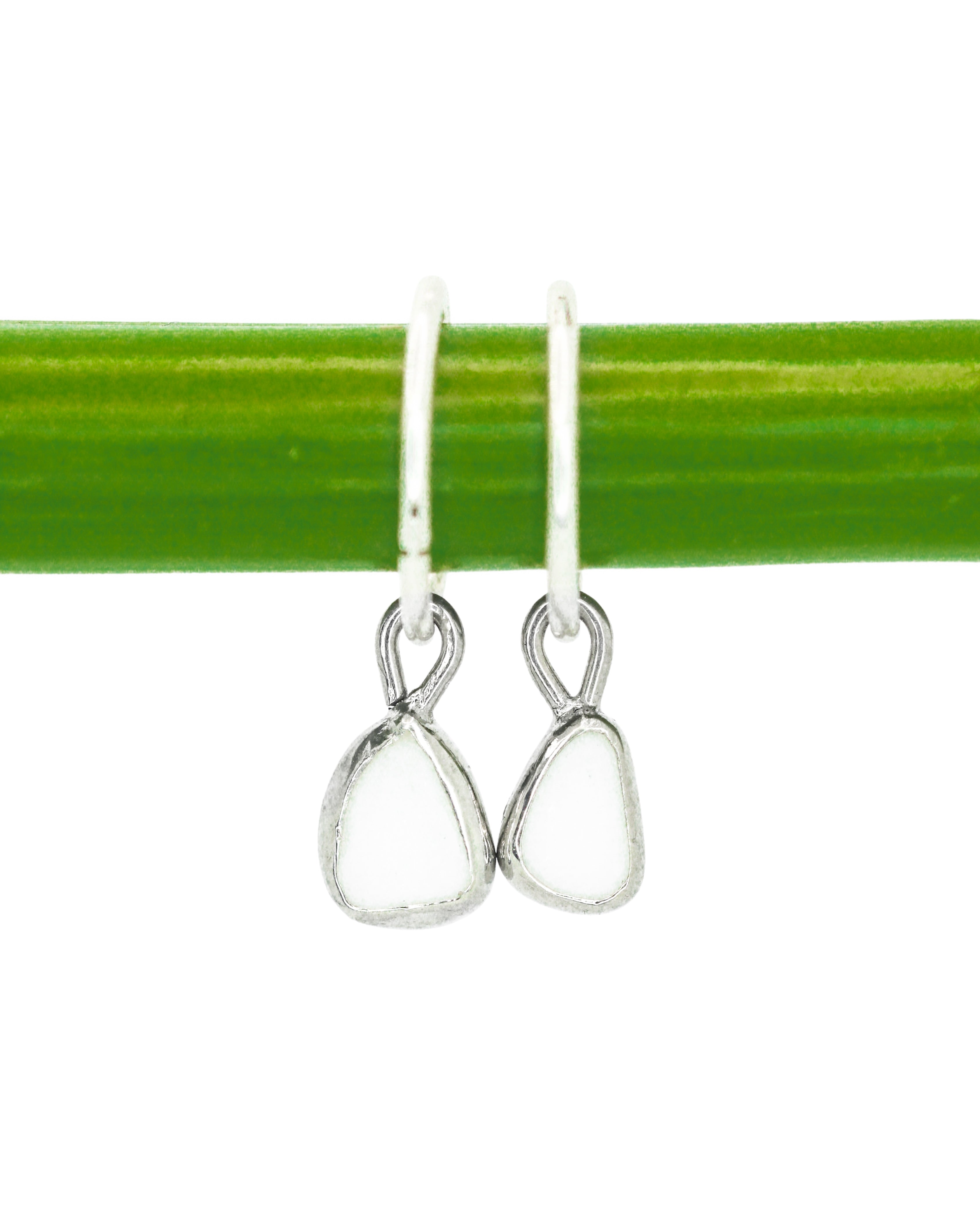 White Sea Glass Hoops - Handmade from 925 sterling silver
