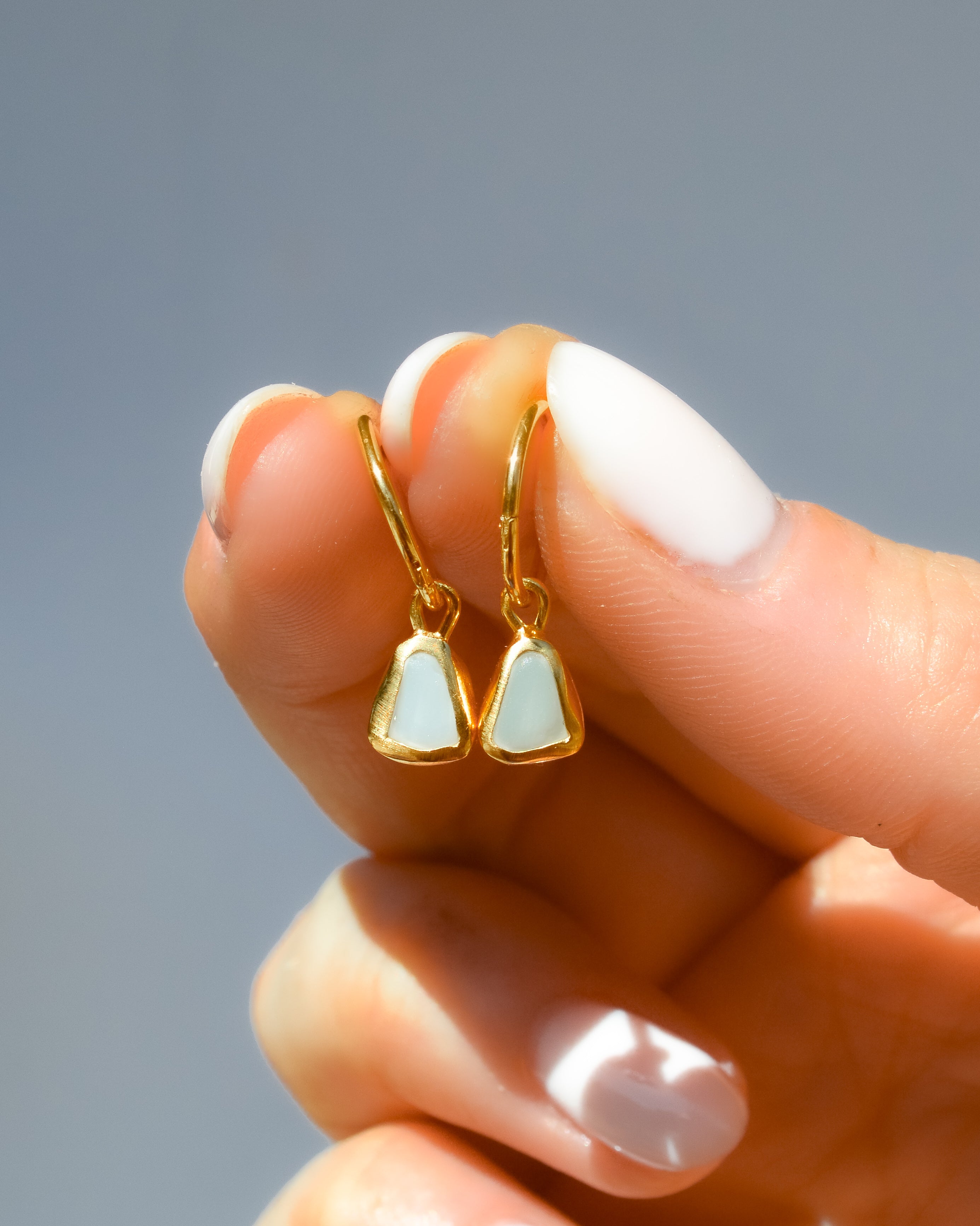 Each piece of sea glass has been washed and tumbled in the ocean giving them a smooth matte look. Perfect to add a little extra to your everyday look 🤍