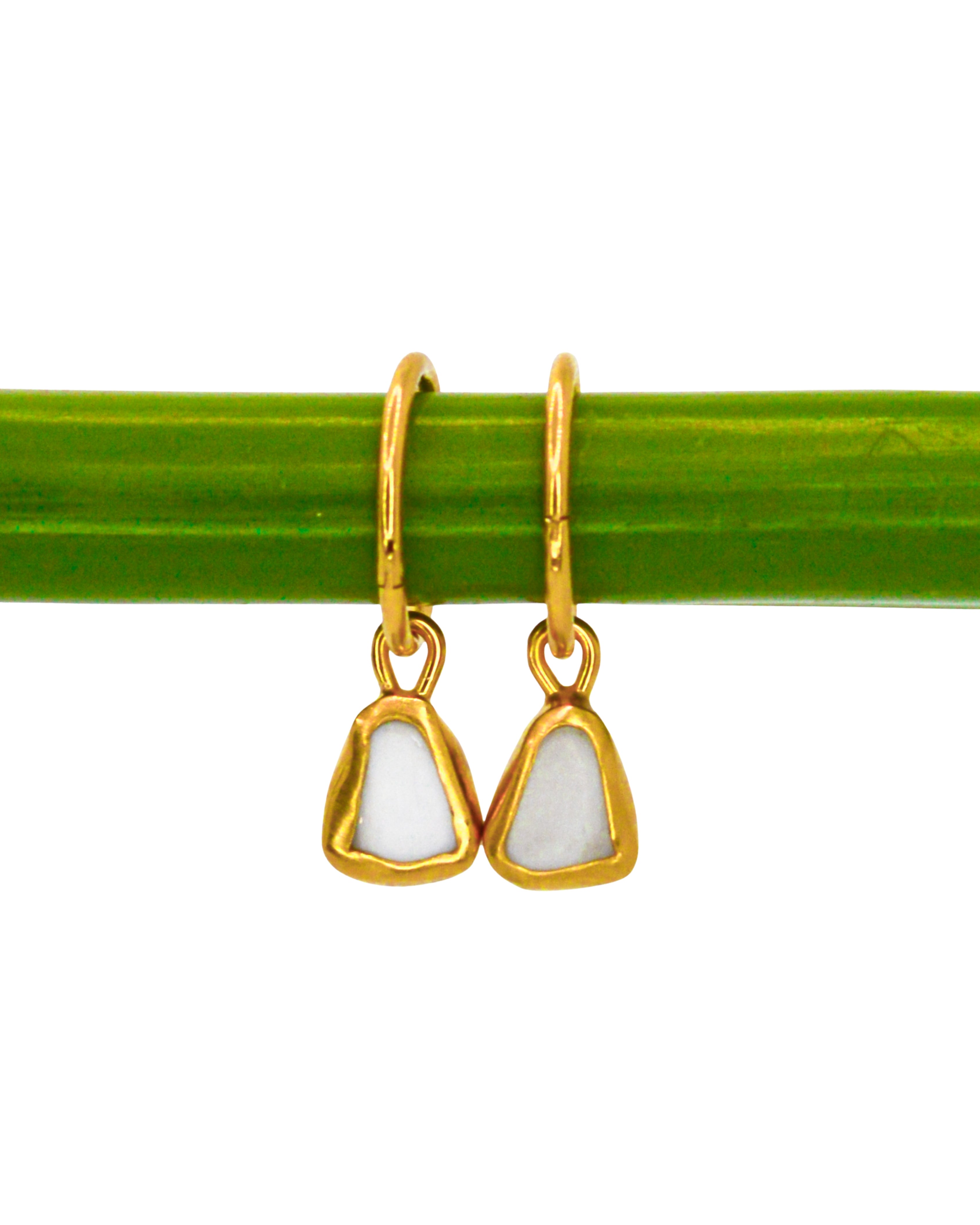 White Sea Glass Hoops - Handmade from 925 Sterling Silver plated with a 10 micron thick and hard layer of 24K (Gold Vermeil)