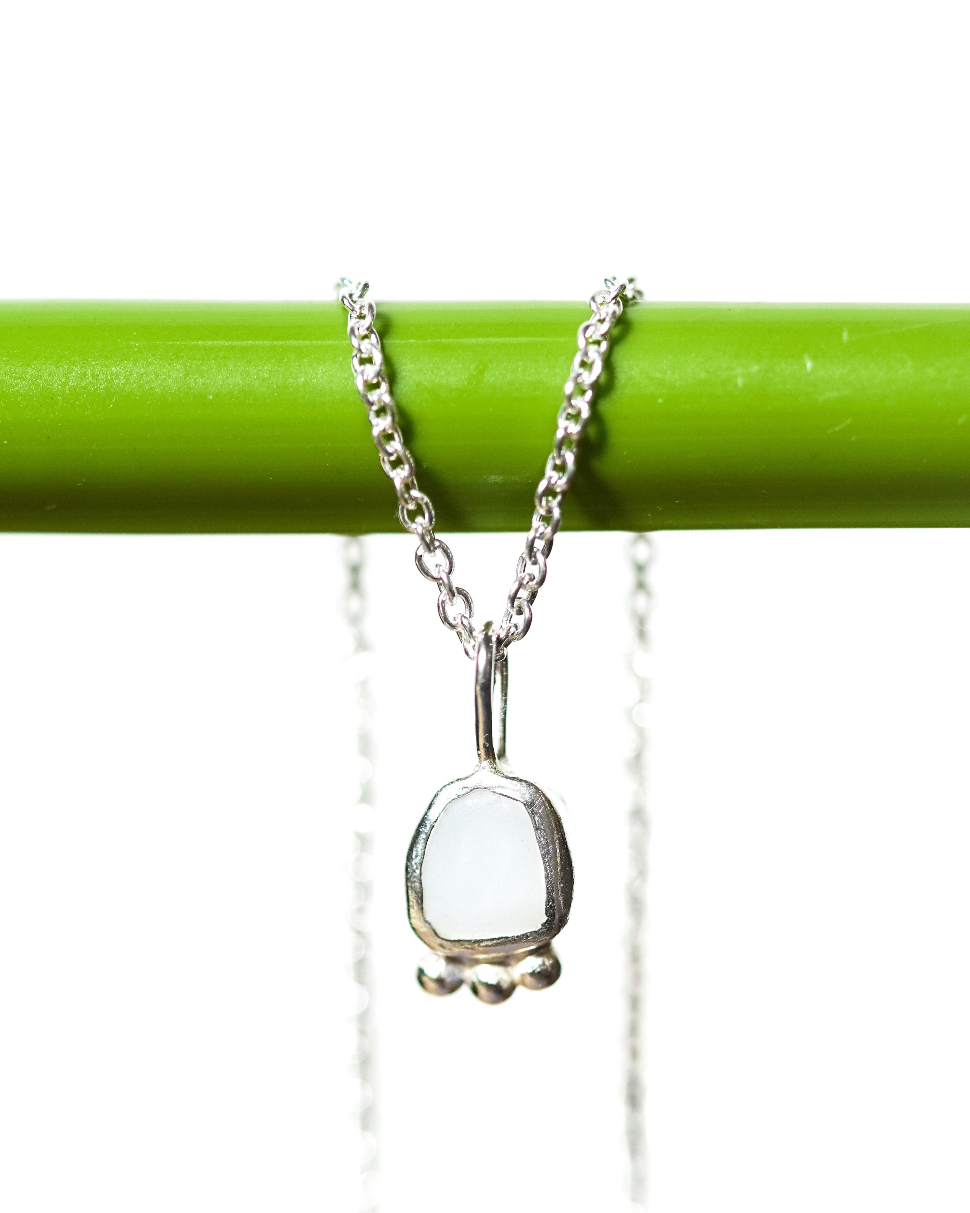 White Sea Glass Necklace - Handmade from 925 sterling silver