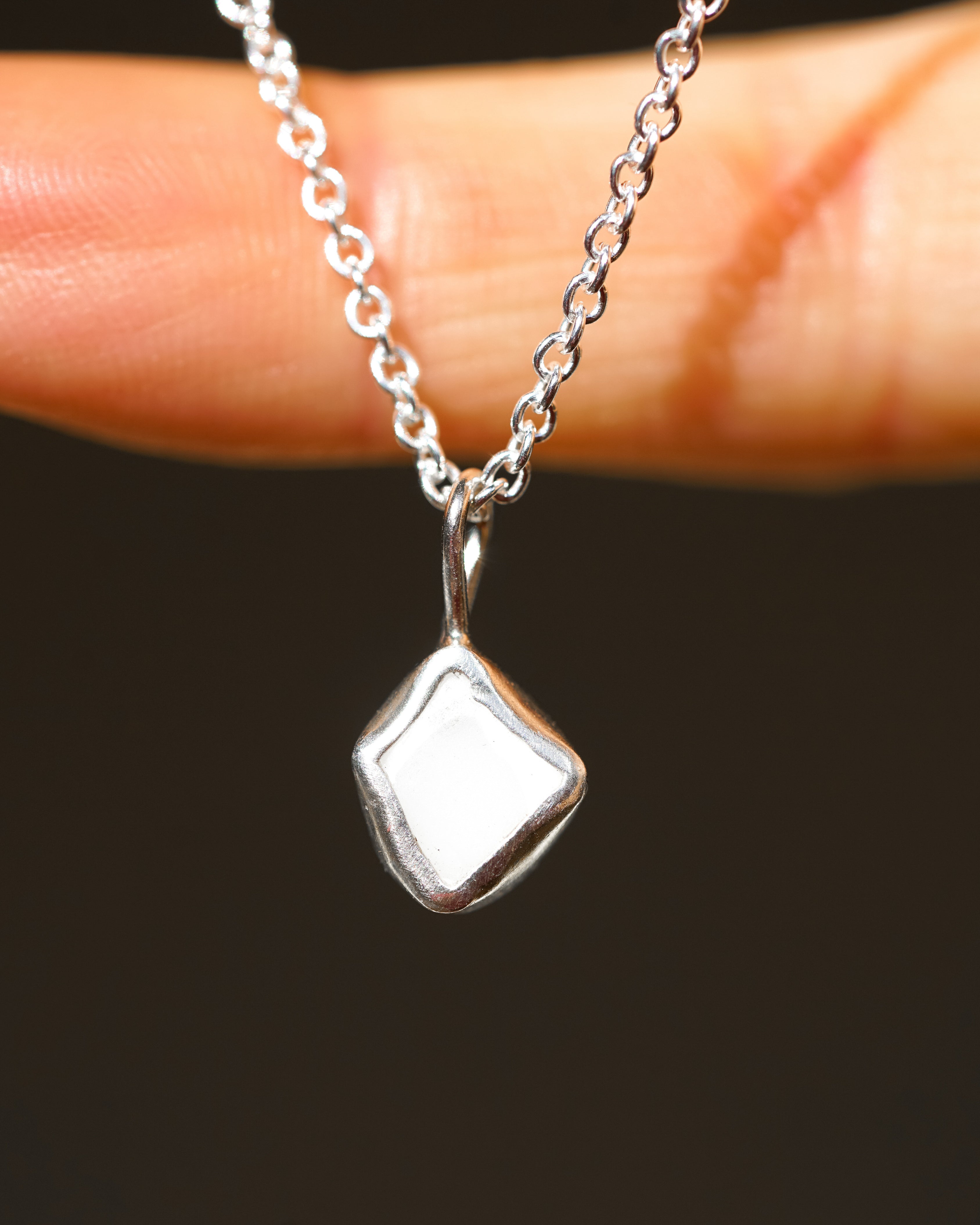 White Sea Glass Necklace - Handmade from 925 sterling silver