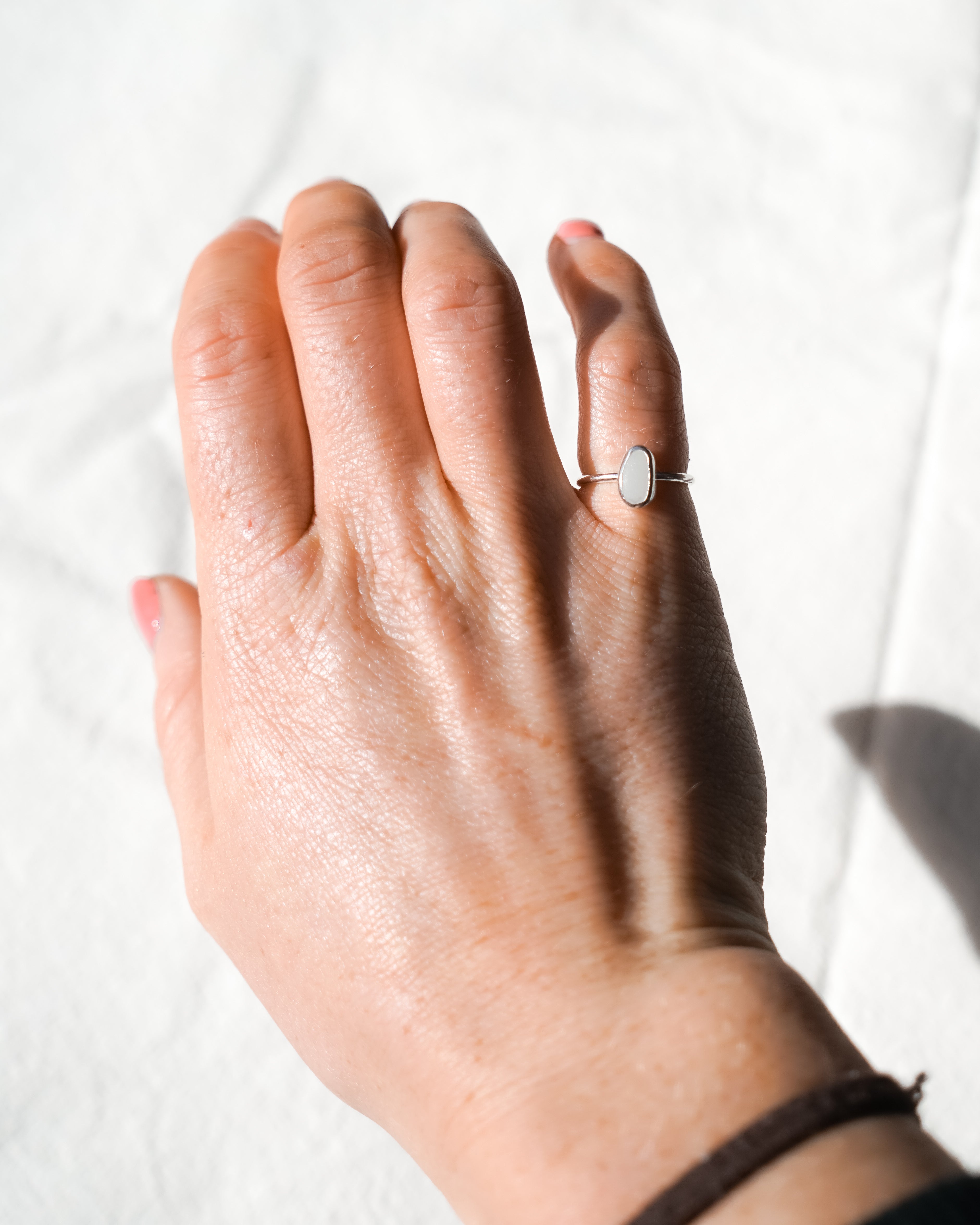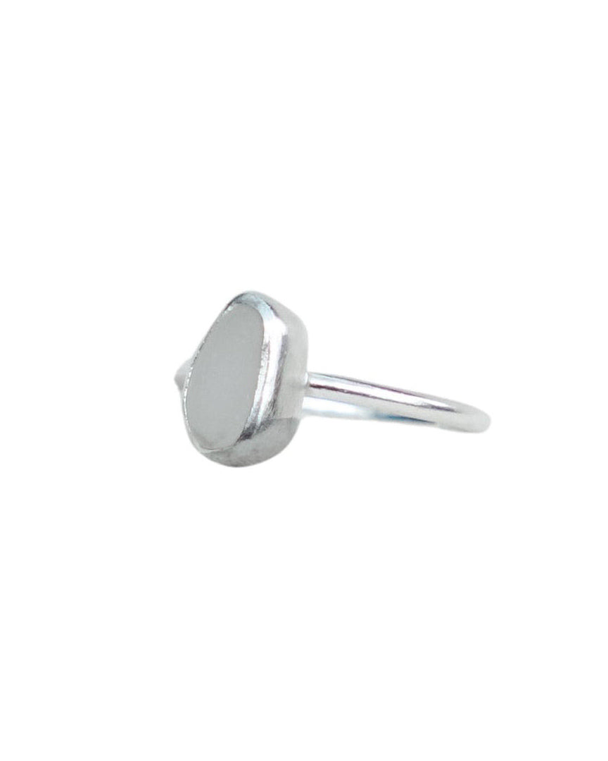 White Sea Glass Ring - Handmade from 925 Sterling Silver