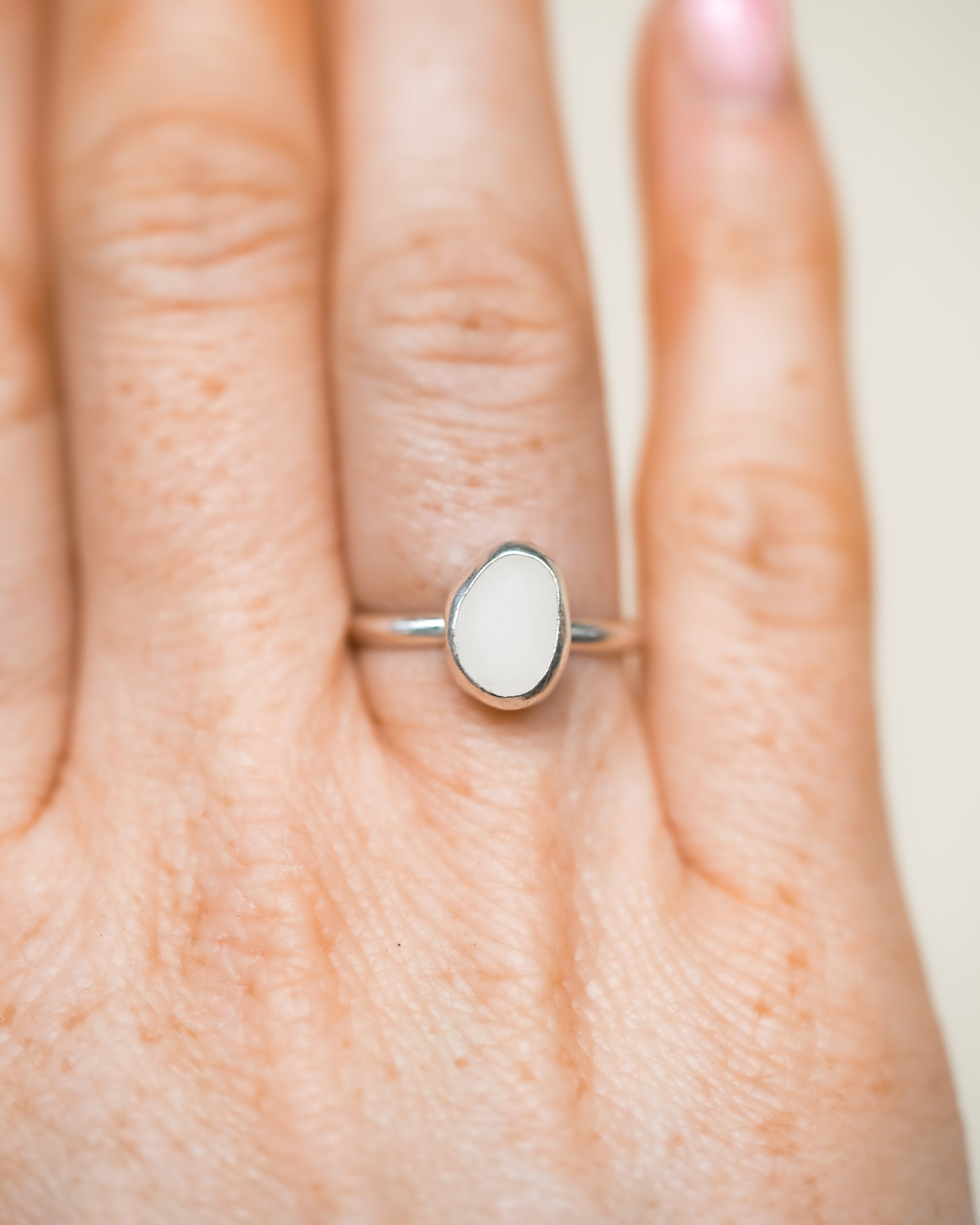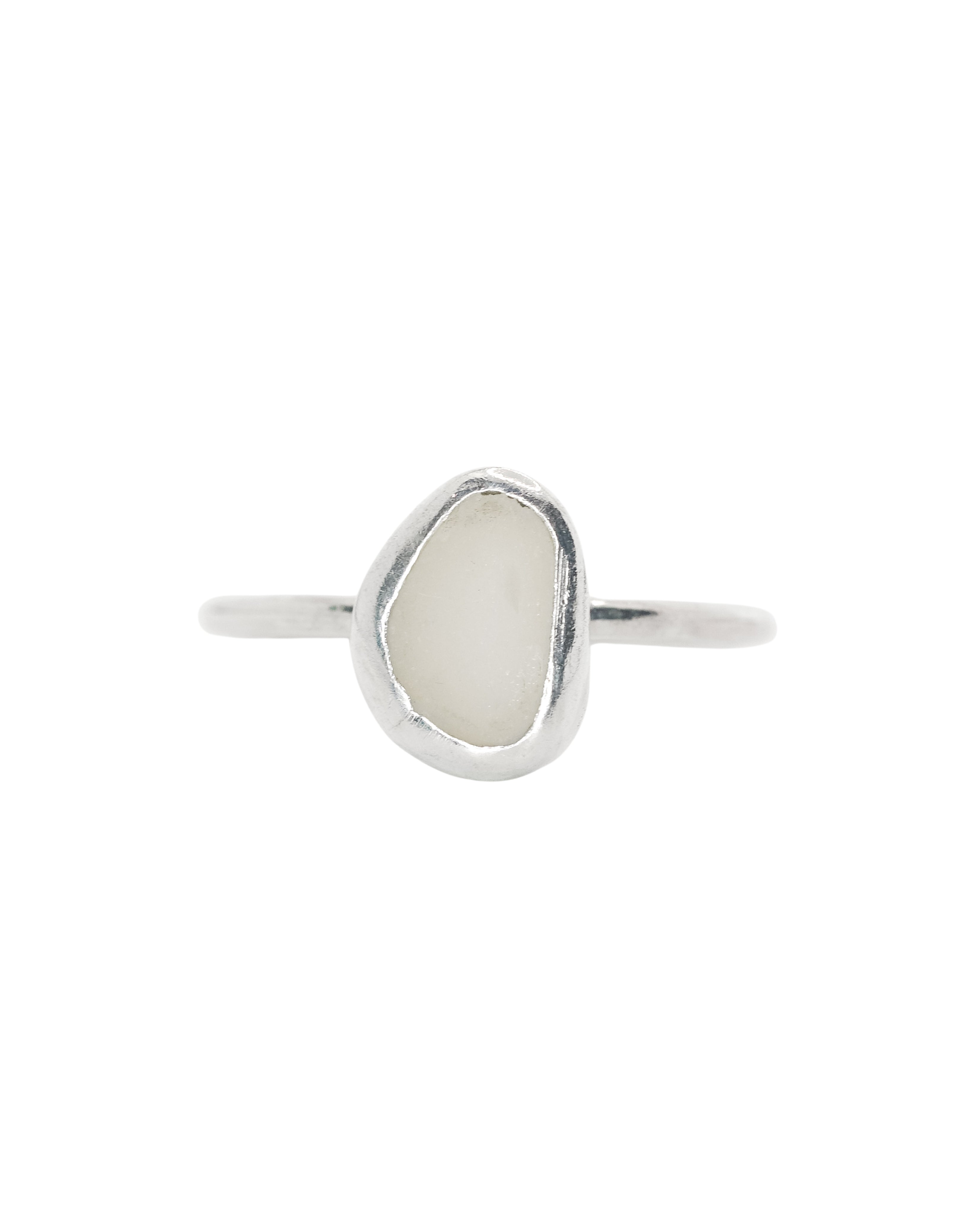 White Sea Glass Ring - Handmade from 925 Sterling Silver