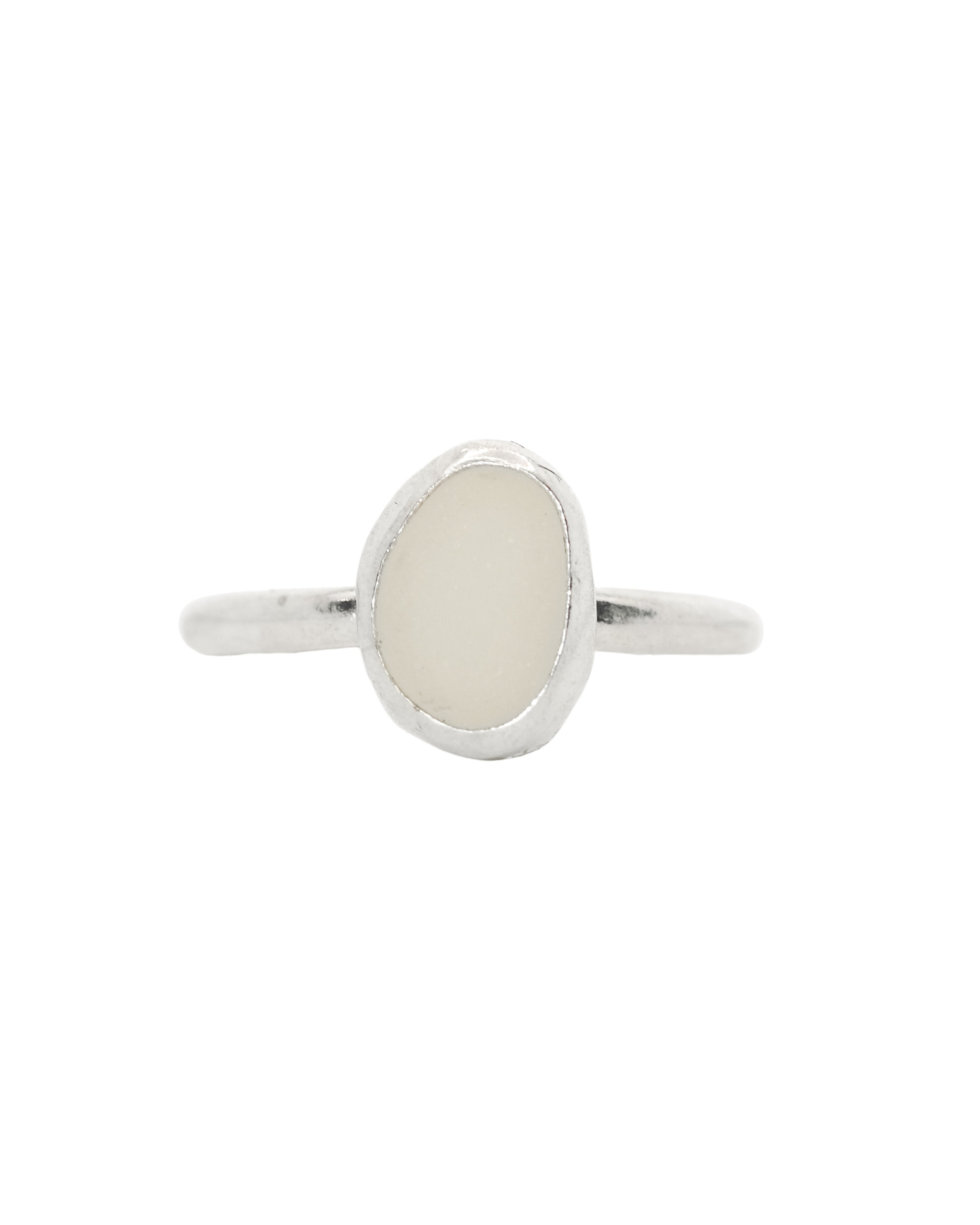 White Sea Glass Ring - Handmade from 925 Sterling Silver