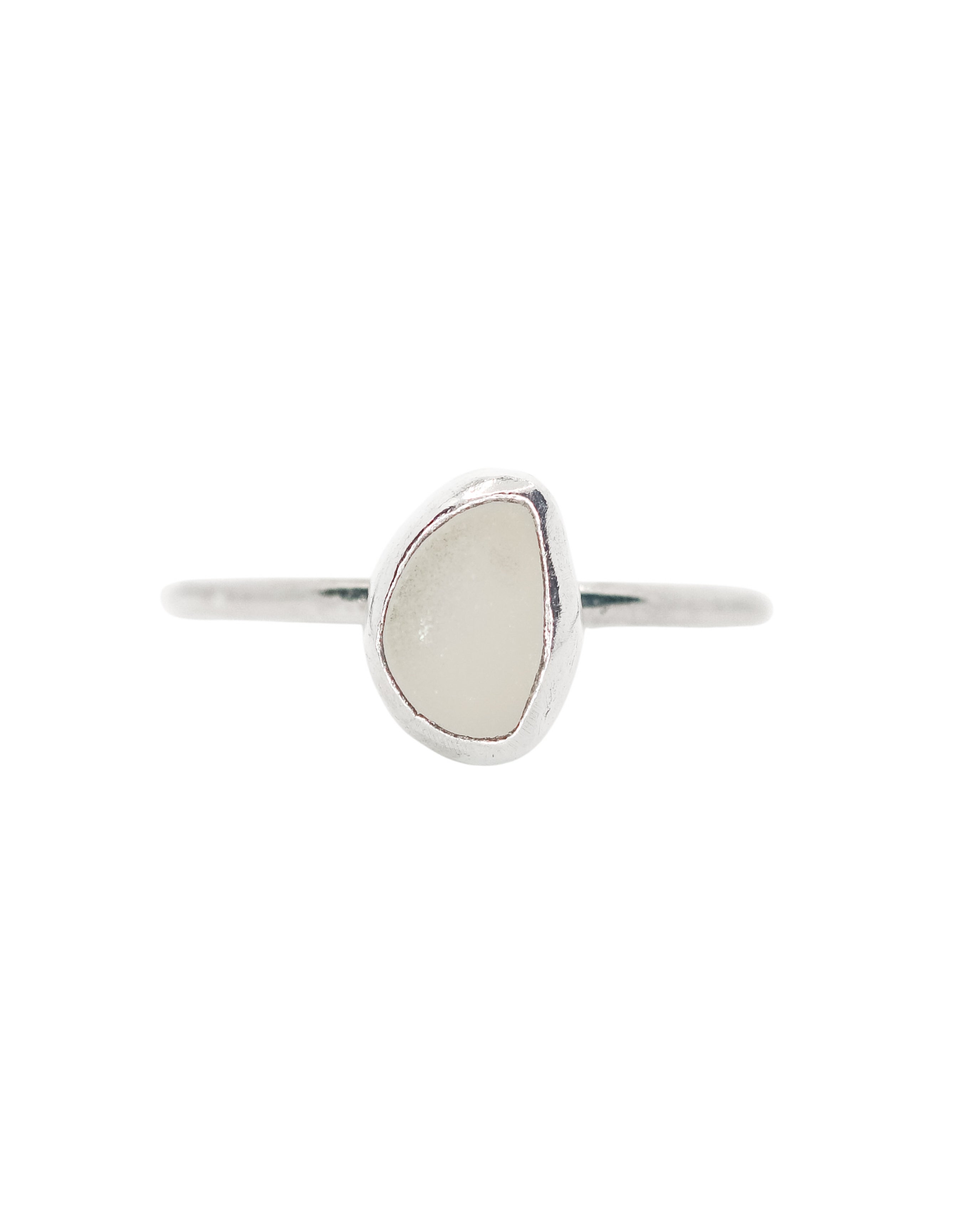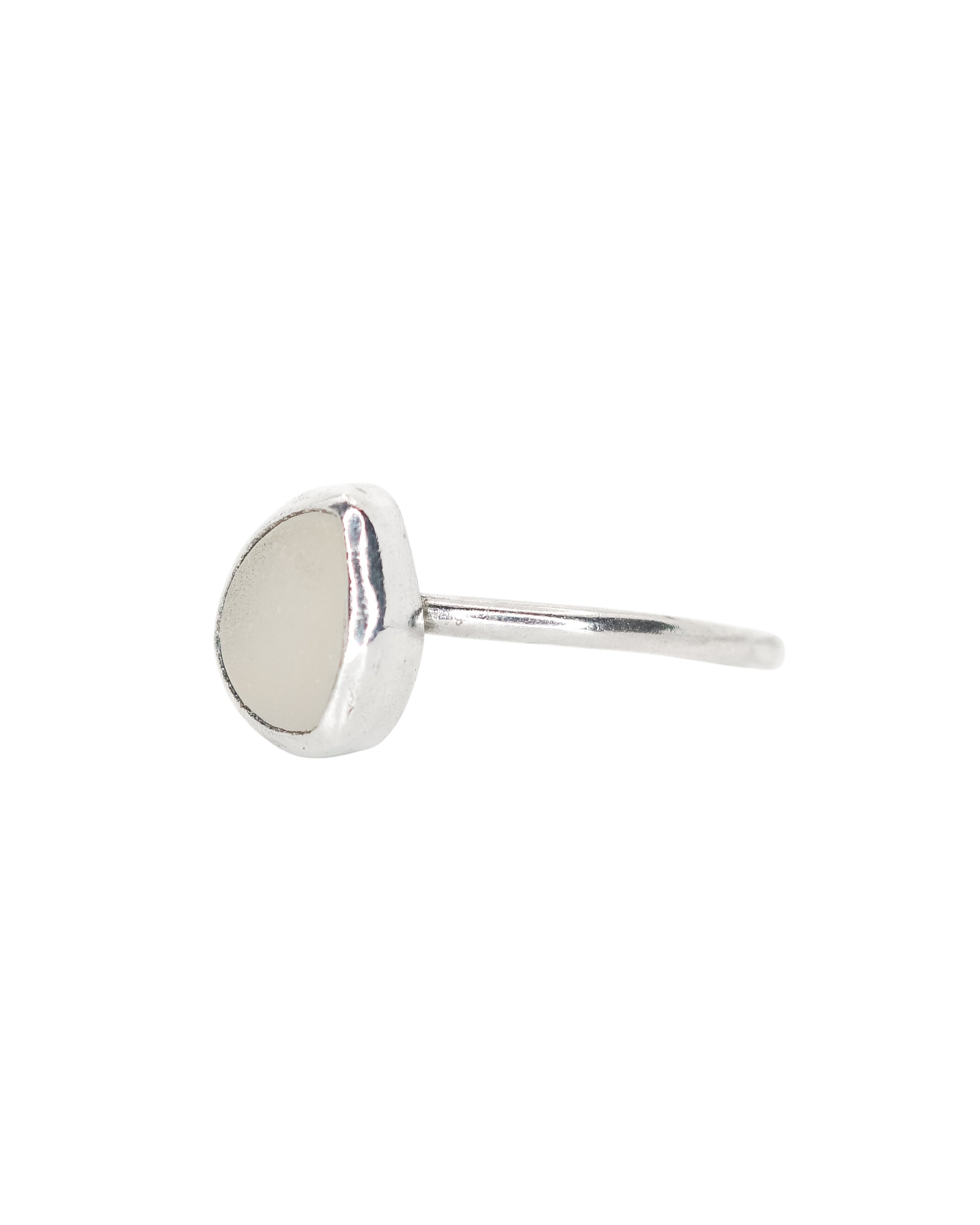 White Sea Glass Ring - Handmade from 925 Sterling Silver