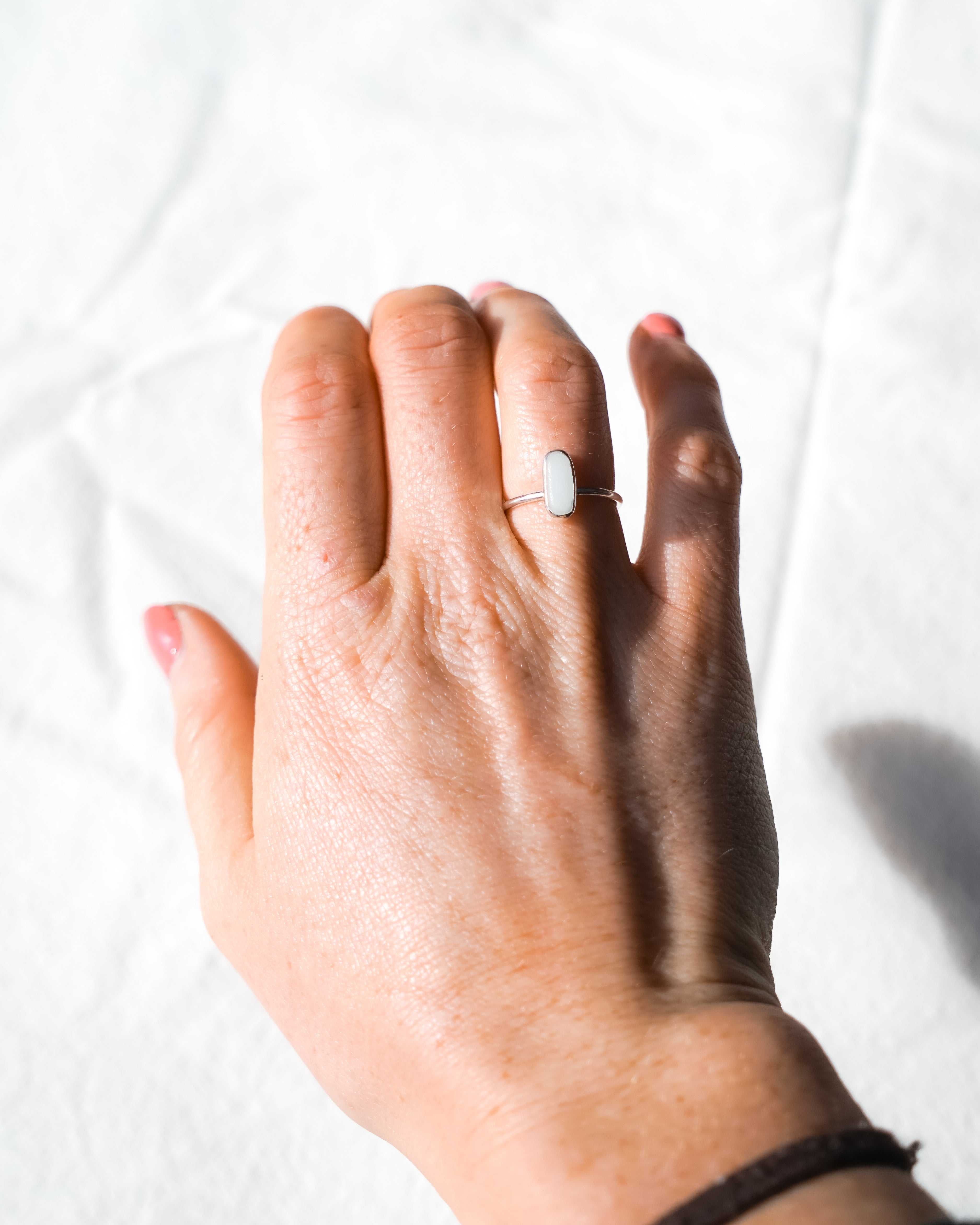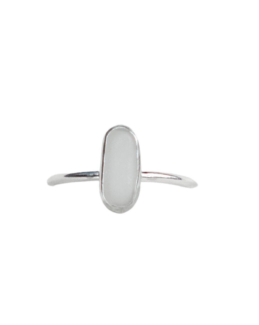 White Sea Glass Ring - Handmade from 925 Sterling Silver