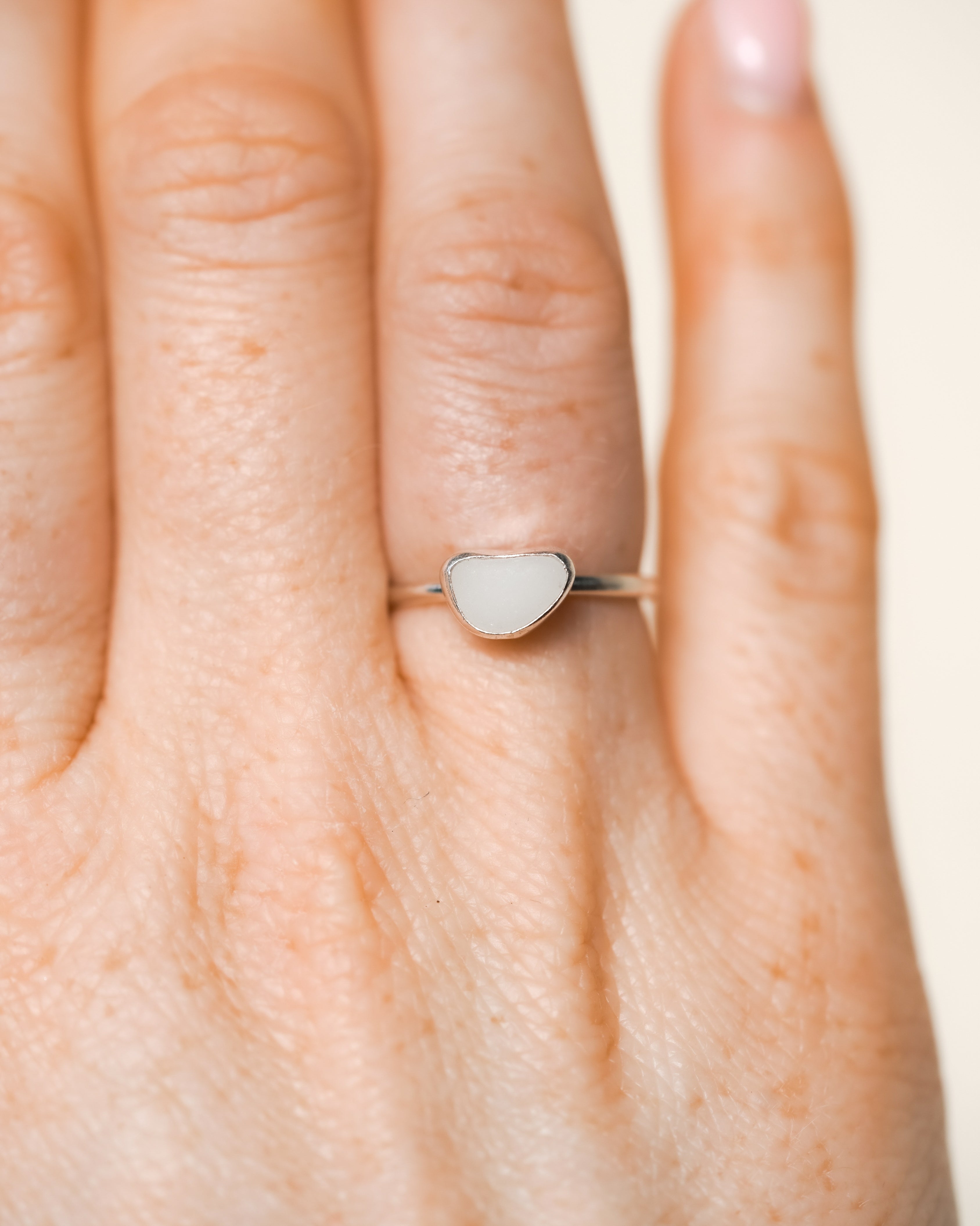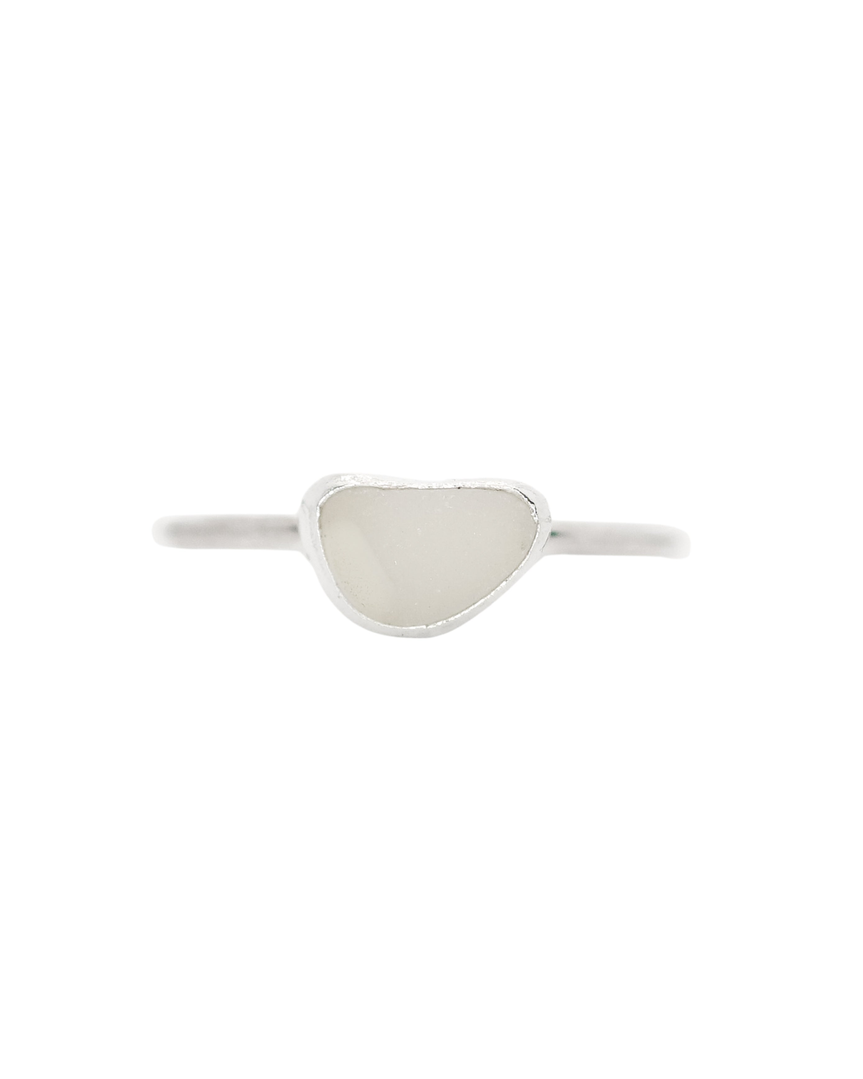 White Sea Glass Ring - Handmade from 925 Sterling Silver