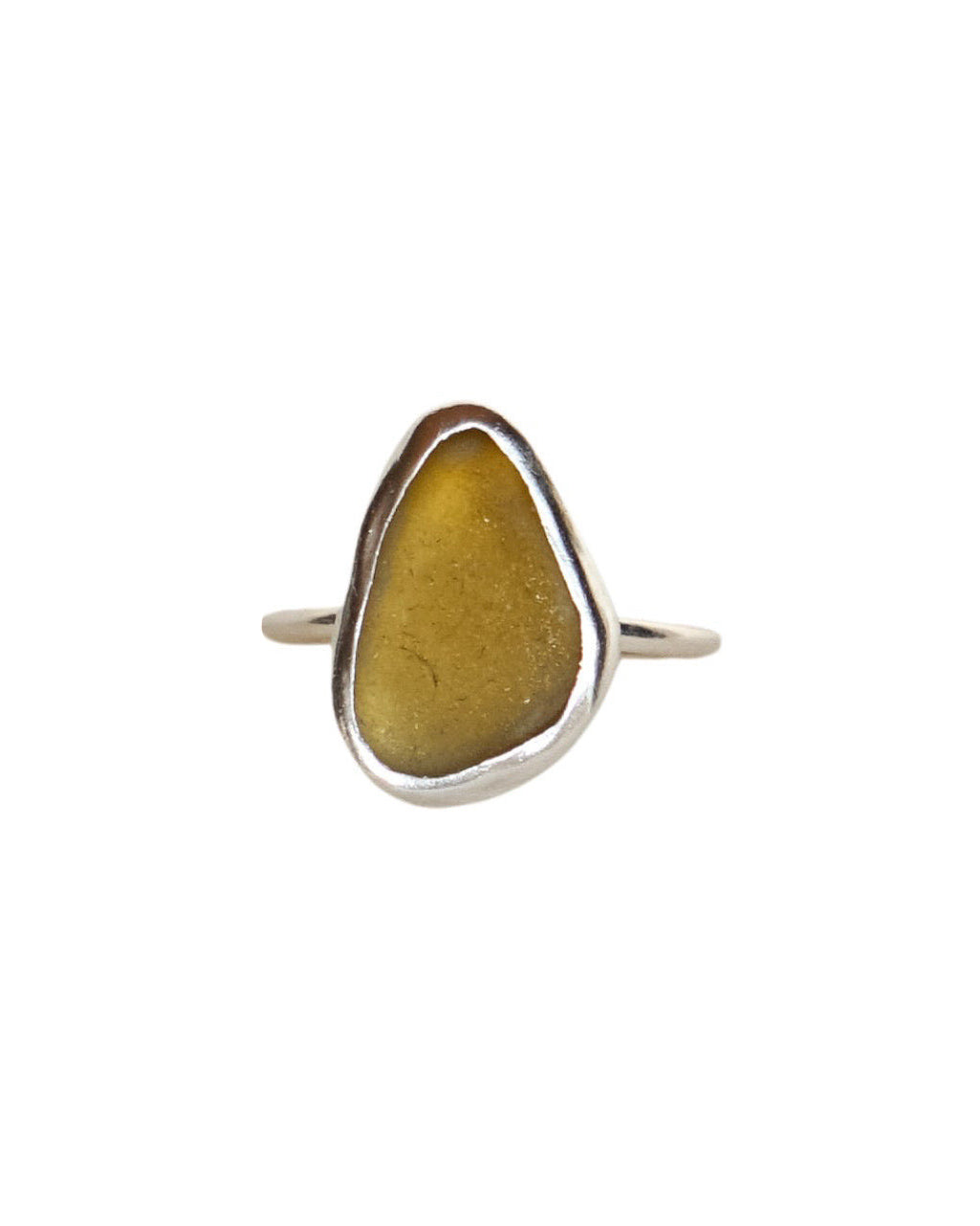 Yellow/Orange Sea Glass Ring - Handmade from 925 Sterling Silver